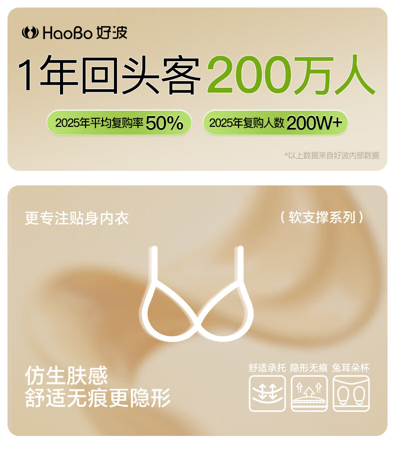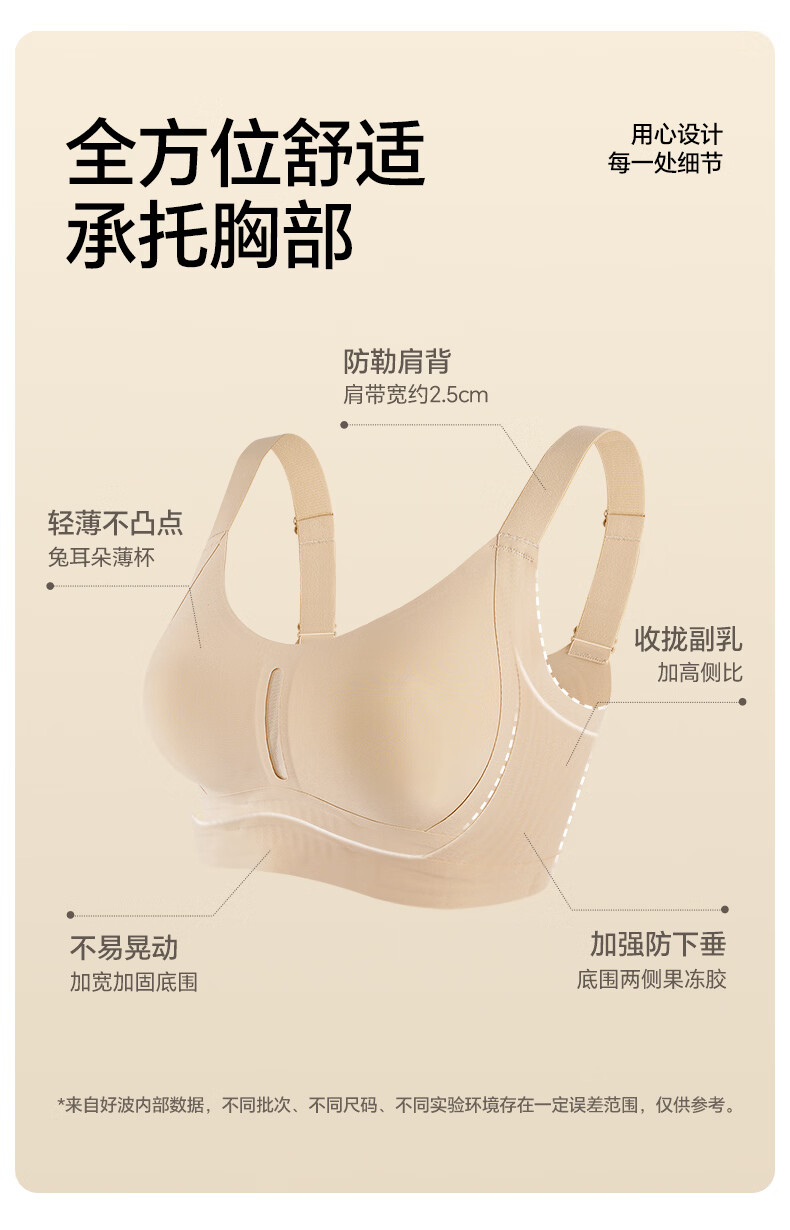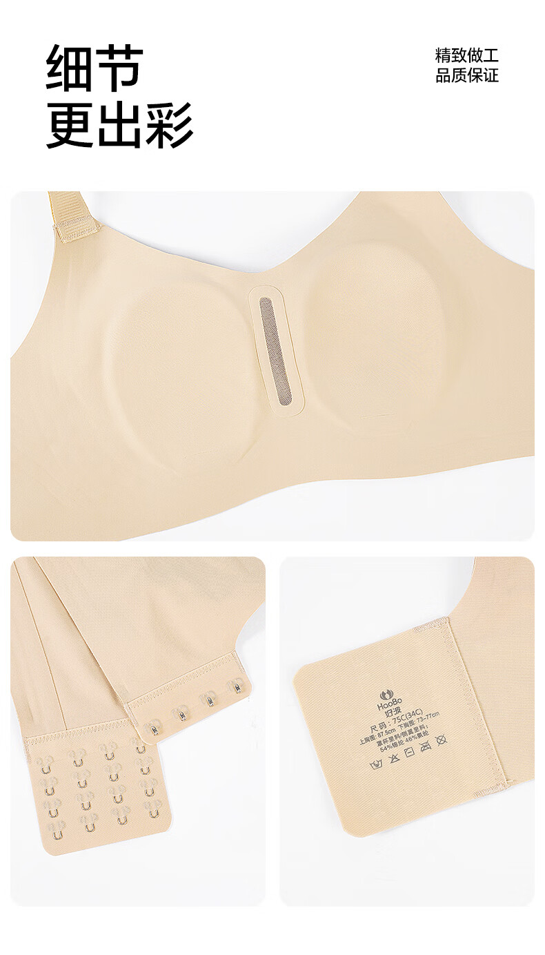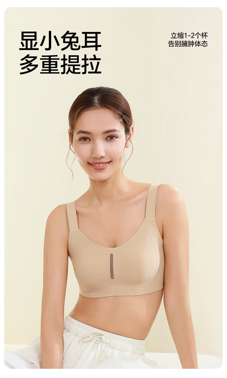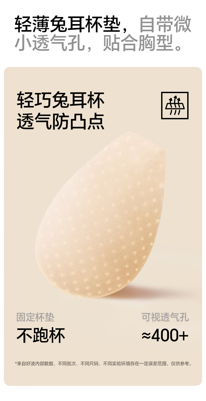 好波大码内衣春夏无钢圈光面薄款兔耳朵杯防凸点轻薄亲肤文胸HW2617 灰色 90C /40C(BCD通用杯)