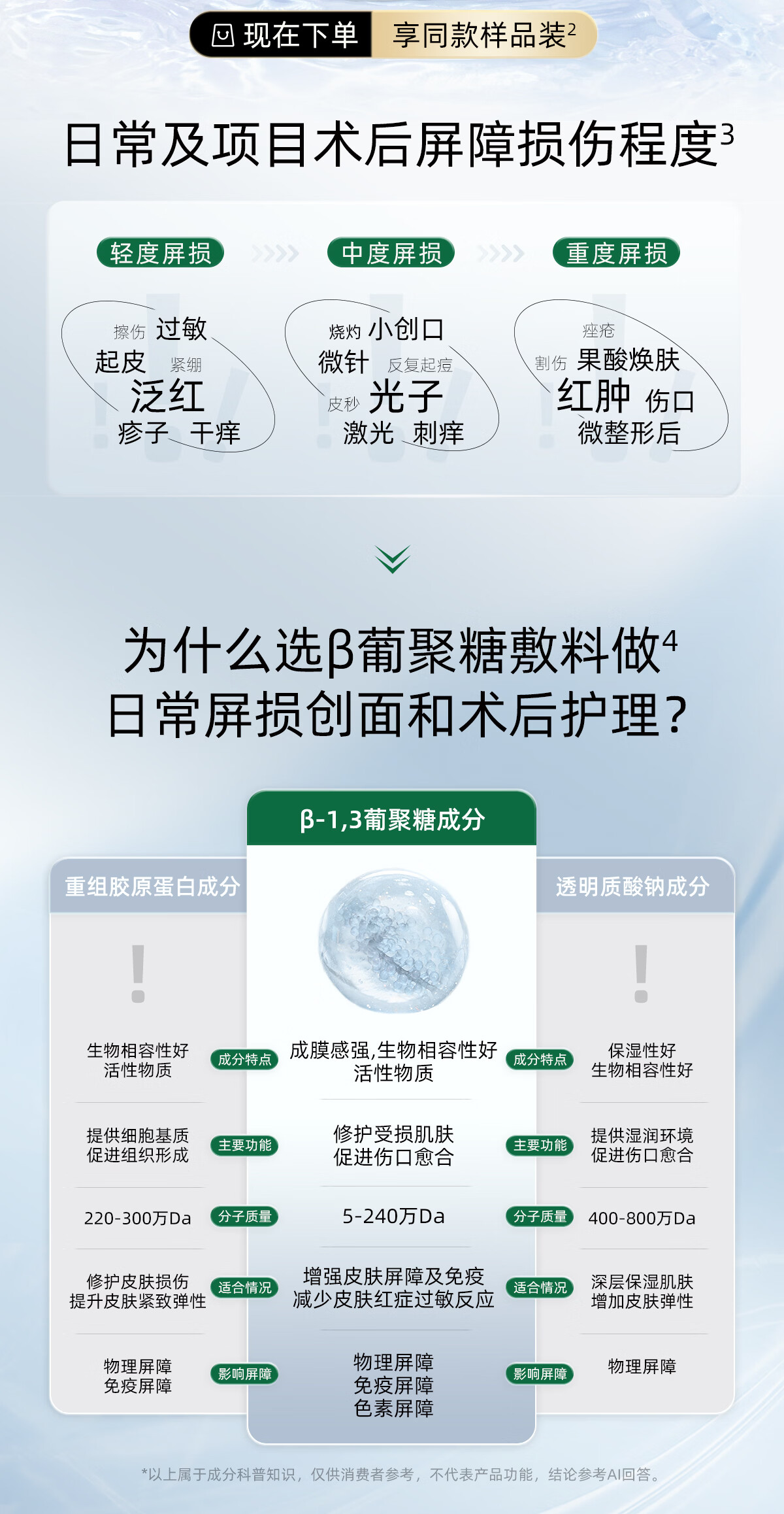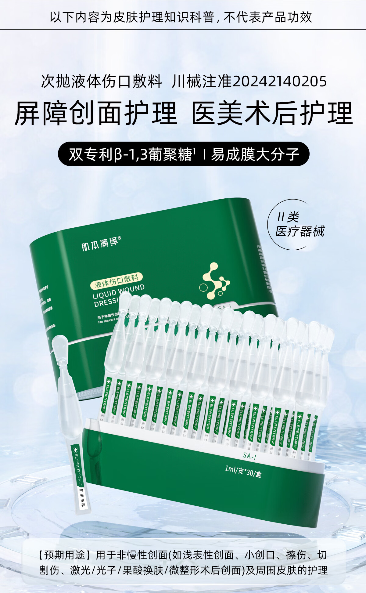 肌本演绎小绿支械字号医美术后皮肤屏障受损创面护理β葡聚糖液体伤口敷料