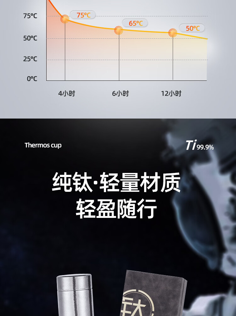 和顺钛和页钛纯钛保温杯男女款水杯年会节日礼品 纯钛保温杯-500ML【经典礼盒】