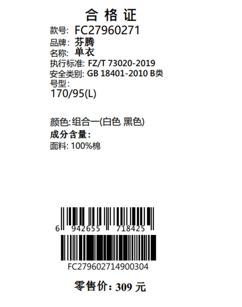 芬腾100%纯棉短袖男士T恤2026夏季新款圆领休闲时尚亲肤打底上衣 组合一【白色+黑色】 L