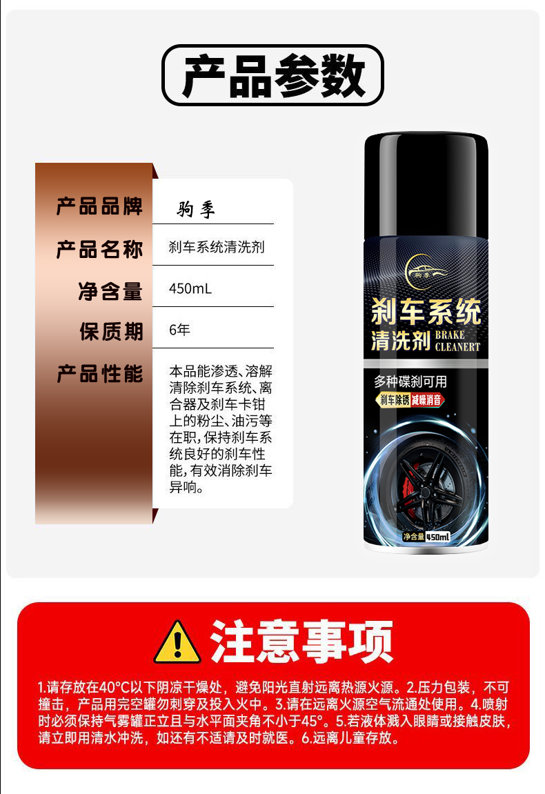 驹季汽车刹车系统清洗剂碟刹系统轮毂清洗刹车盘异响消除剂卡钳除油污 驹季-刹车卡钳清洗剂 450ml 1瓶