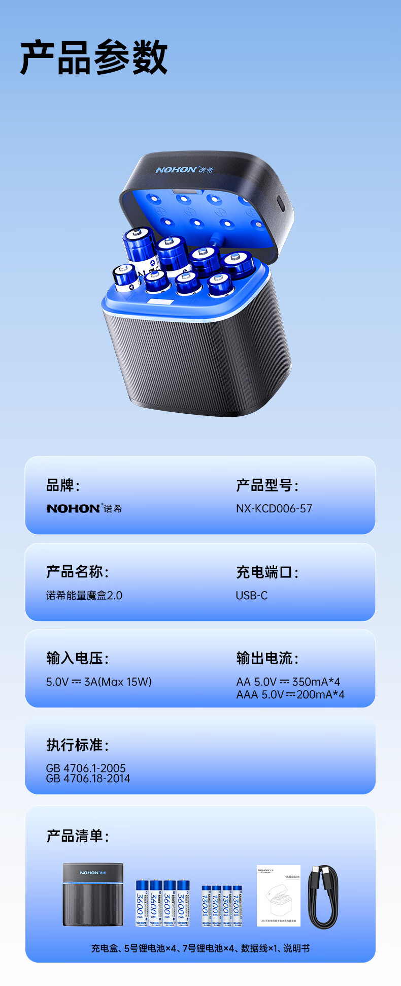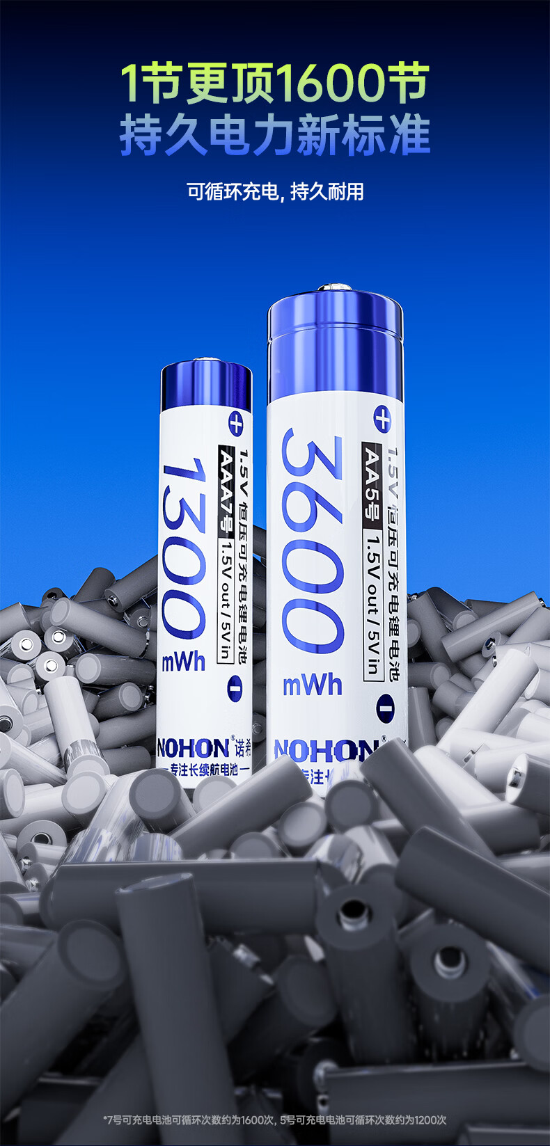 诺希5号7号大容量快充充电电池套装1.5V恒压适用于遥控器玩具车智能门锁鼠标游戏(支持15天免费试用) 4节7号锂电池(不含充电仓)