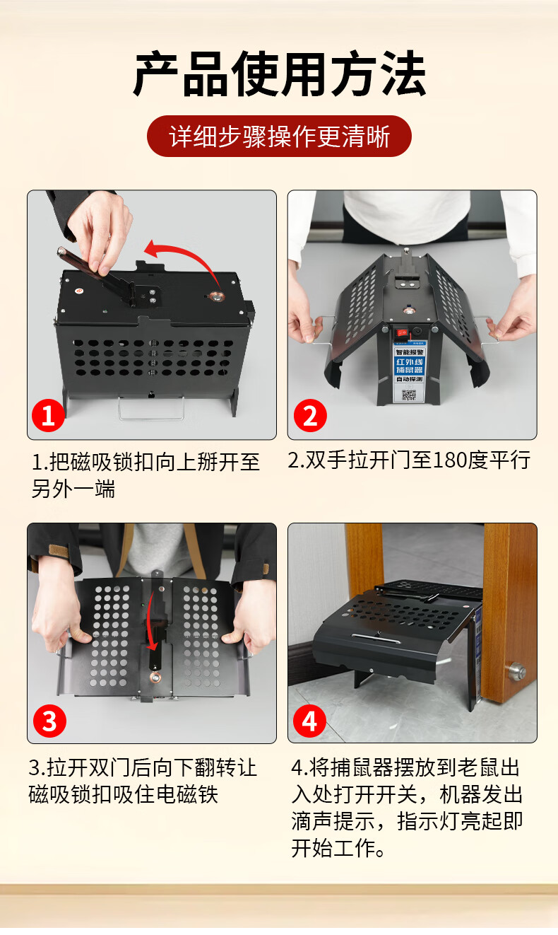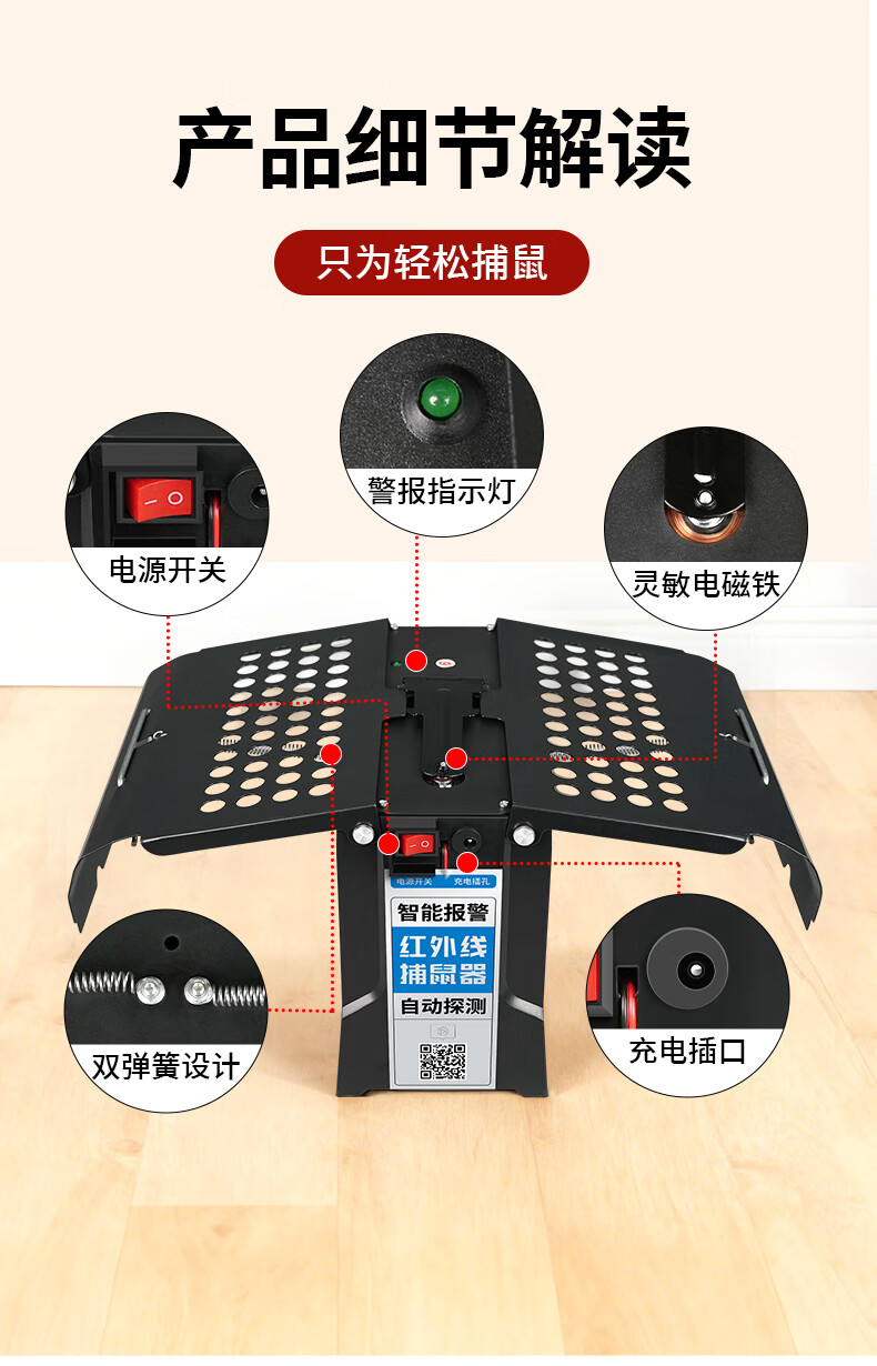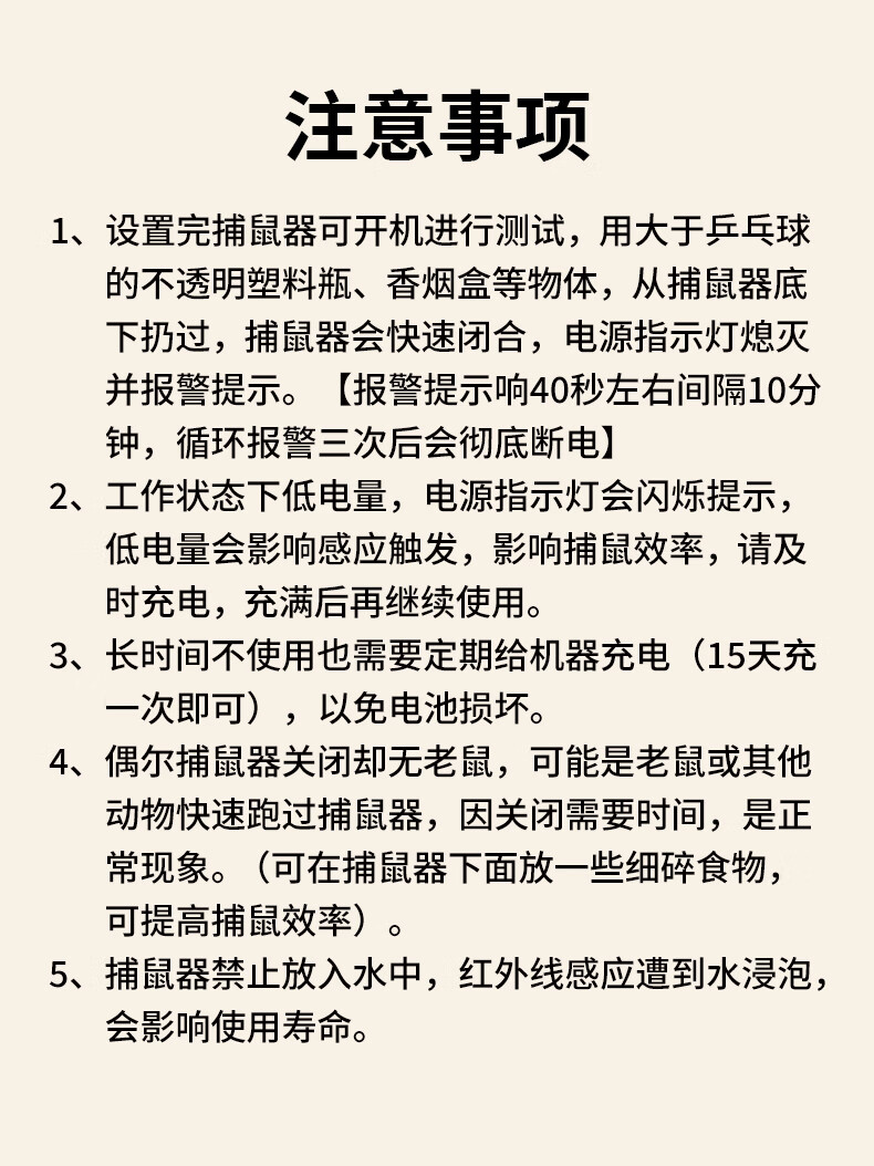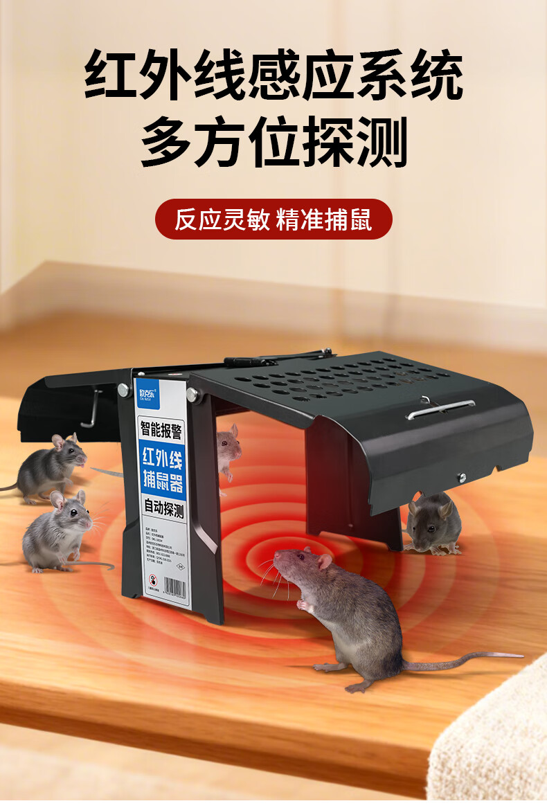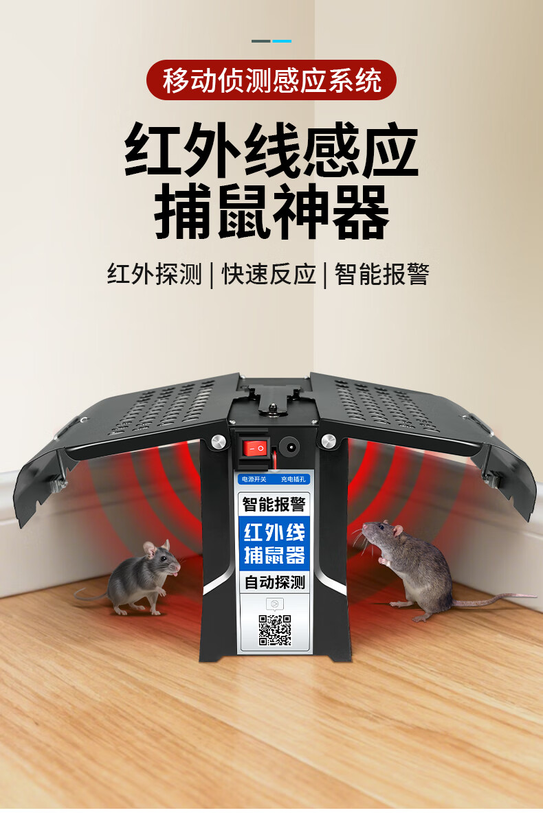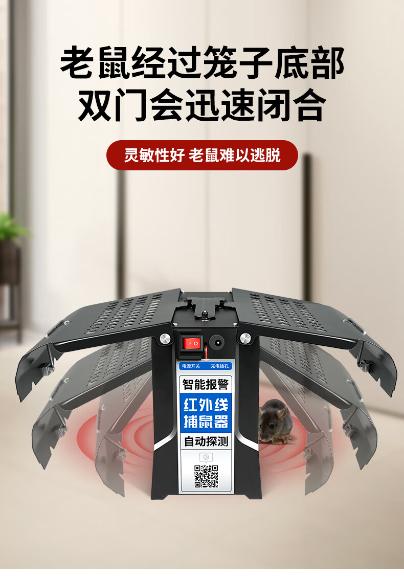 欧克乐(Ou Ke le)红外线捕鼠器智能感应家用连续自动捕鼠灭神器老鼠夹老鼠笼捕捉器 待机约50小时1台【经过快捕 抓到报警】