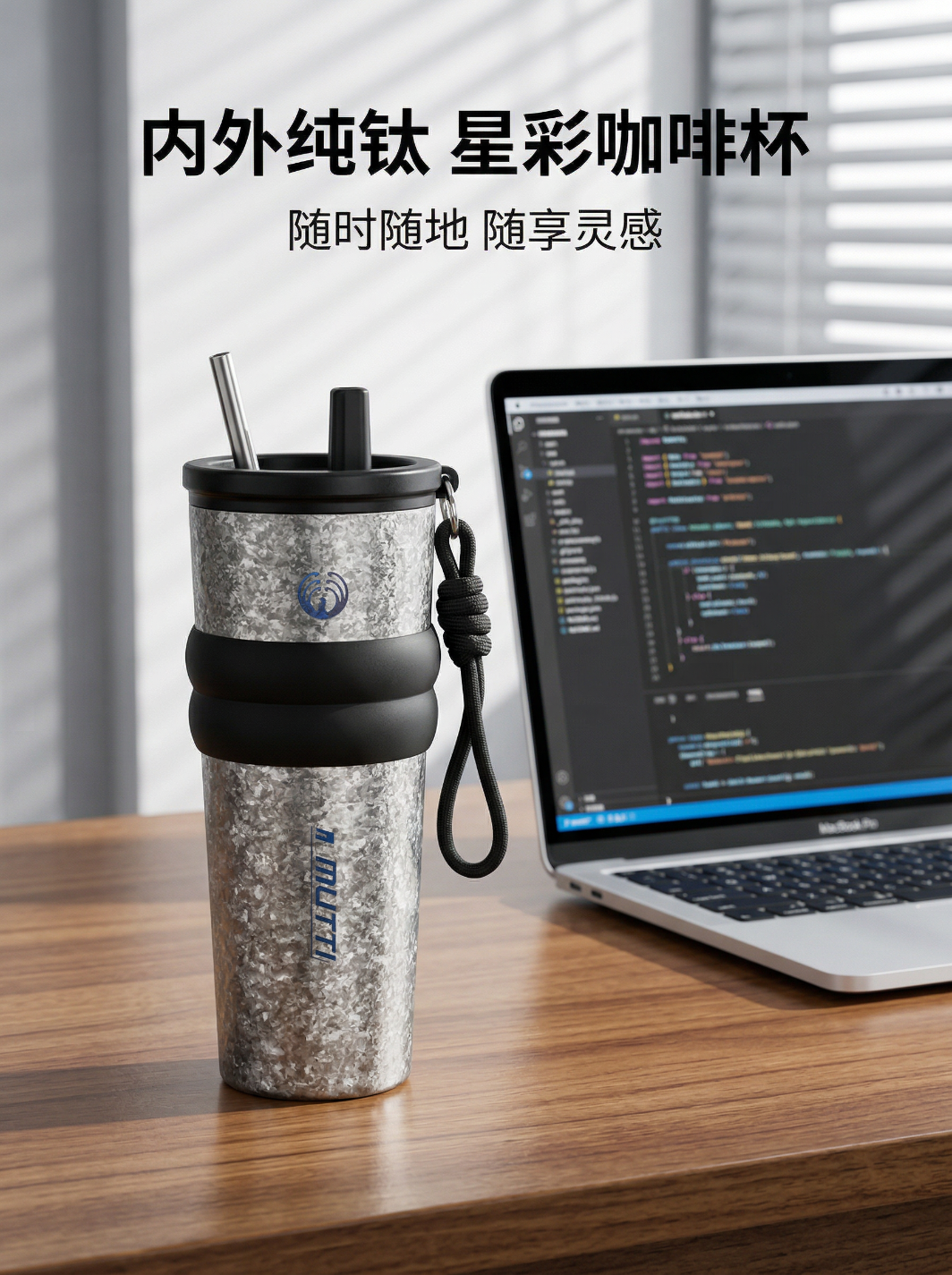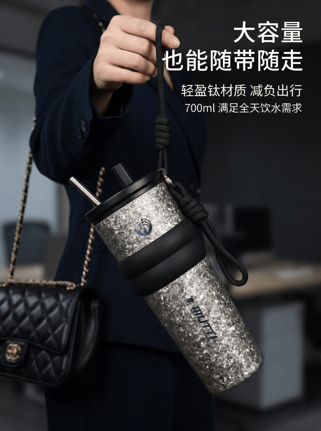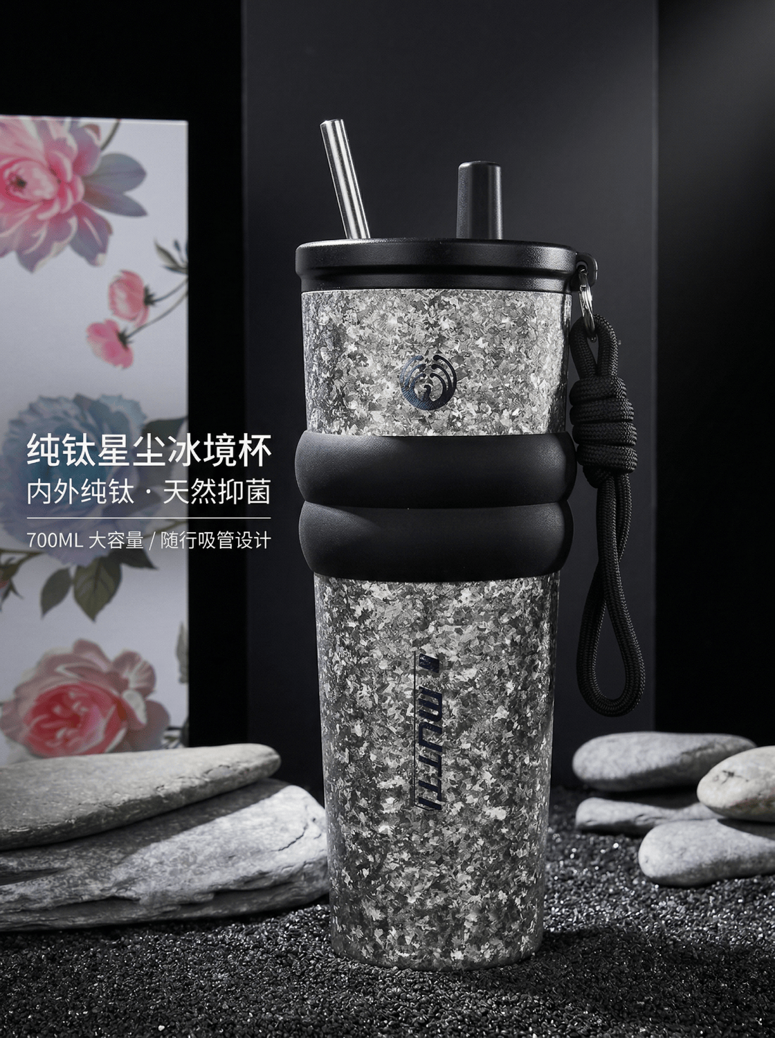 MUTTI纯钛保温杯咖啡杯冰霸杯吸管杯大容量男女生生日礼物女高颜值便携 晶金 710ml