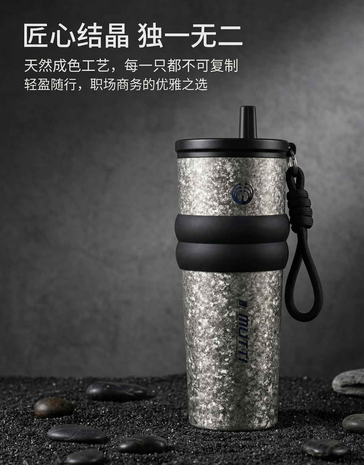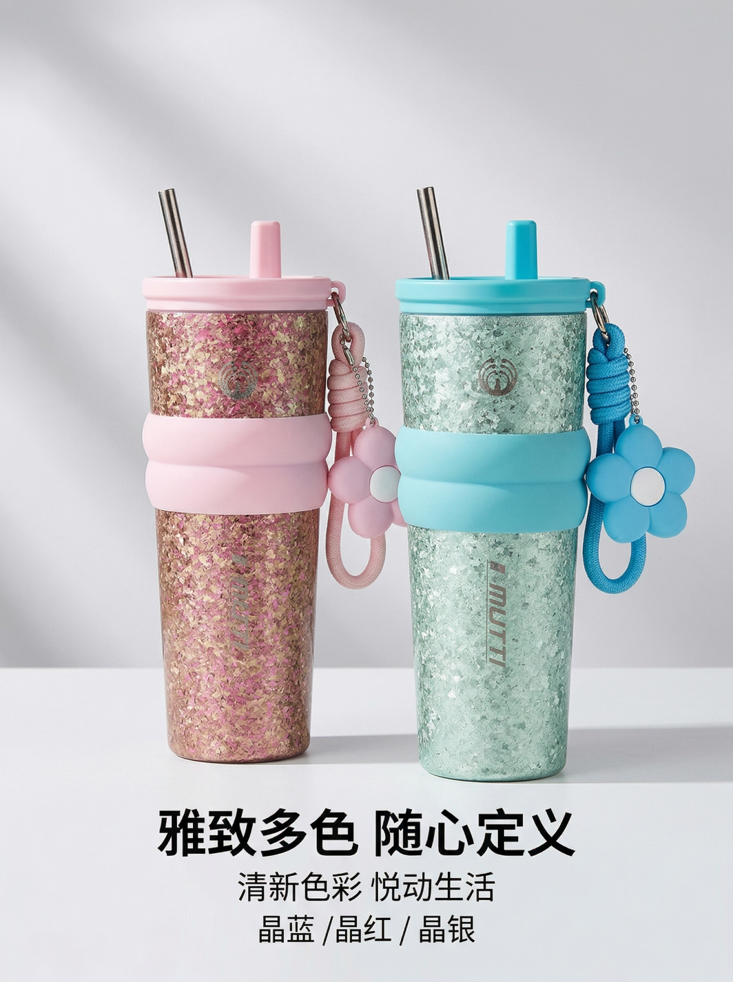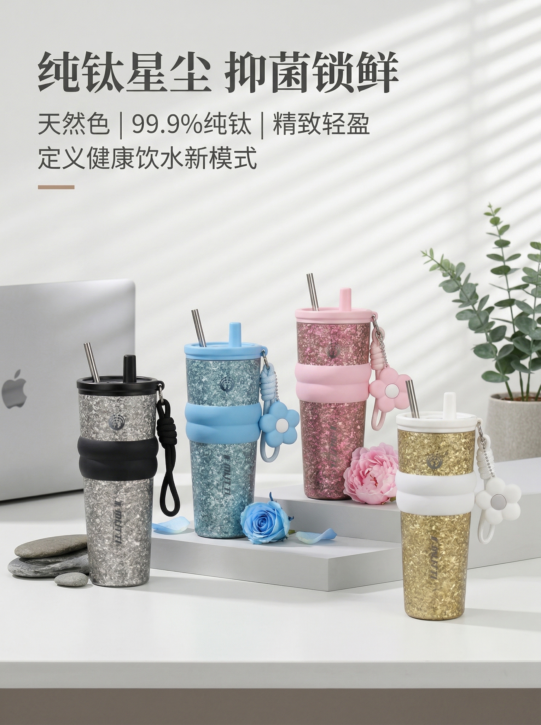 MUTTI纯钛保温杯咖啡杯冰霸杯吸管杯大容量男女生生日礼物女高颜值便携 晶金 710ml