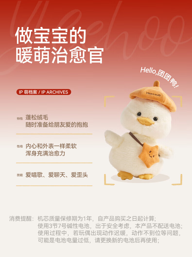 英氏(YEEHOO)儿童毛绒玩具复读鸭子玩偶婴儿见面礼安抚互动智能宝宝生日礼物