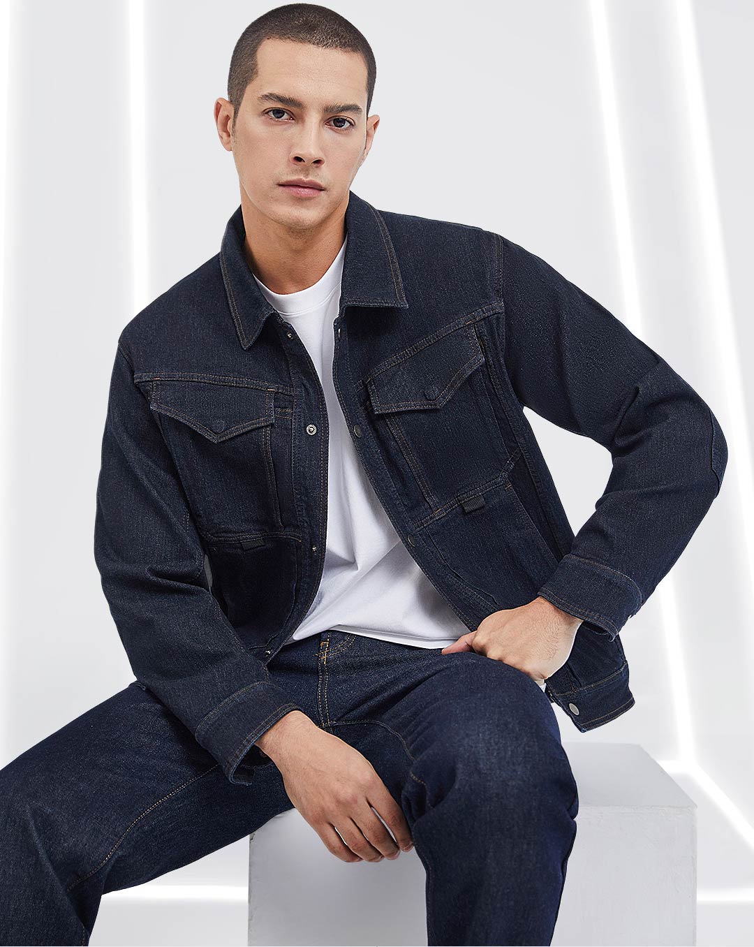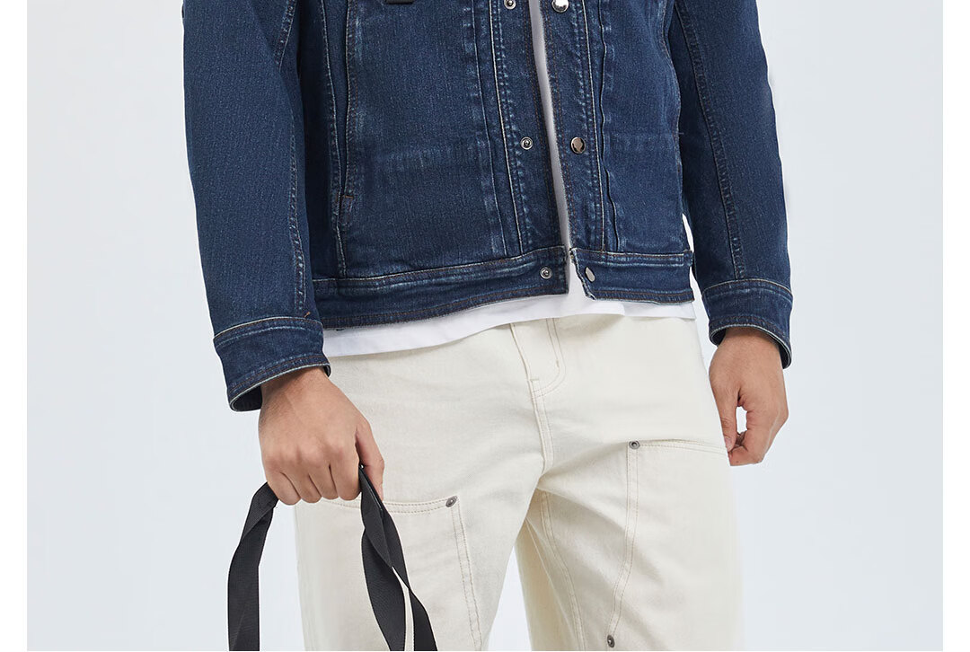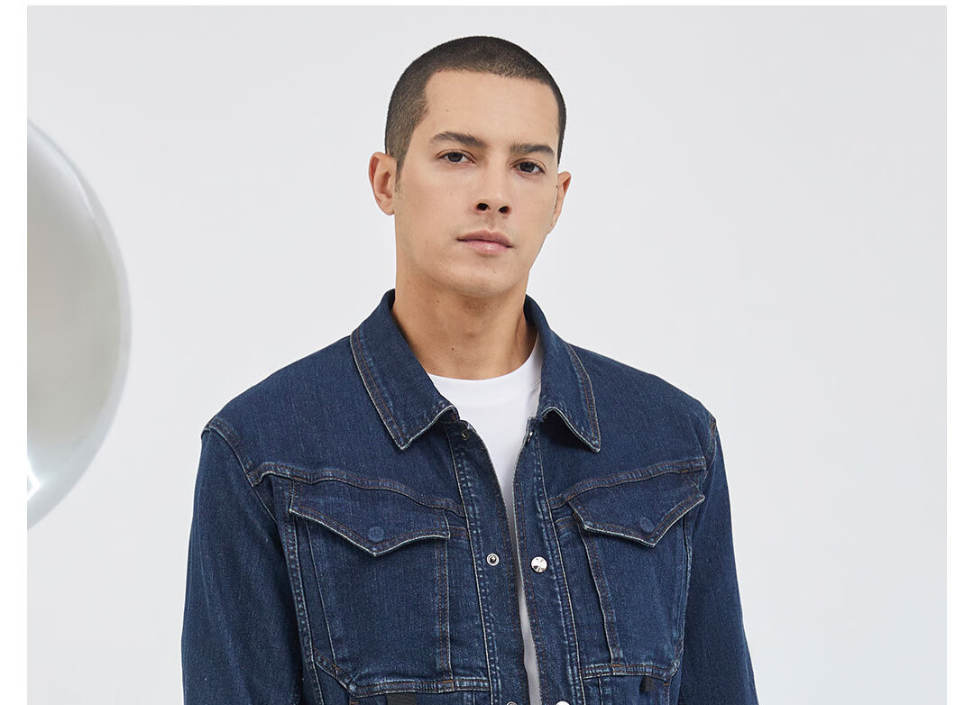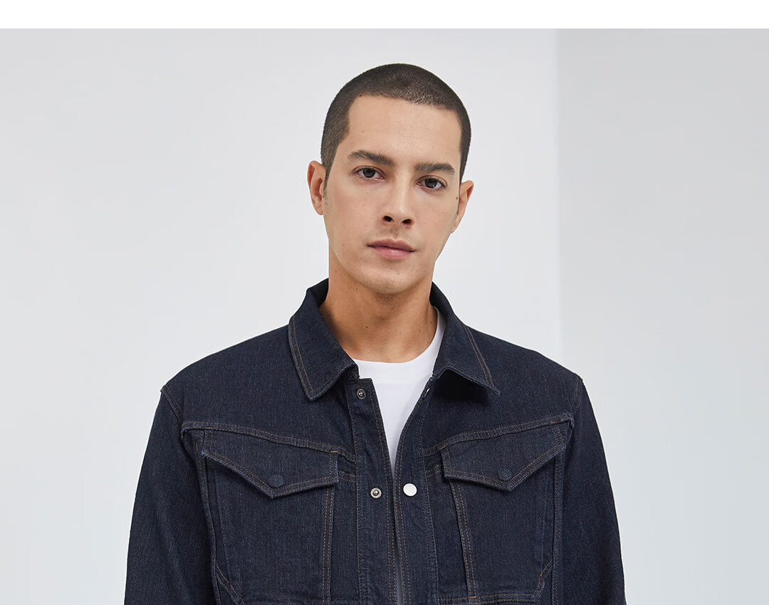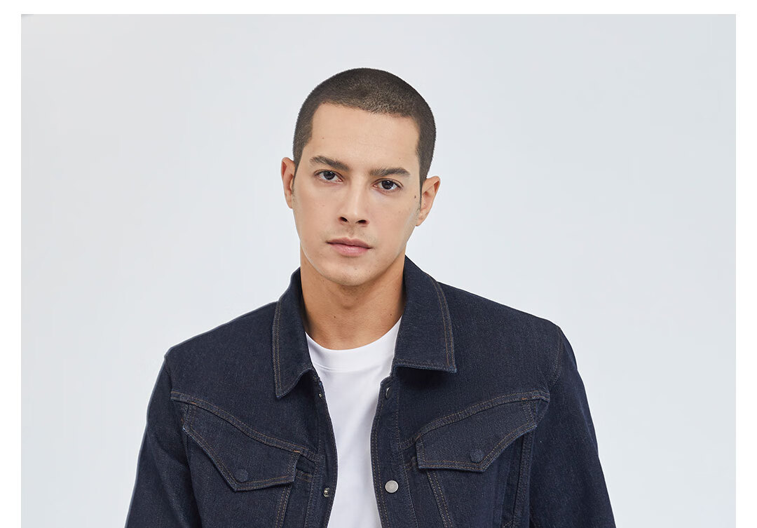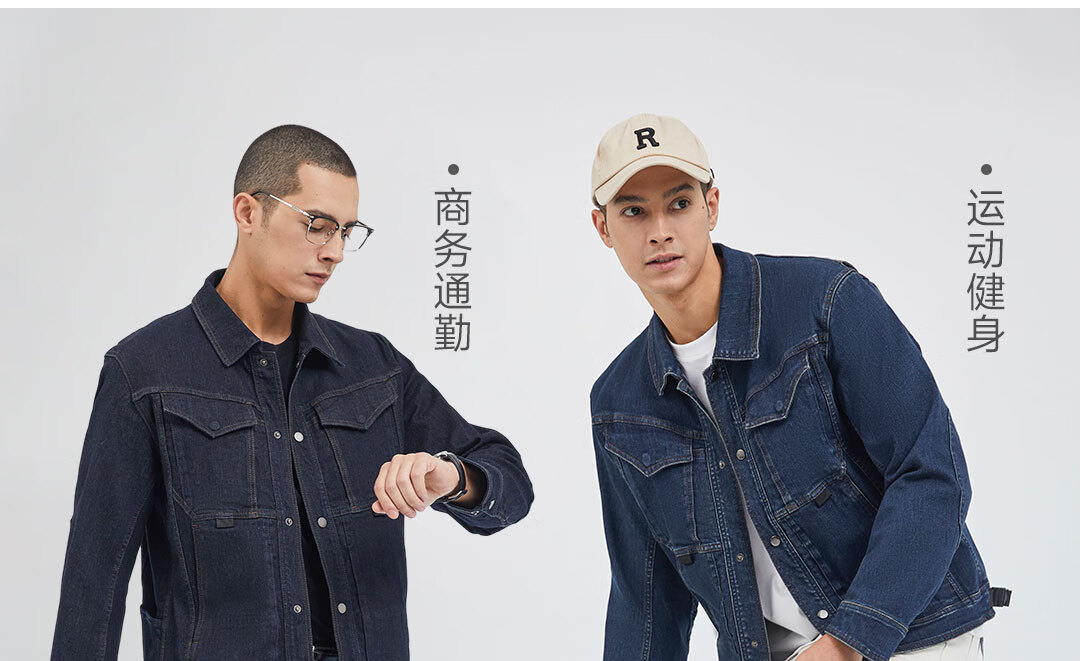 90分男装时尚潮流百搭翻领牛仔服休闲夹克外套 水洗蓝 L(175/96A适合65-70kg偏大)