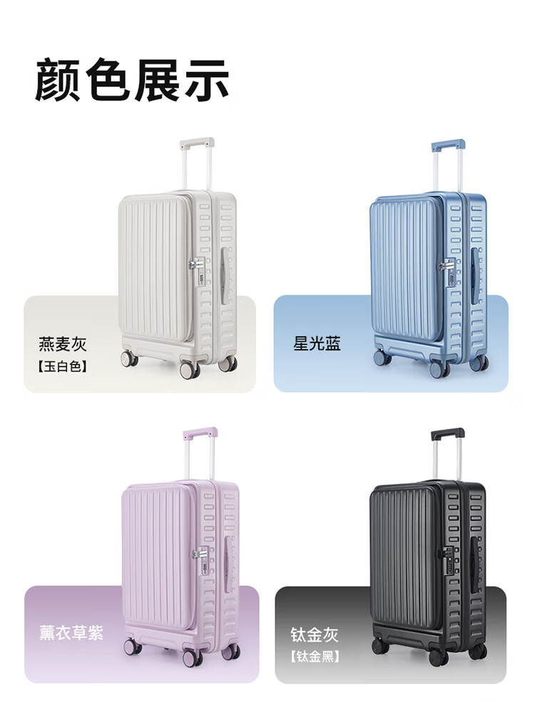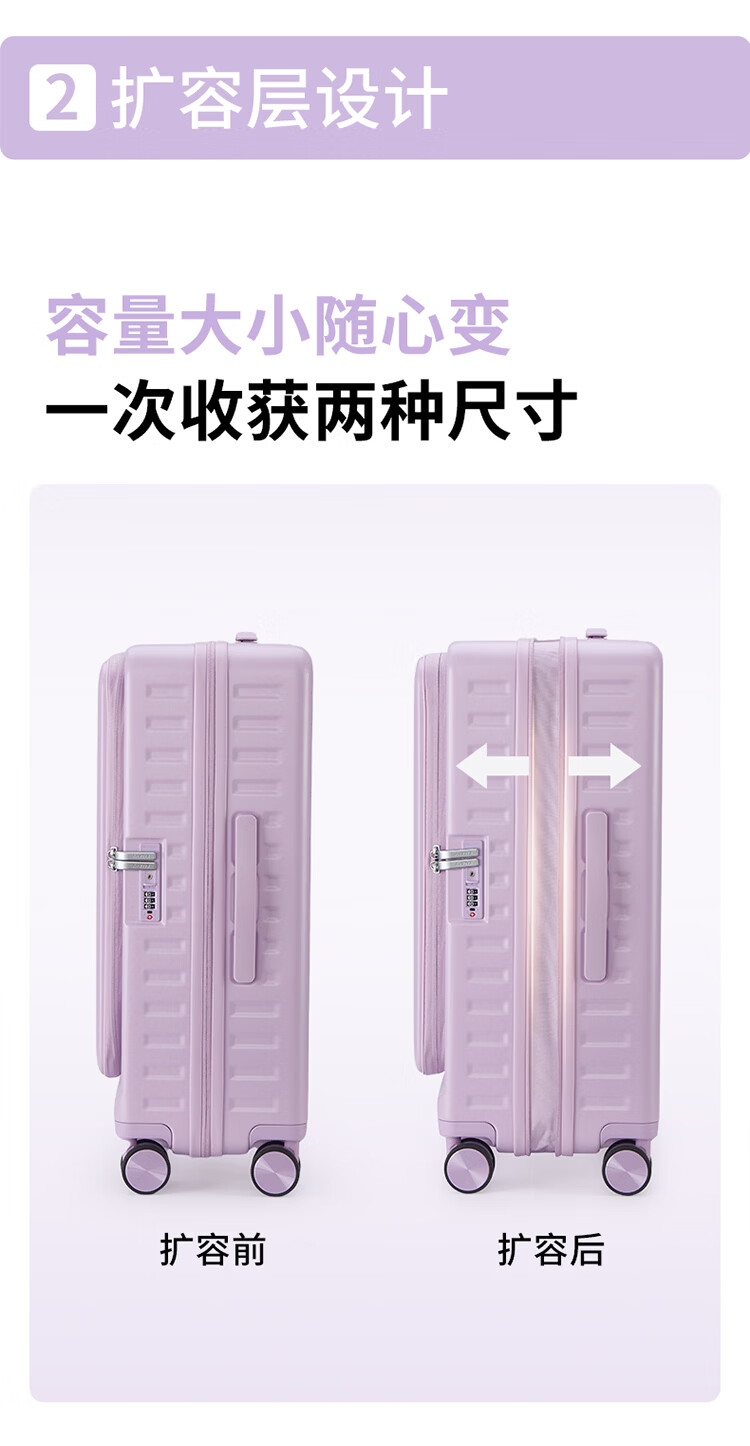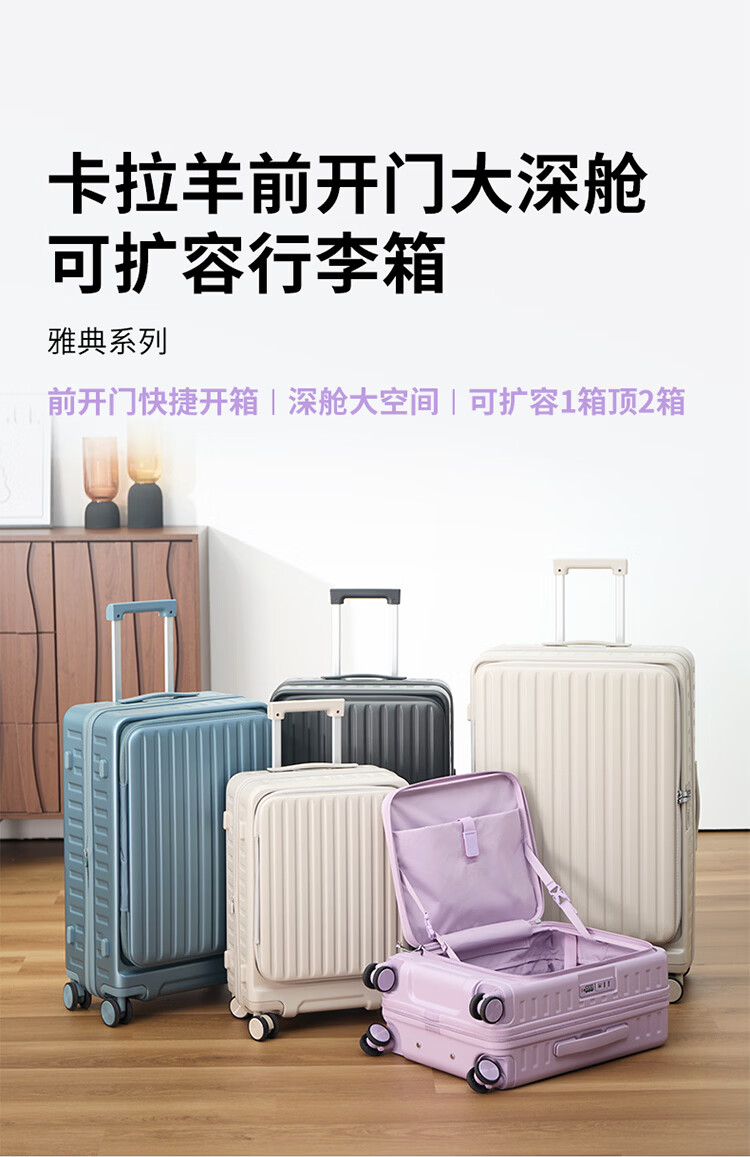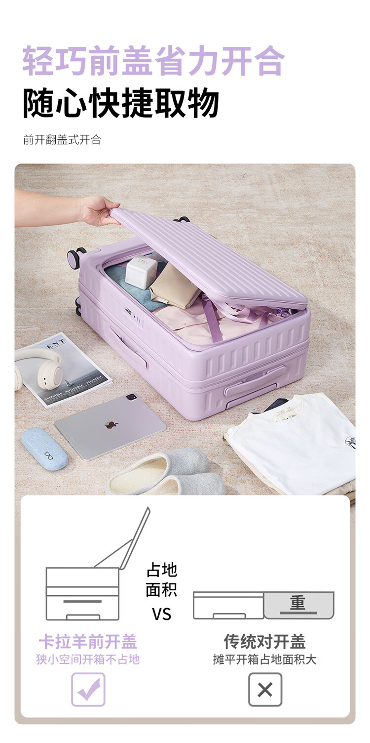 卡拉羊前开门大深舱可扩容行李箱纯PC防刮抗摔静音顺滑拉杆箱CX8130 钛金灰【一体式大深舱,大容量超能装】 20英寸 【单人短途,三边之和115cm,可登机】