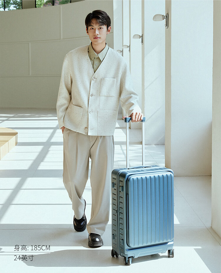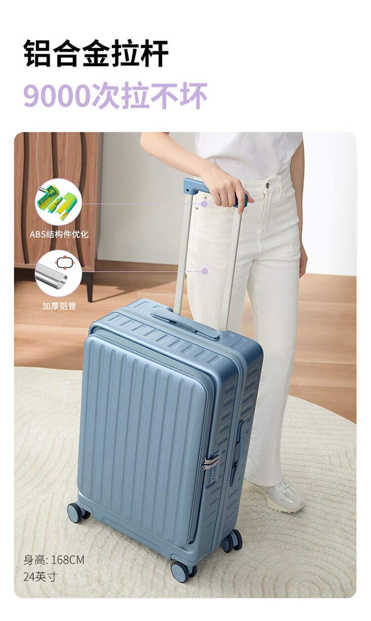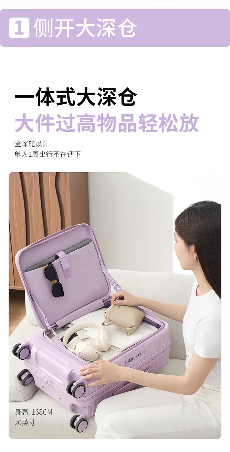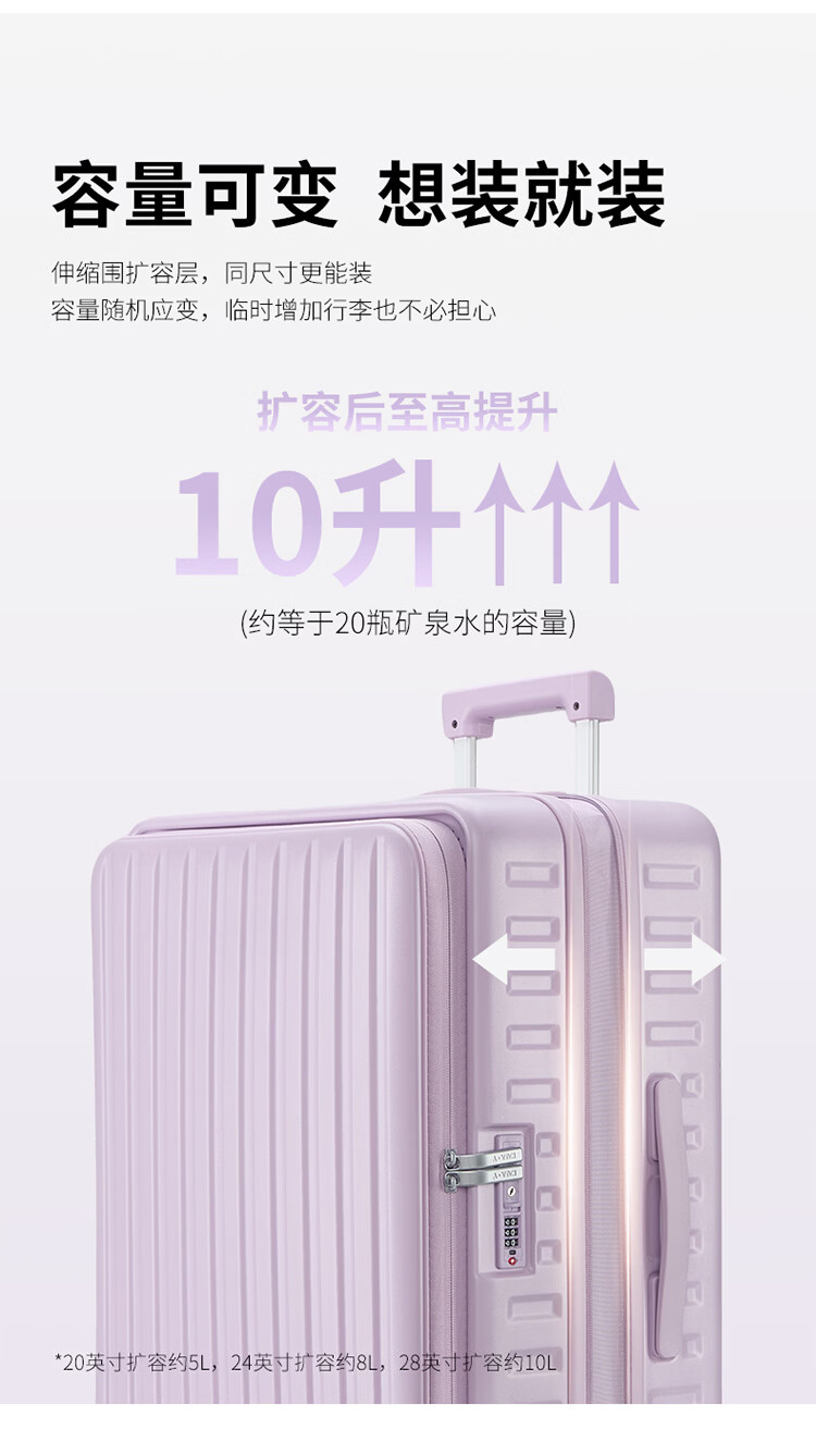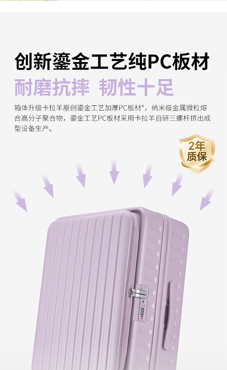 卡拉羊前开门大深舱可扩容行李箱纯PC防刮抗摔静音顺滑拉杆箱CX8130 钛金灰【一体式大深舱,大容量超能装】 20英寸 【单人短途,三边之和115cm,可登机】