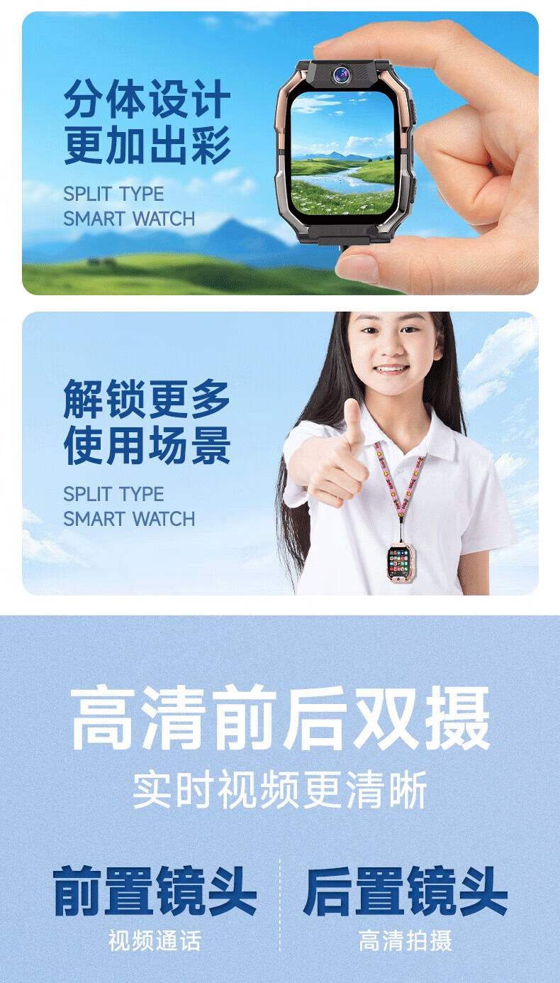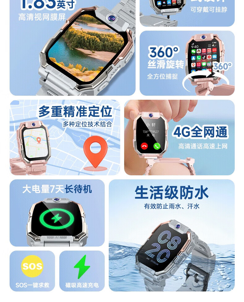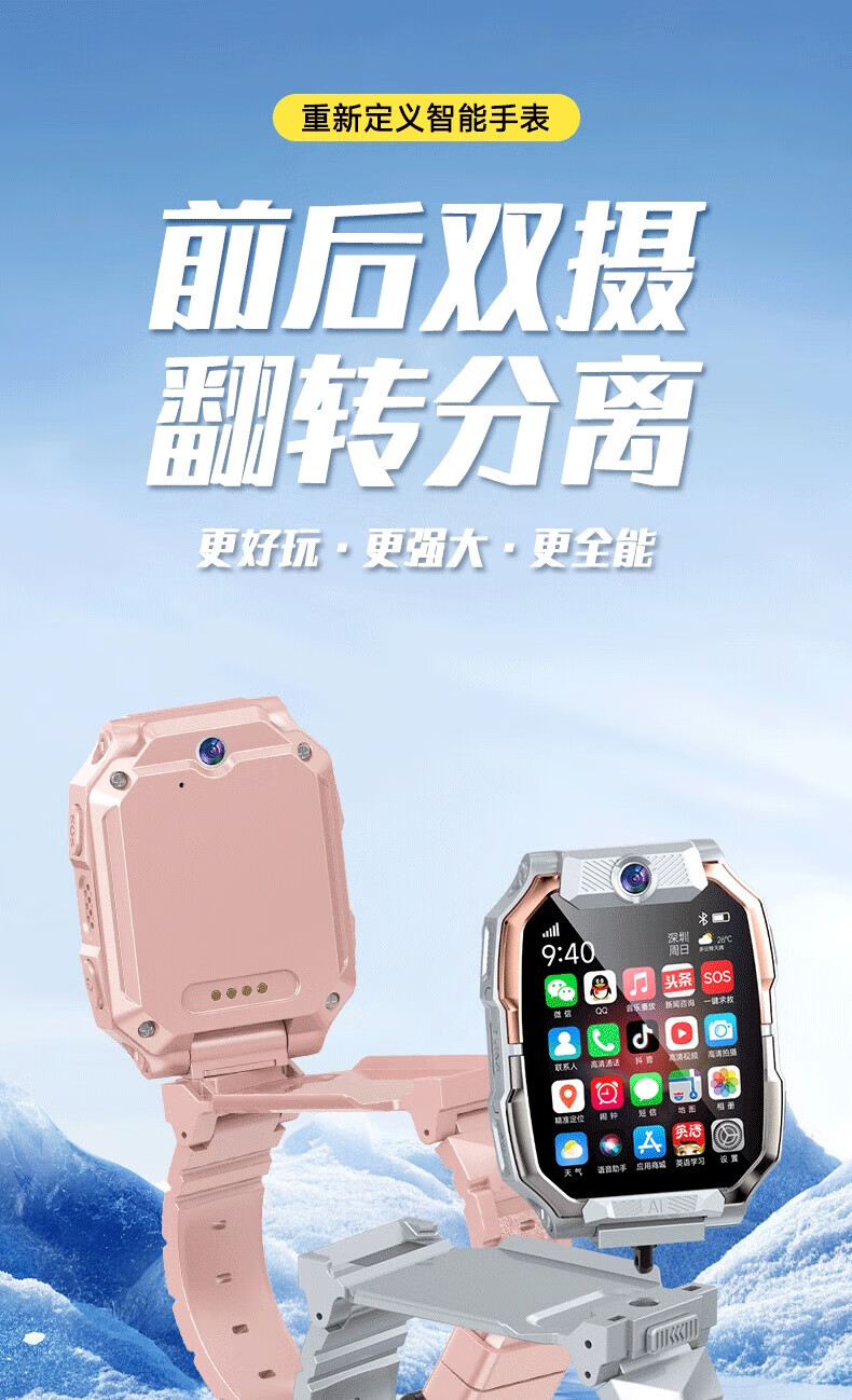 一米趣录【前后双摄】儿童电话手表3-6-12岁男女孩学生无游戏可接打插卡电话全网通4G/5G定位智能手表 巅峰款黑【8G】APP下载+GPS定位+全功能