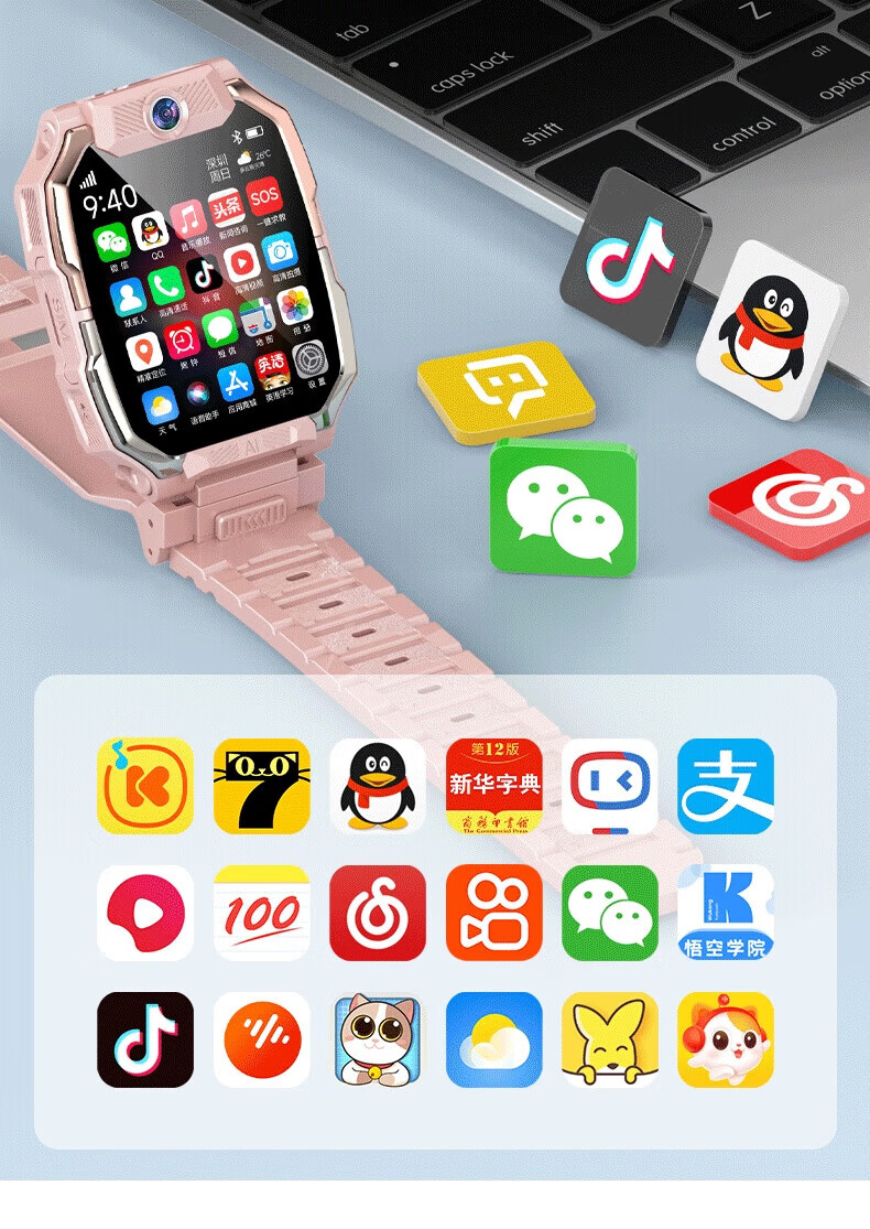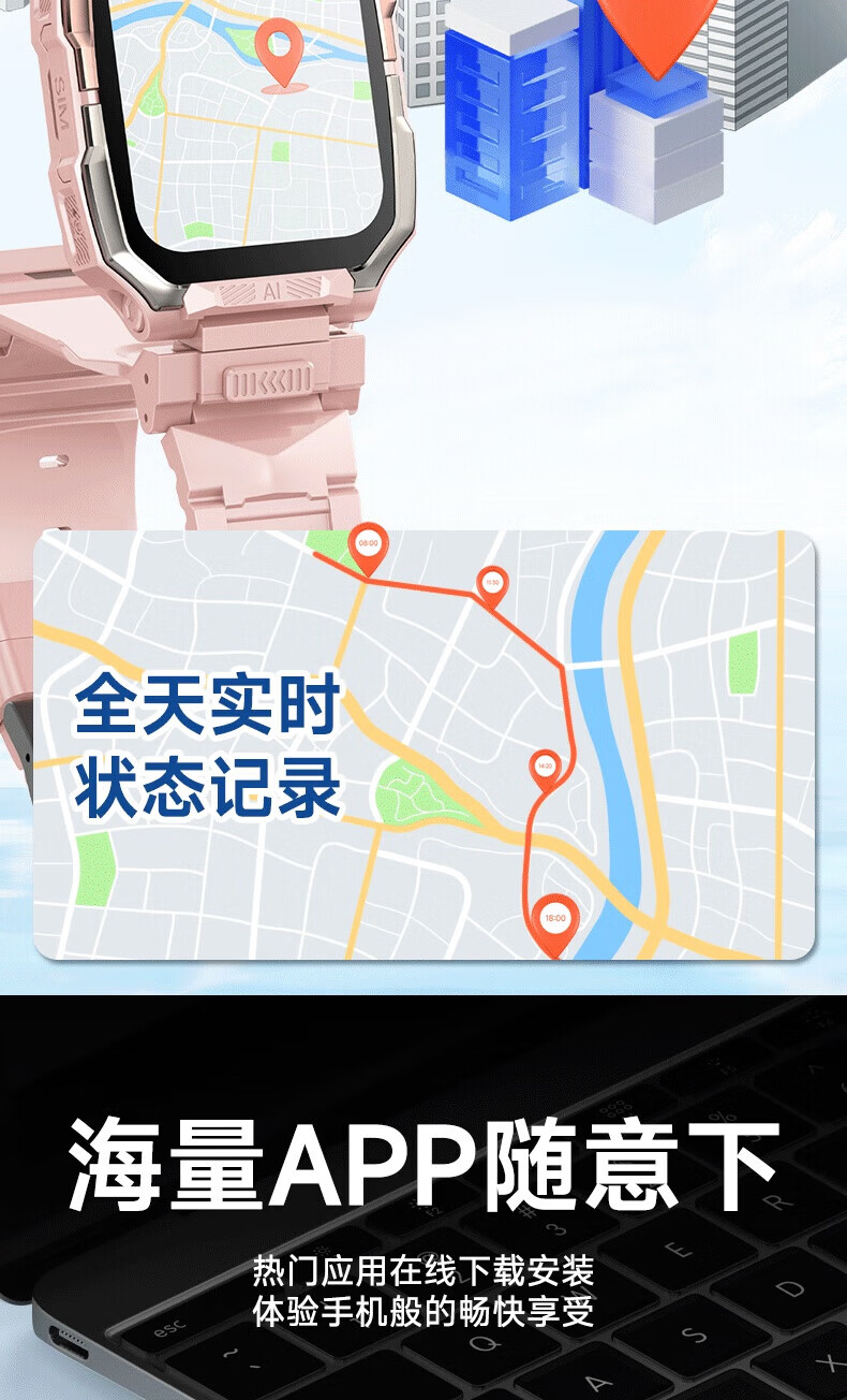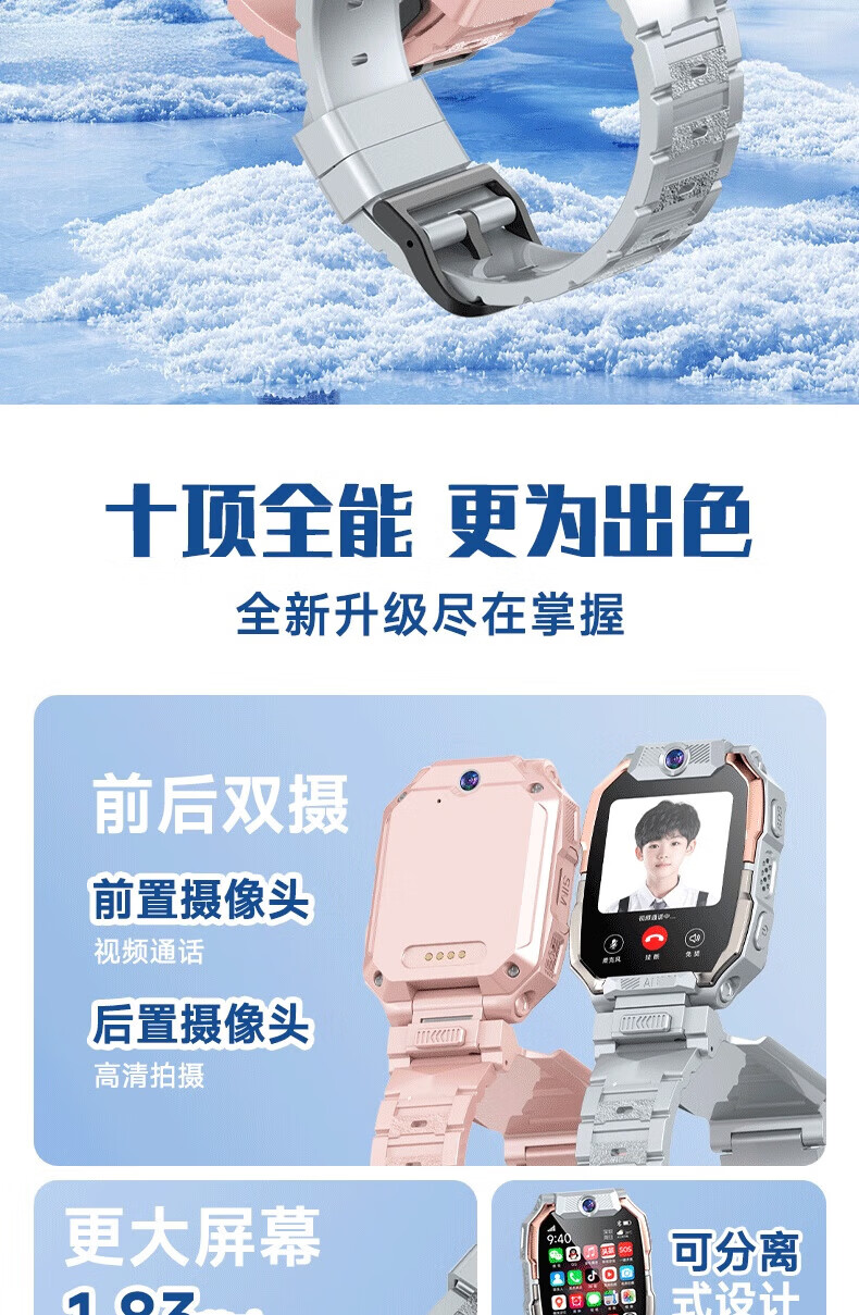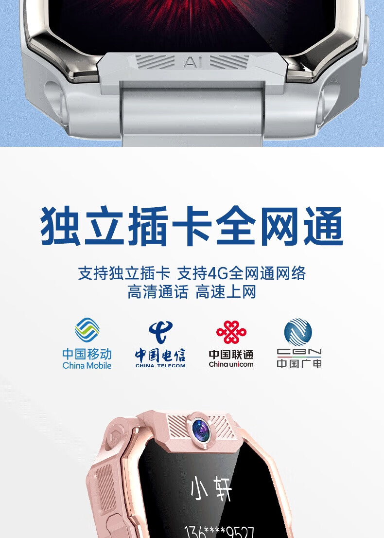 一米趣录【前后双摄】儿童电话手表3-6-12岁男女孩学生无游戏可接打插卡电话全网通4G/5G定位智能手表 巅峰款黑【8G】APP下载+GPS定位+全功能