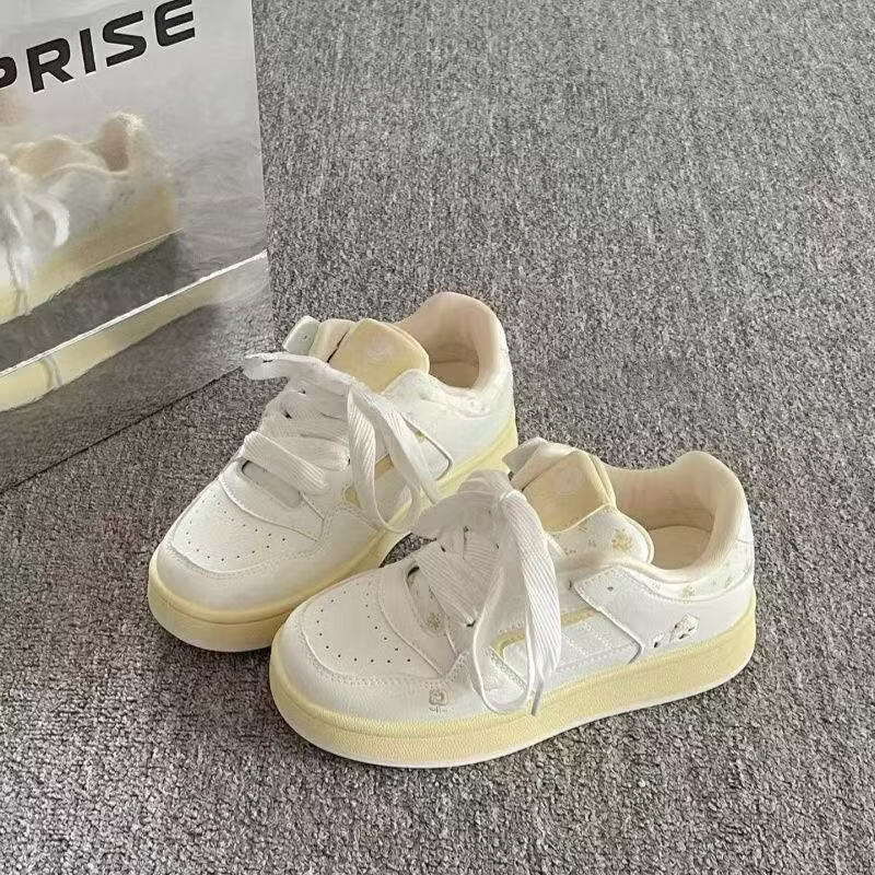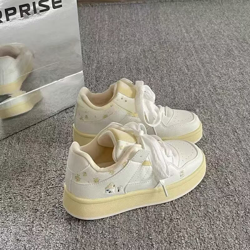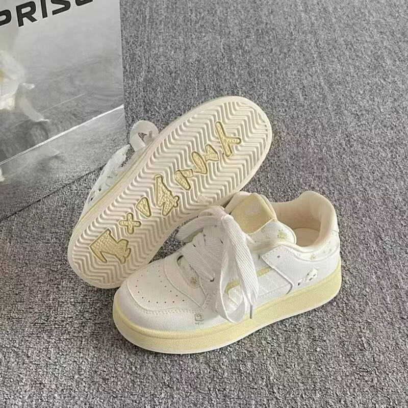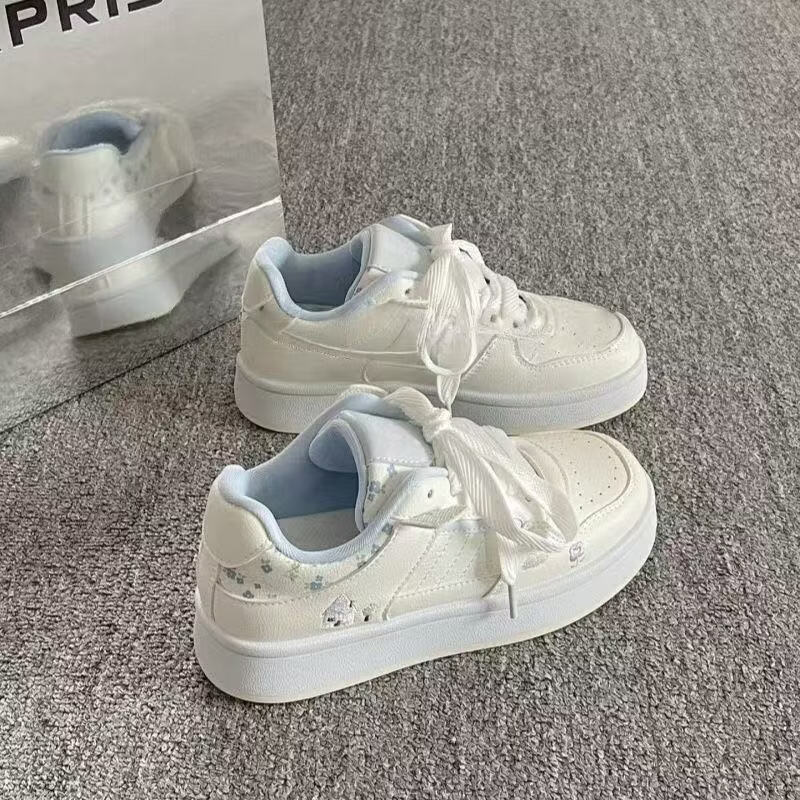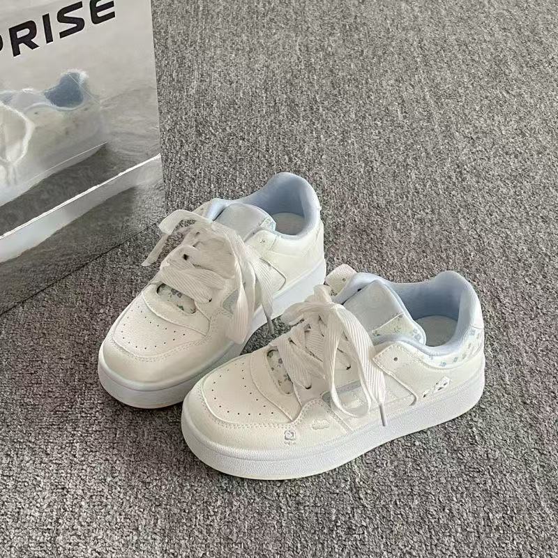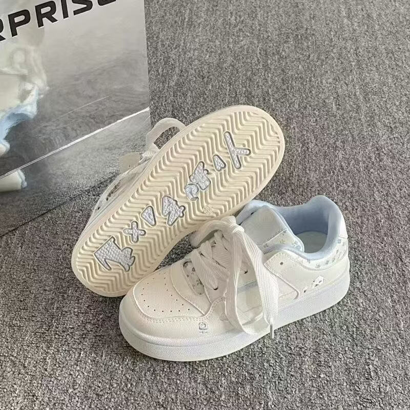 绮步佳人小白鞋女夏季新款透气板鞋 白兰色 35