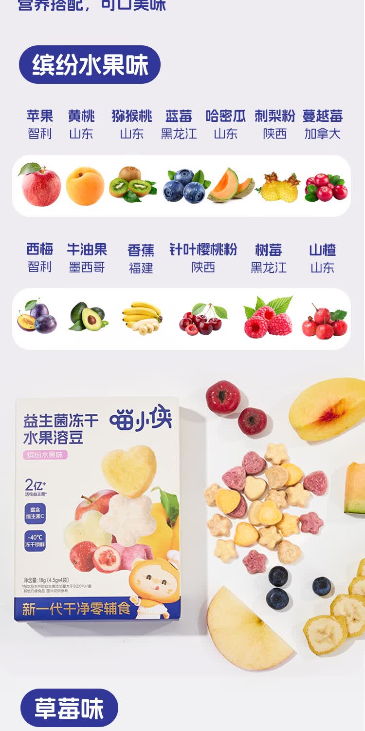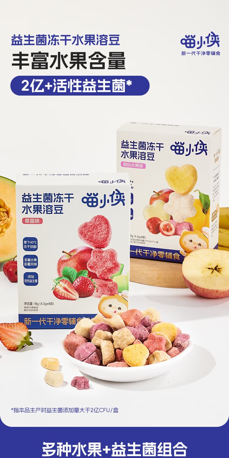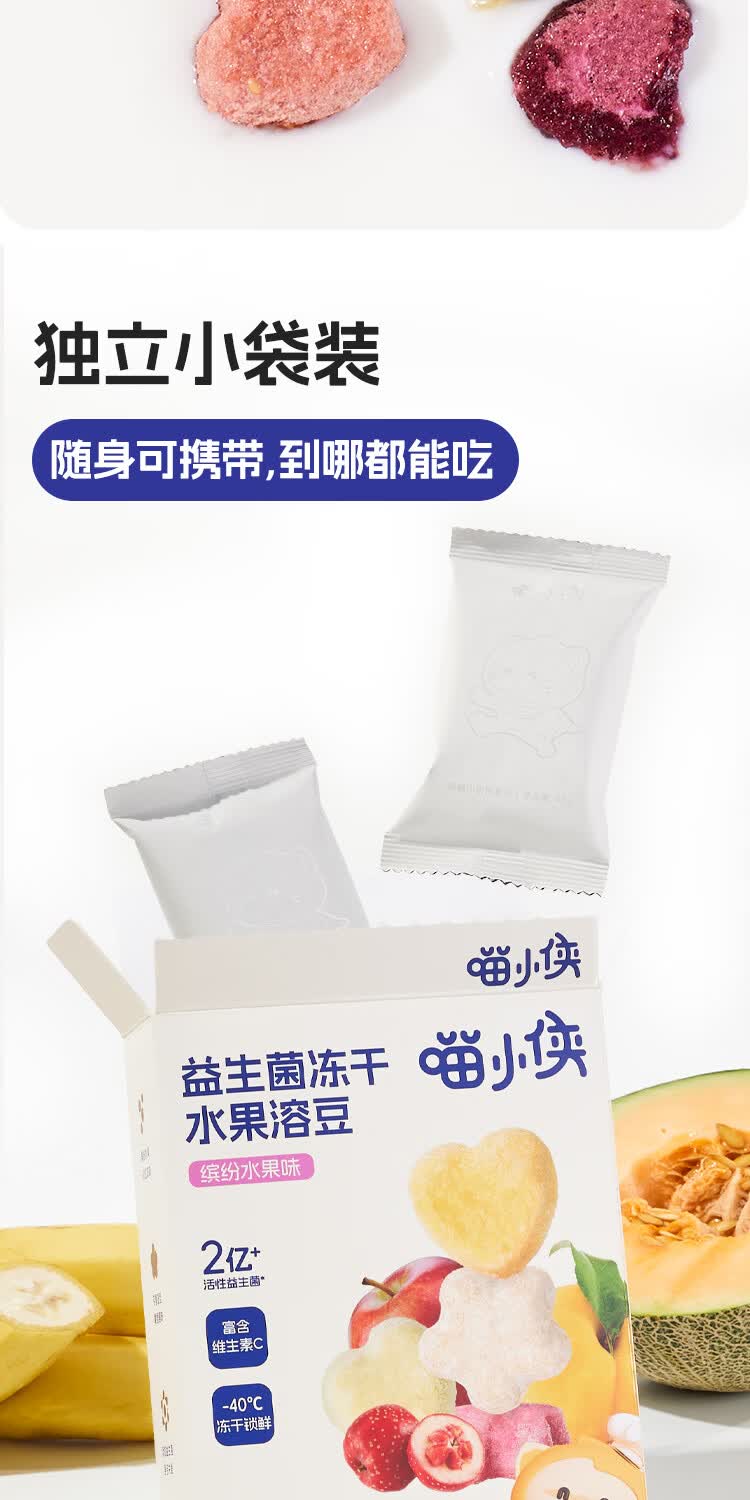 喵小侠益生菌冻干水果溶溶豆无添加白砂糖,送宝宝婴幼儿辅食食谱 水果溶溶豆缤纷水果味*2盒