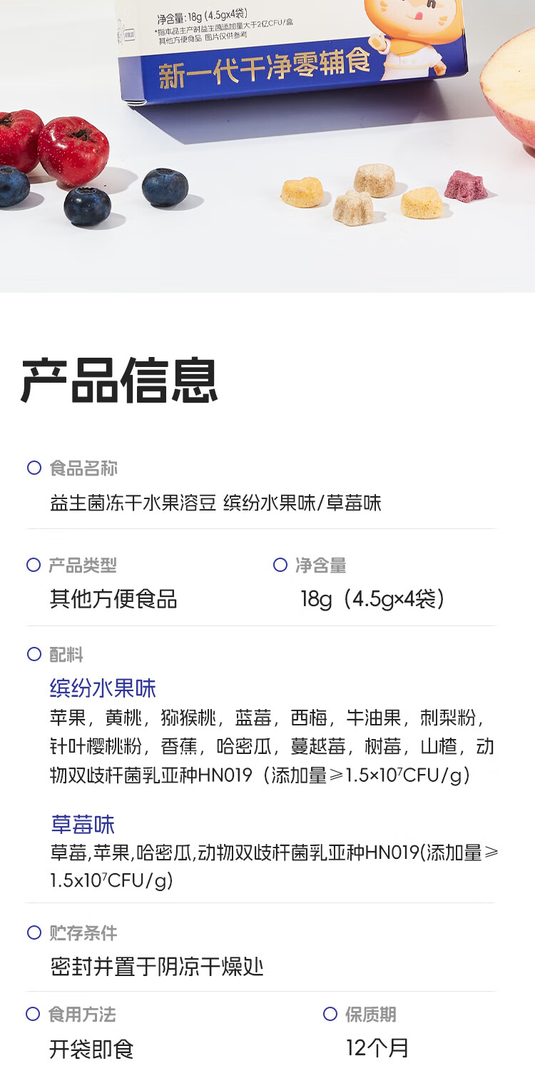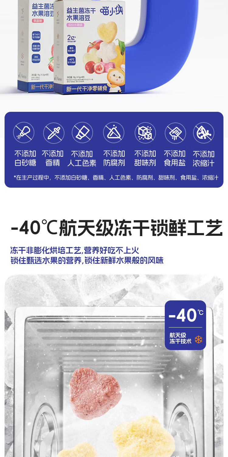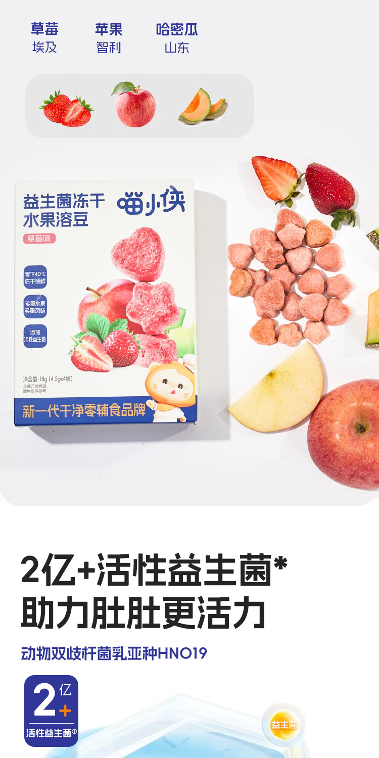 喵小侠益生菌冻干水果溶溶豆无添加白砂糖,送宝宝婴幼儿辅食食谱 水果溶溶豆缤纷水果味*2盒