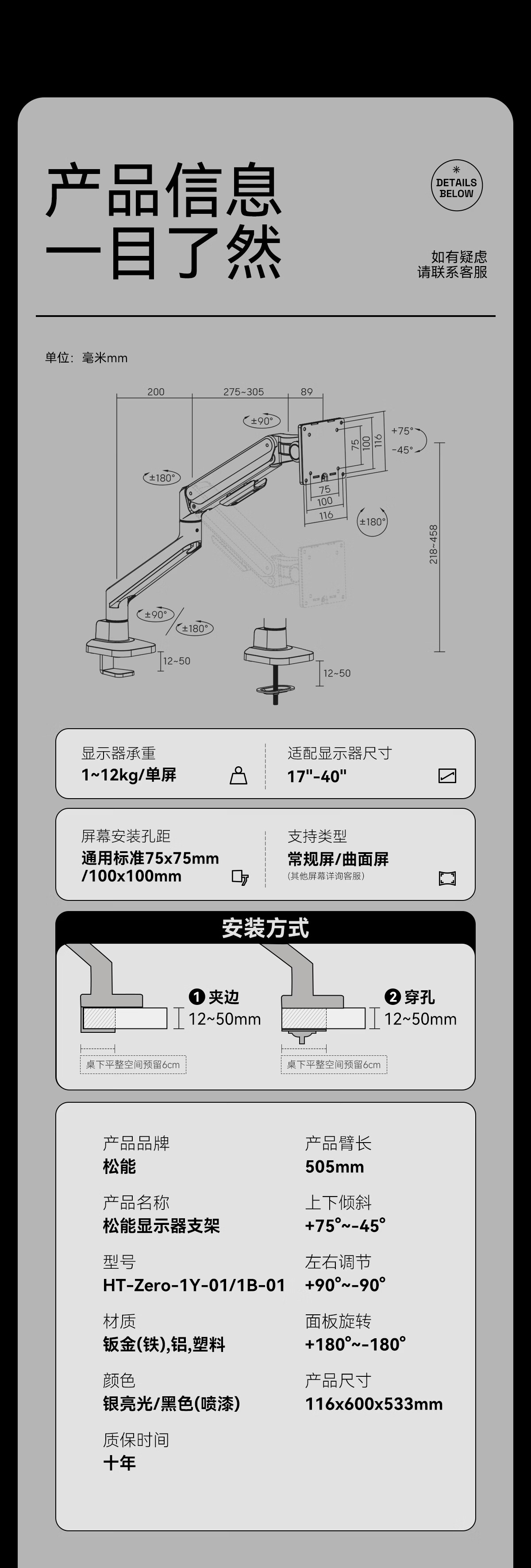 松能显示器支架 电脑支架 松能科技舱 零感显示器支架臂 机械臂 显示器配件 电脑增高架 HT-Zero