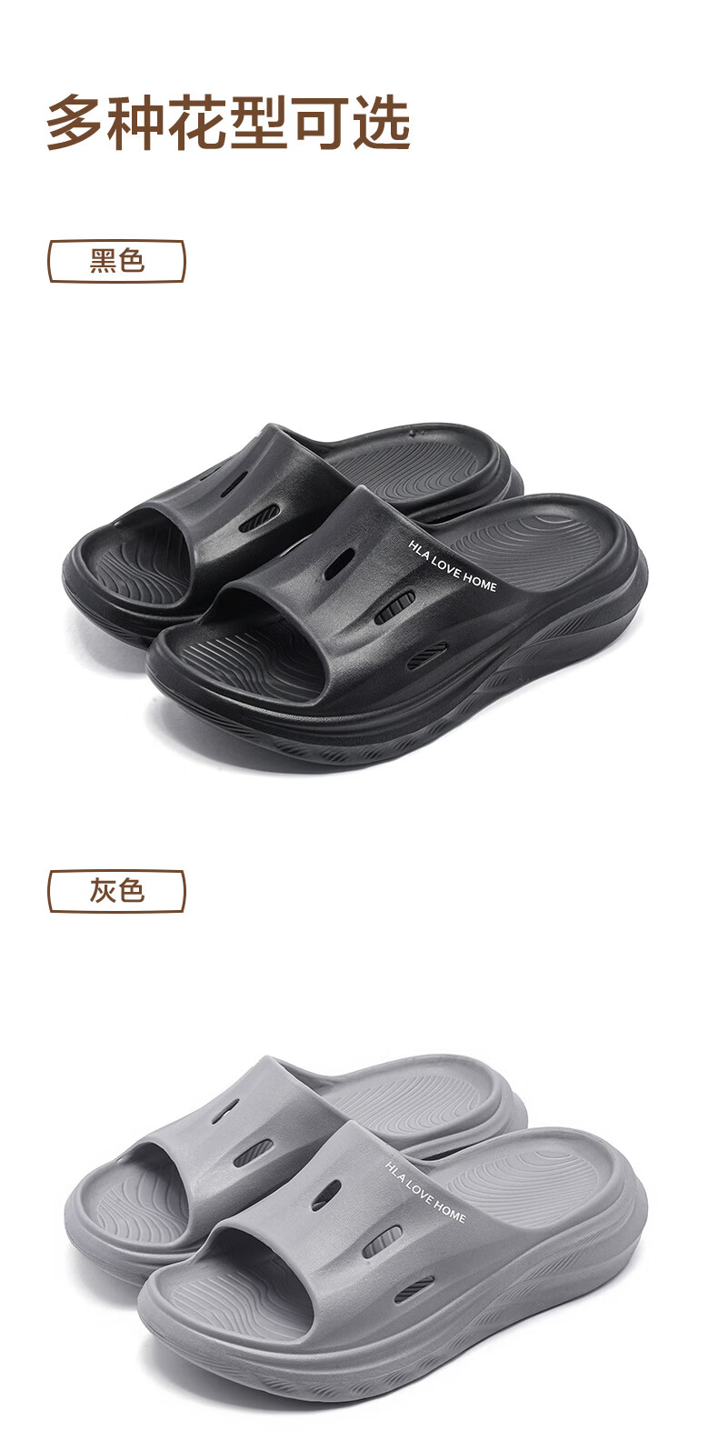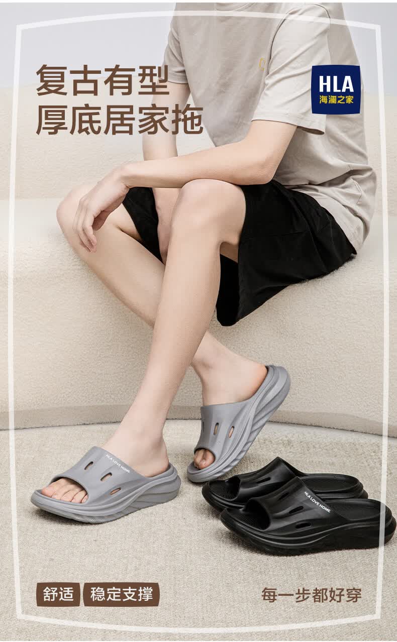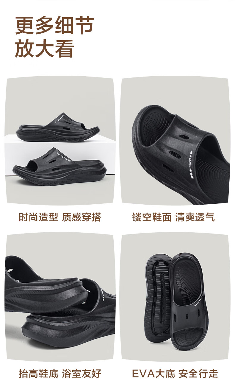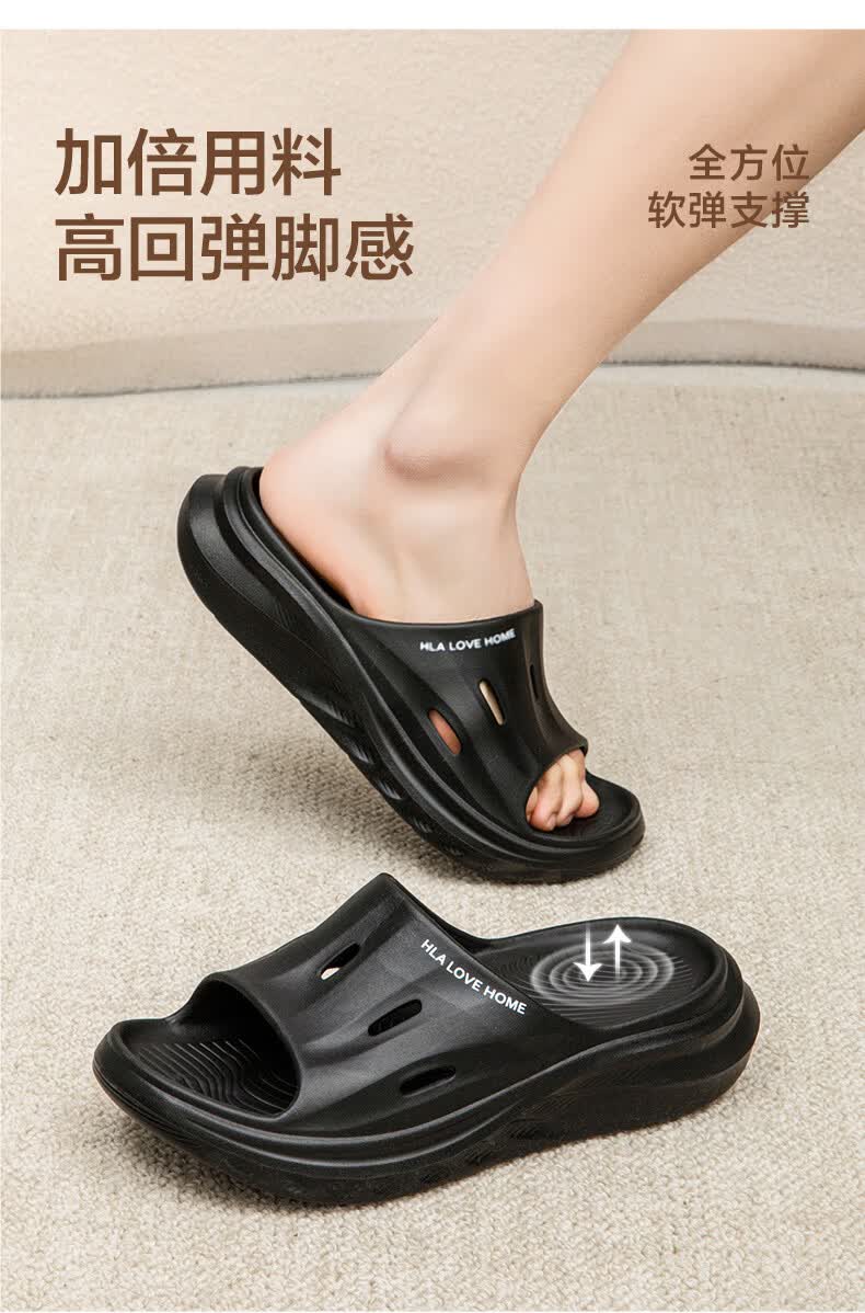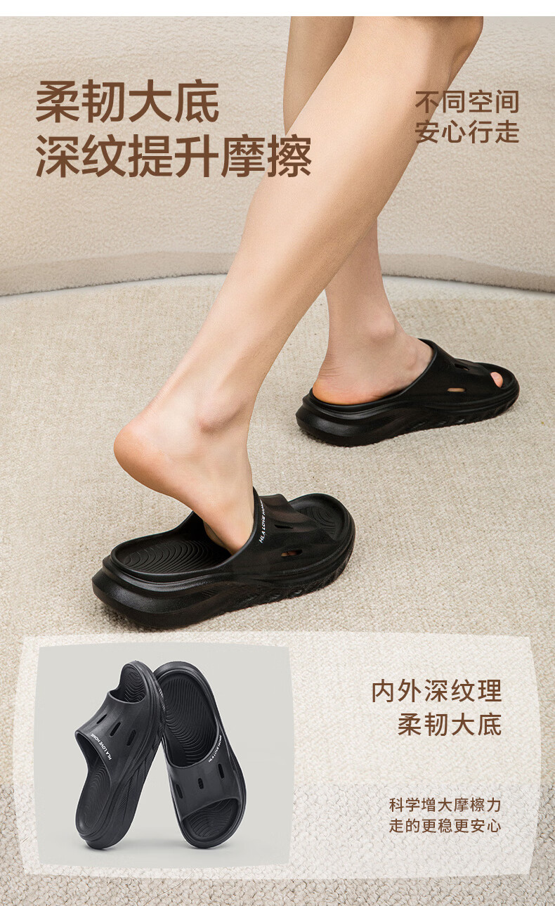 海澜之家(HLA)买一送一情侣拖鞋夏季室内家居防滑厚底浴室洗澡凉拖男女款凉拖 3033卡其+3110黑色 组合装 38-39+42-43
