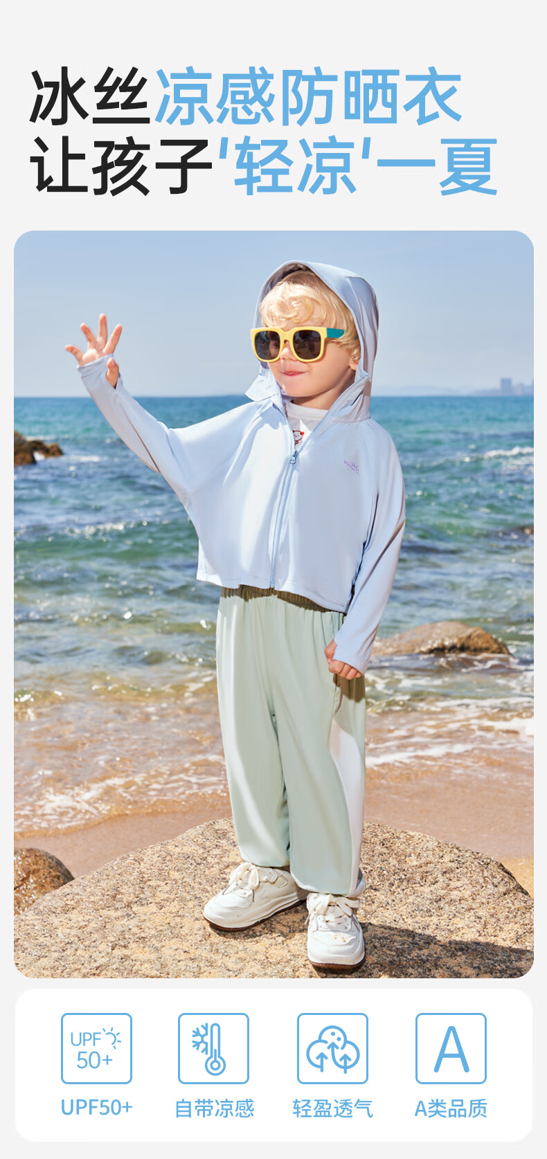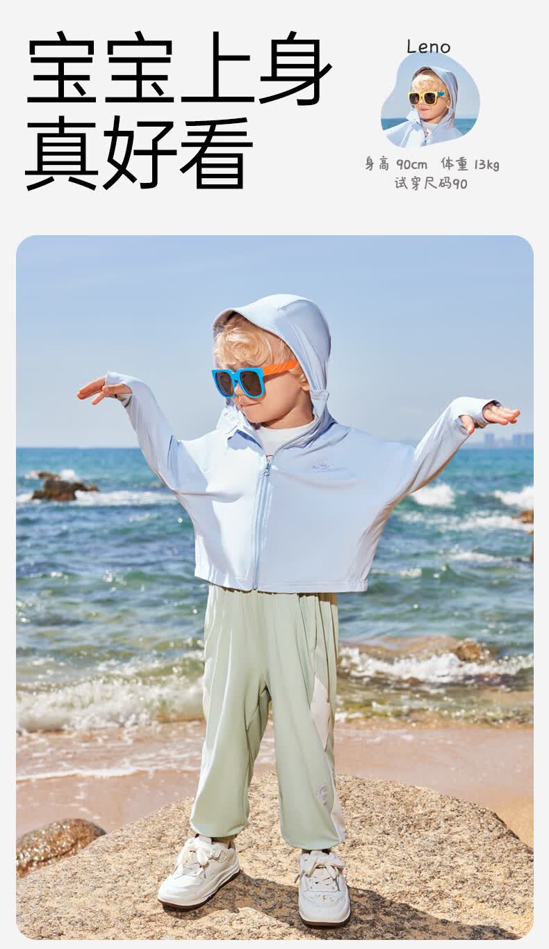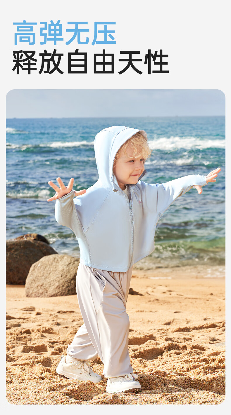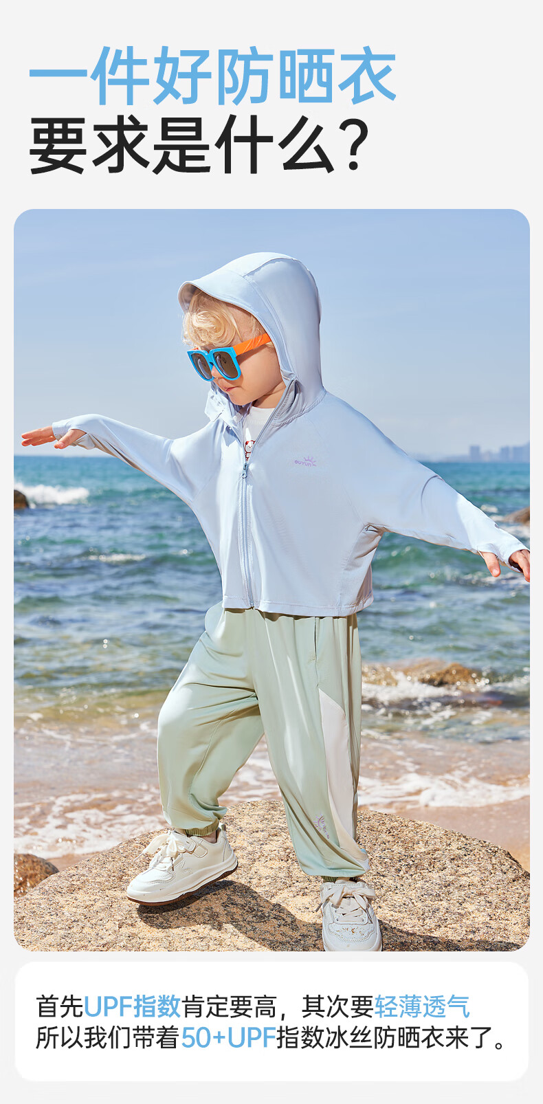 欧孕儿童防晒衣男童女童UPF50+宝宝冰丝防晒服婴儿A类夏季薄 迷雾蓝 90 码