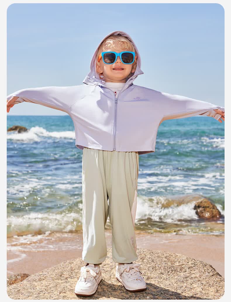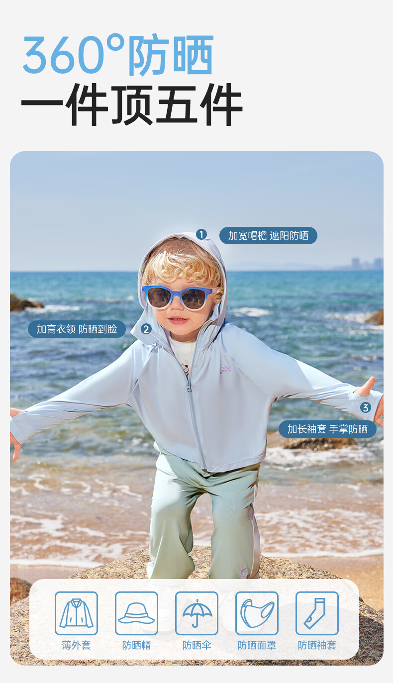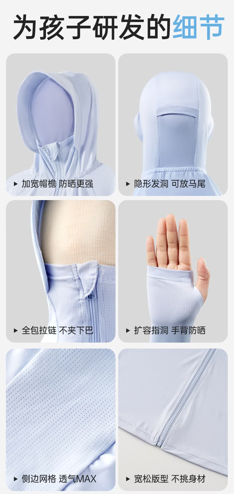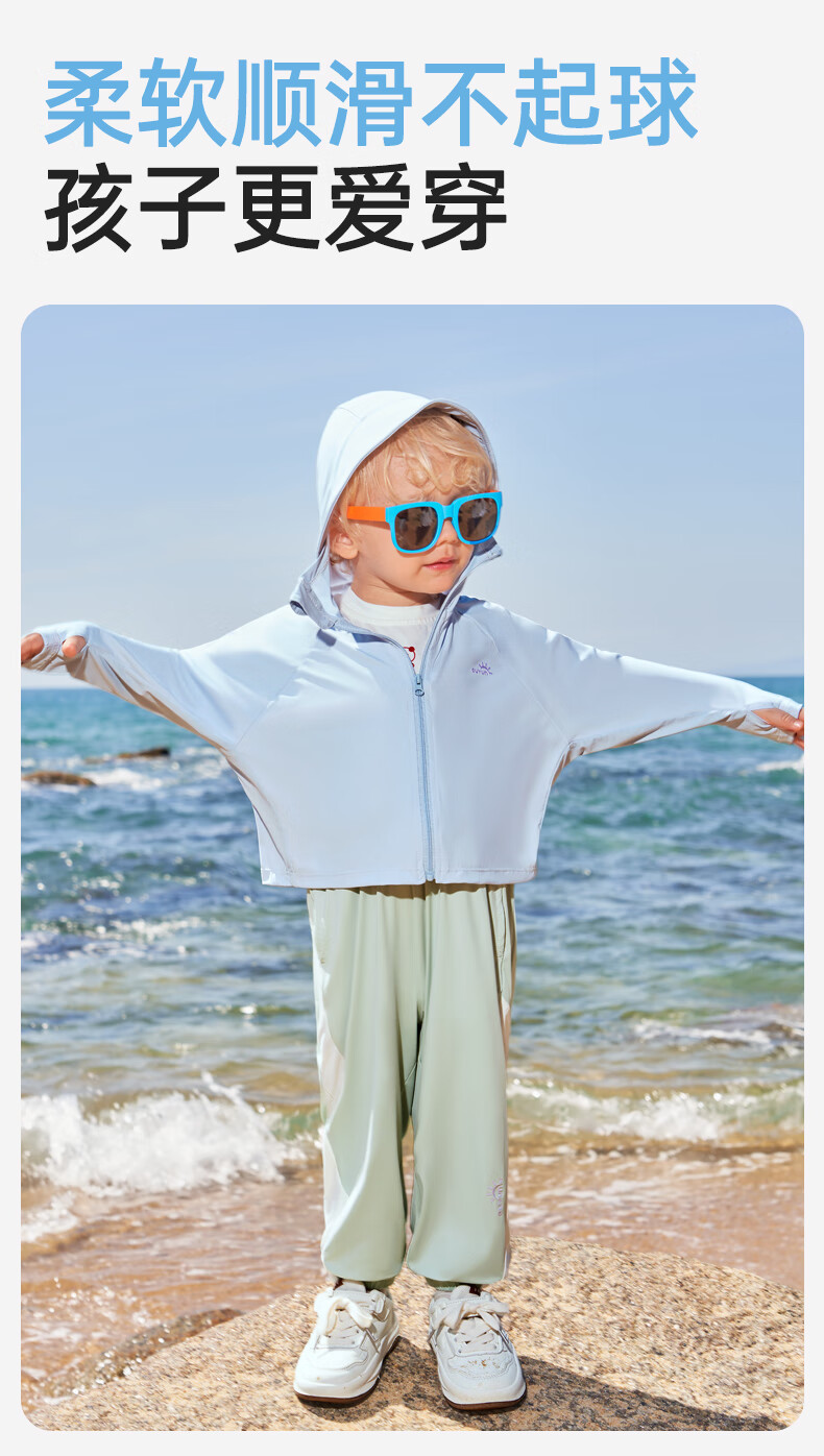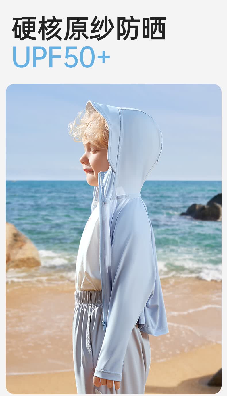 欧孕儿童防晒衣男童女童UPF50+宝宝冰丝防晒服婴儿A类夏季薄 迷雾蓝 90 码