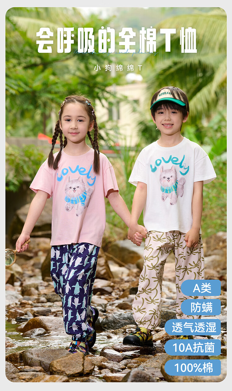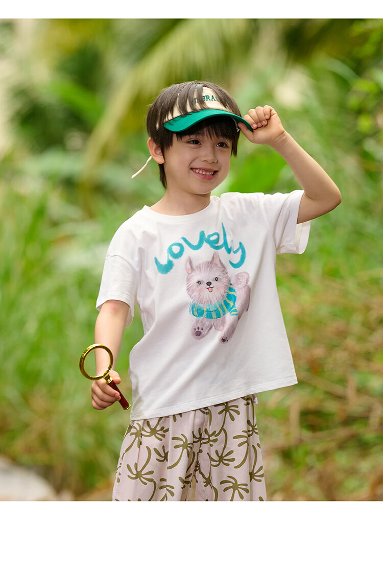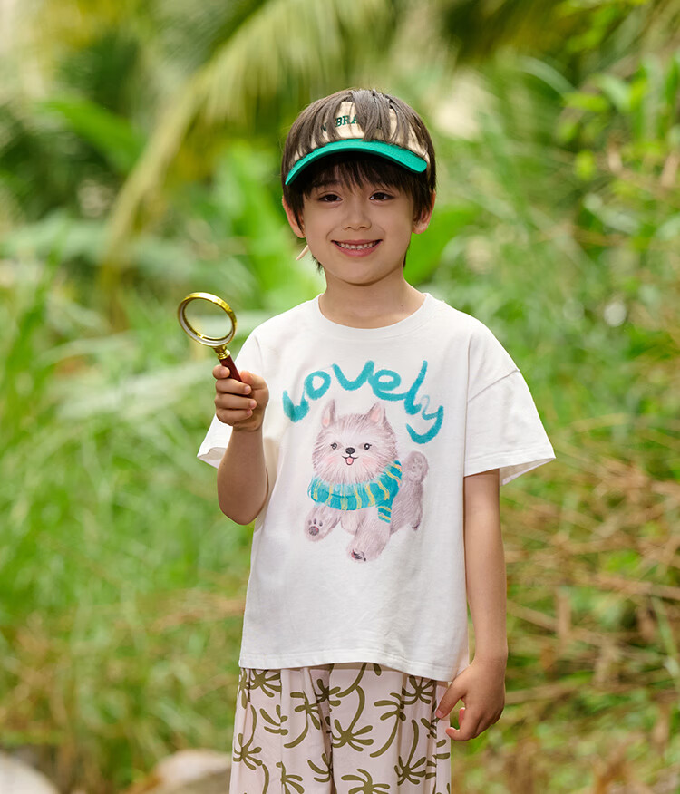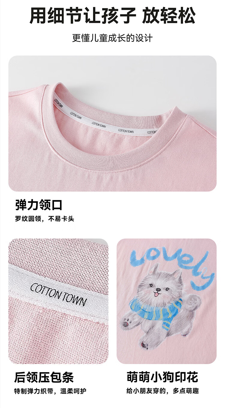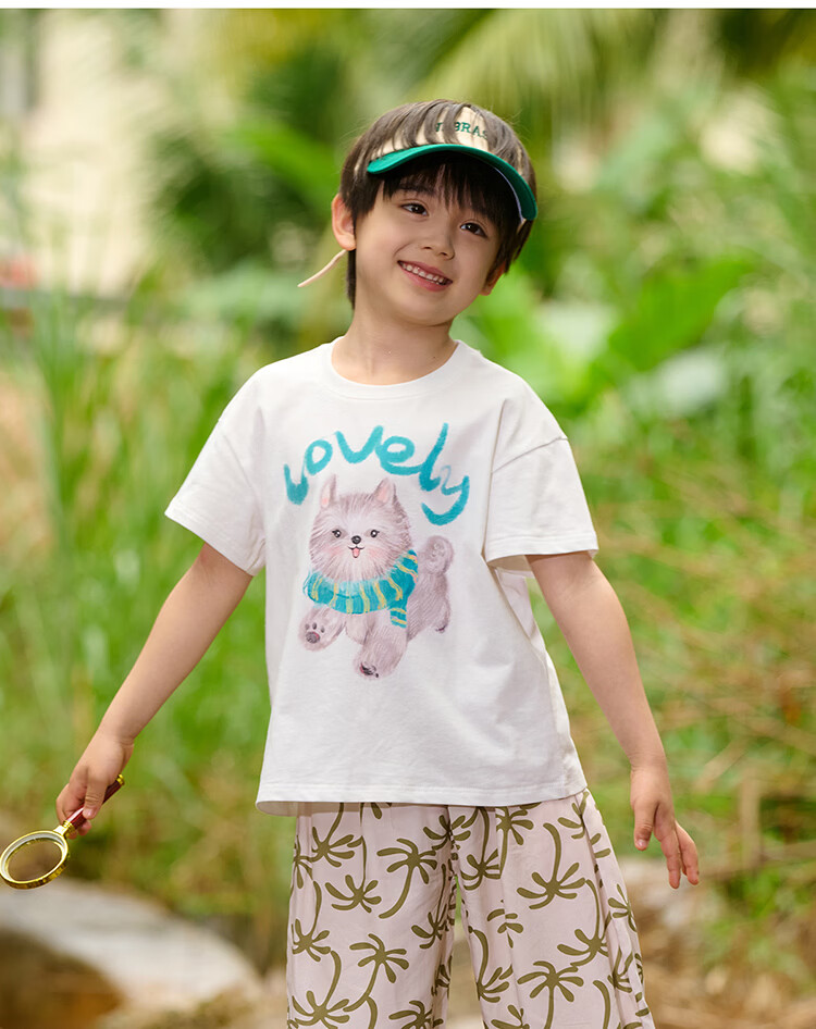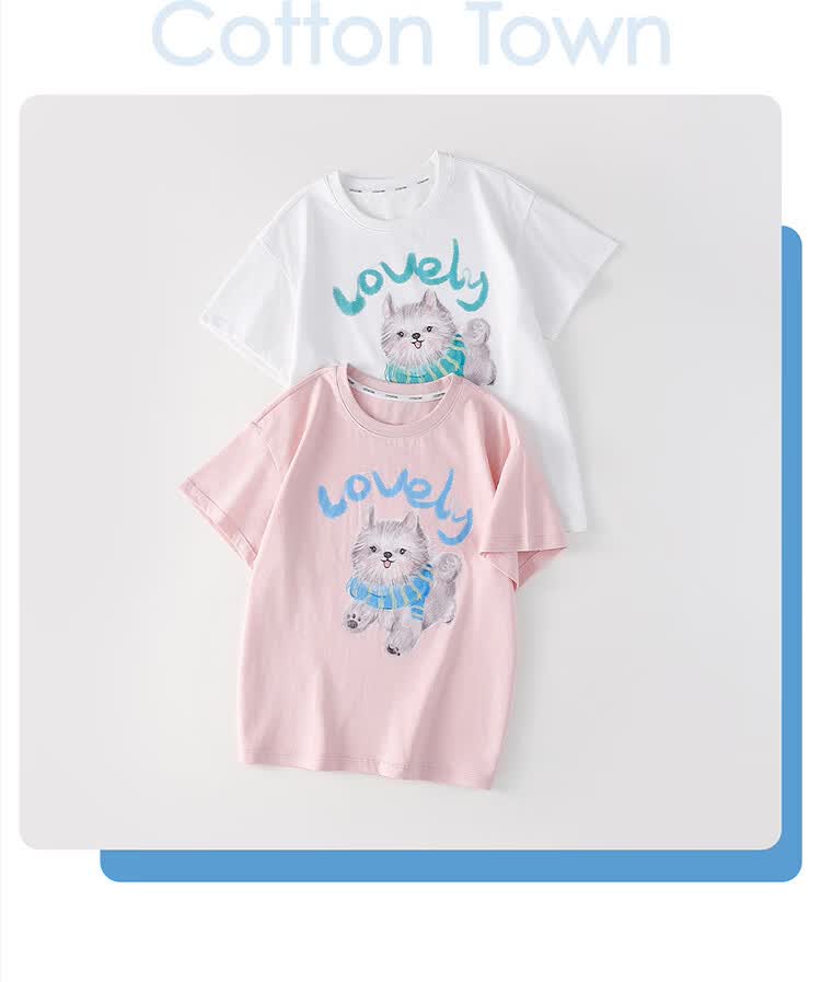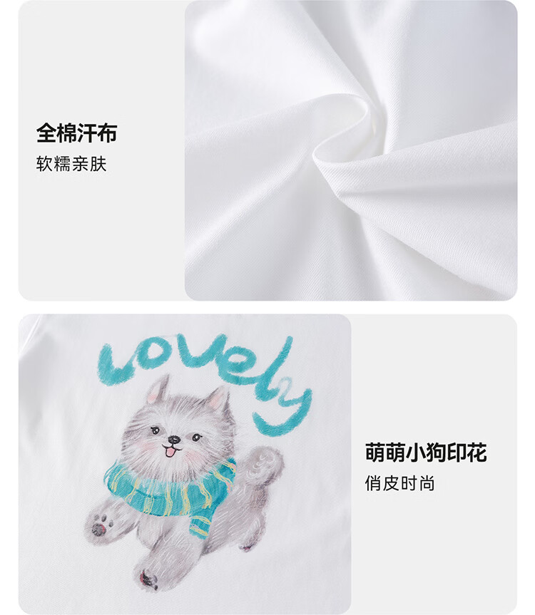 棉花堂(cottontown)【100%棉】棉花堂童装儿童短袖T恤纯棉A类抗菌男女童小狗印花上衣 本白 90 90/52