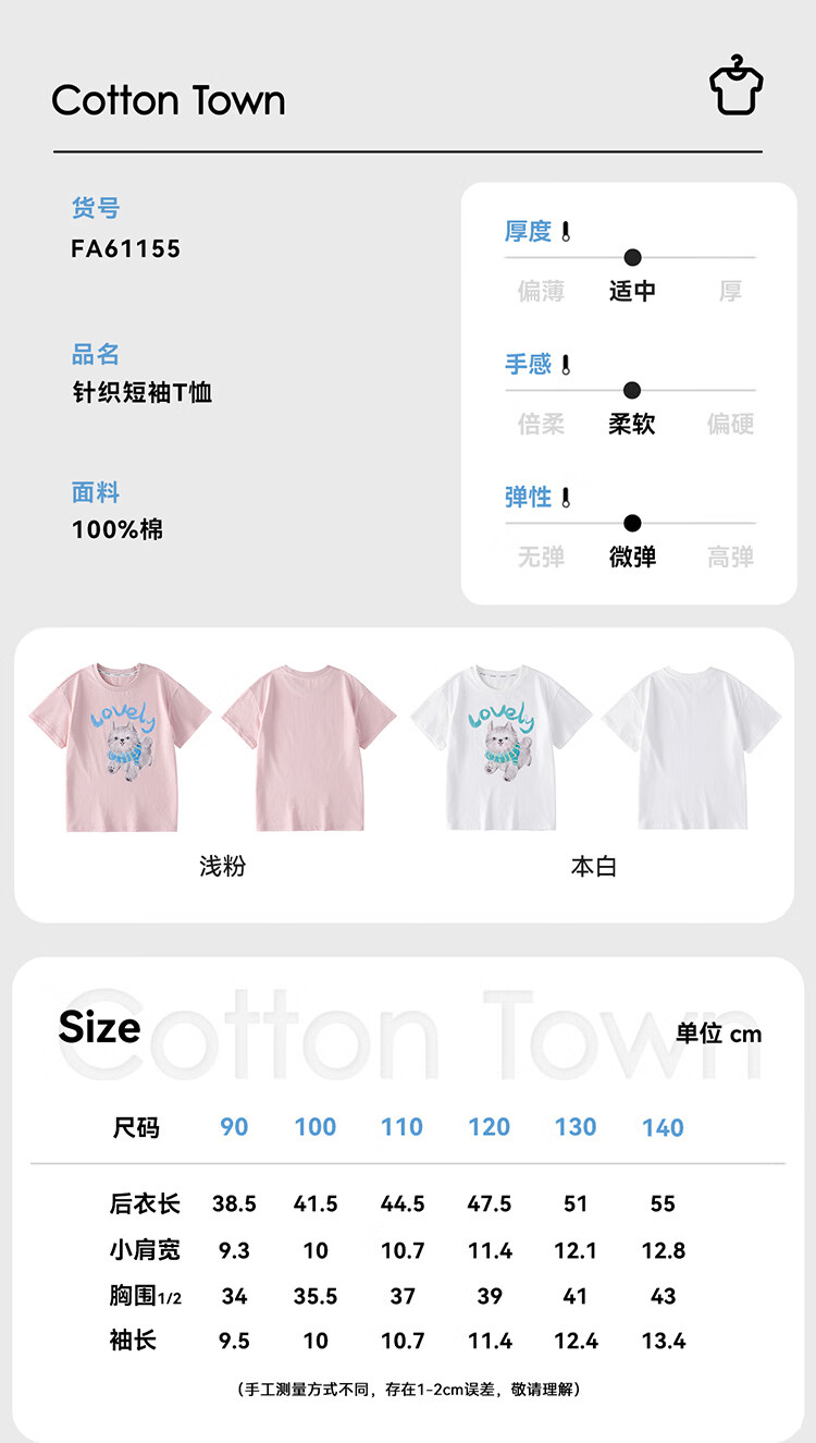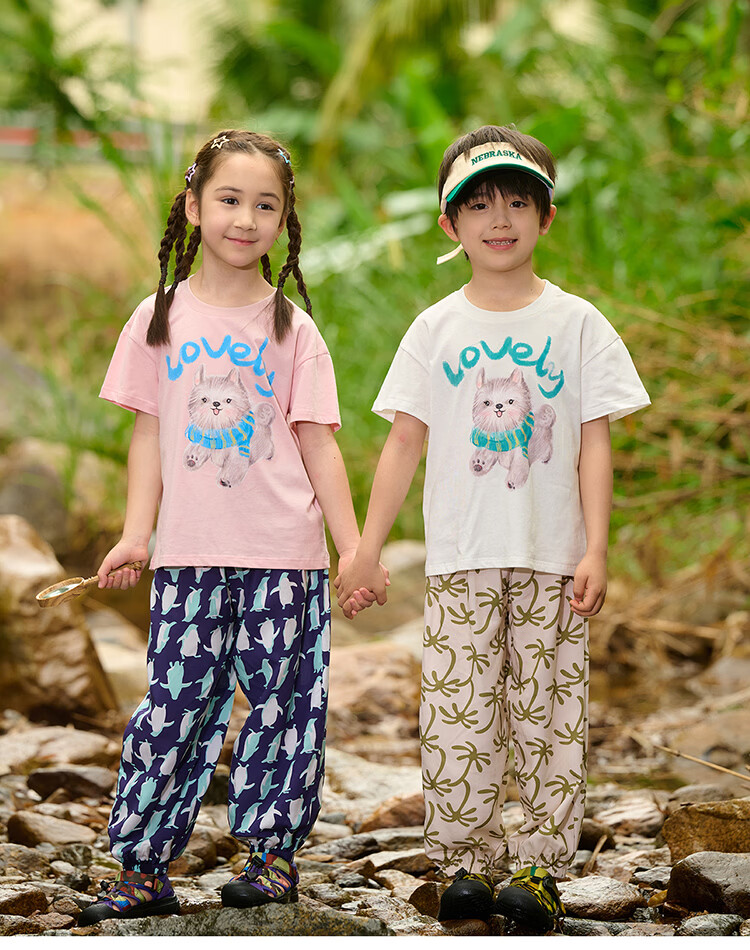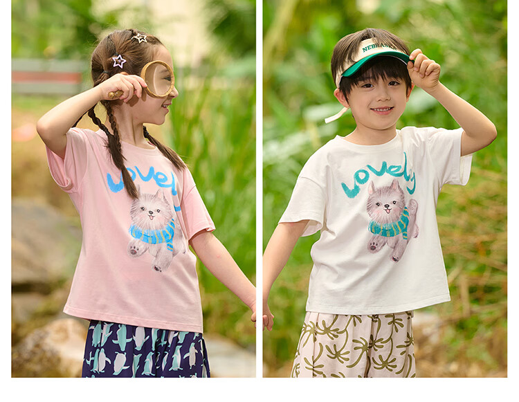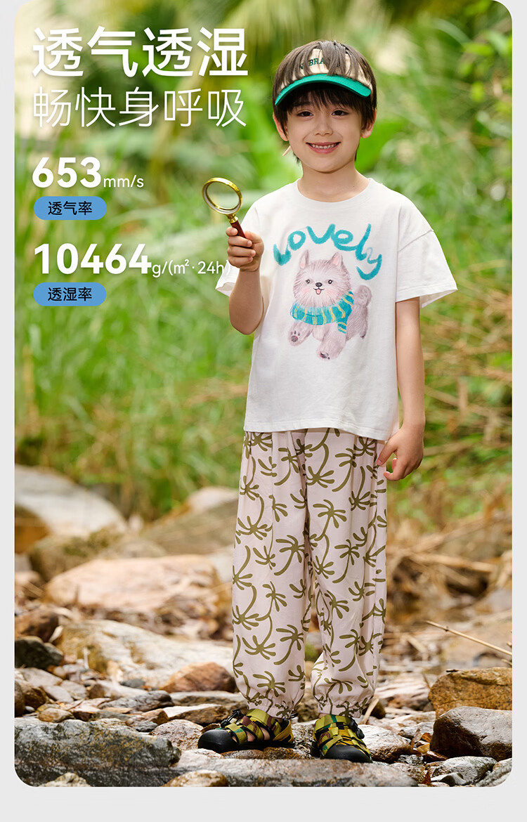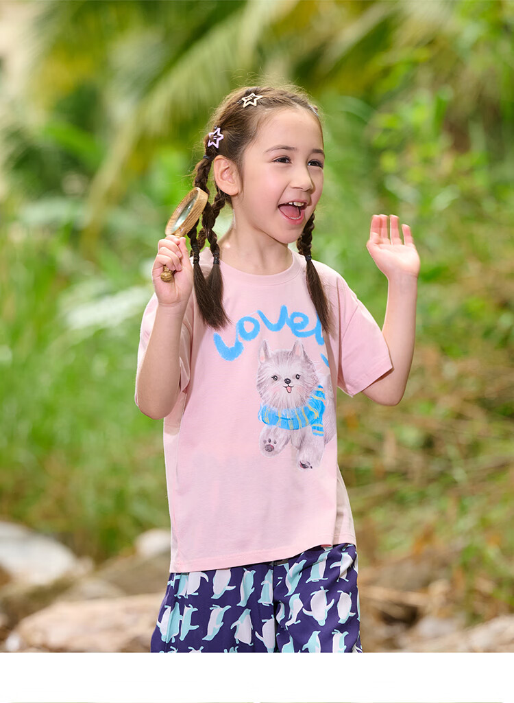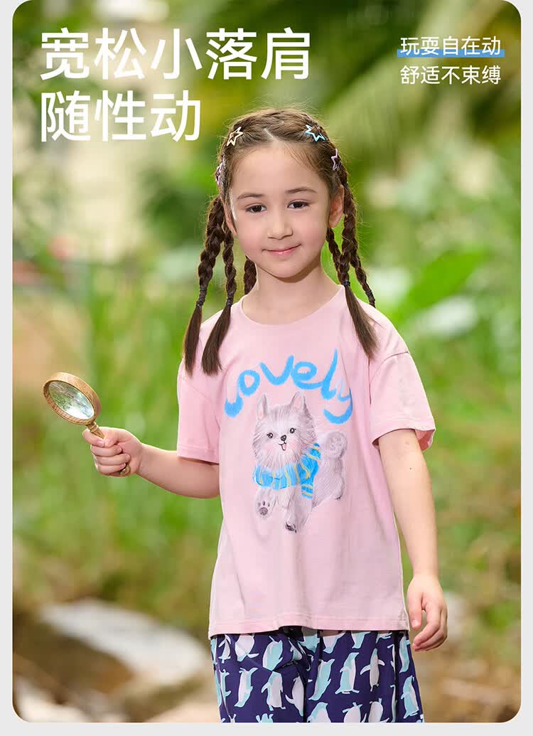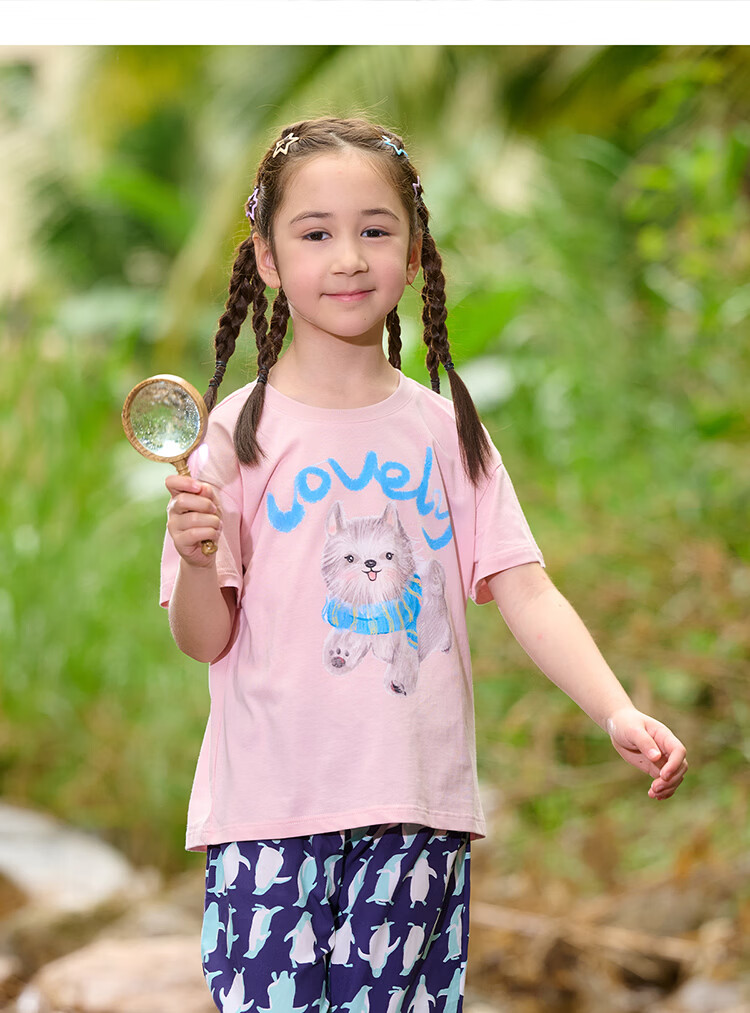 棉花堂(cottontown)【100%棉】棉花堂童装儿童短袖T恤纯棉A类抗菌男女童小狗印花上衣 本白 90 90/52