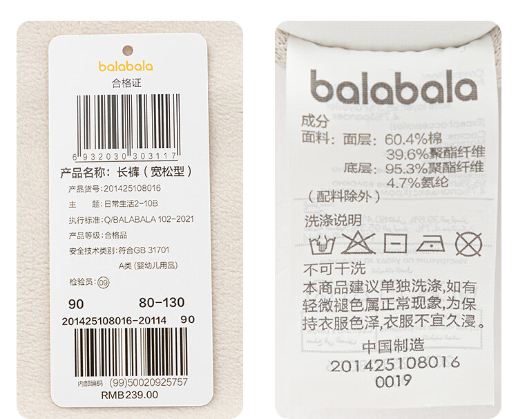 巴拉巴拉【商场同款】童装宝宝长裤女童儿童休闲裤加绒冬新款