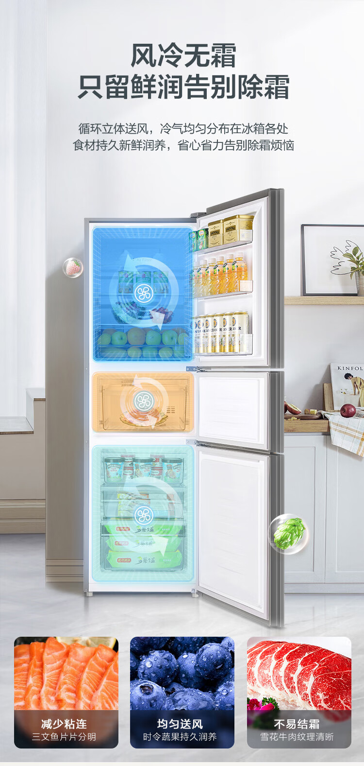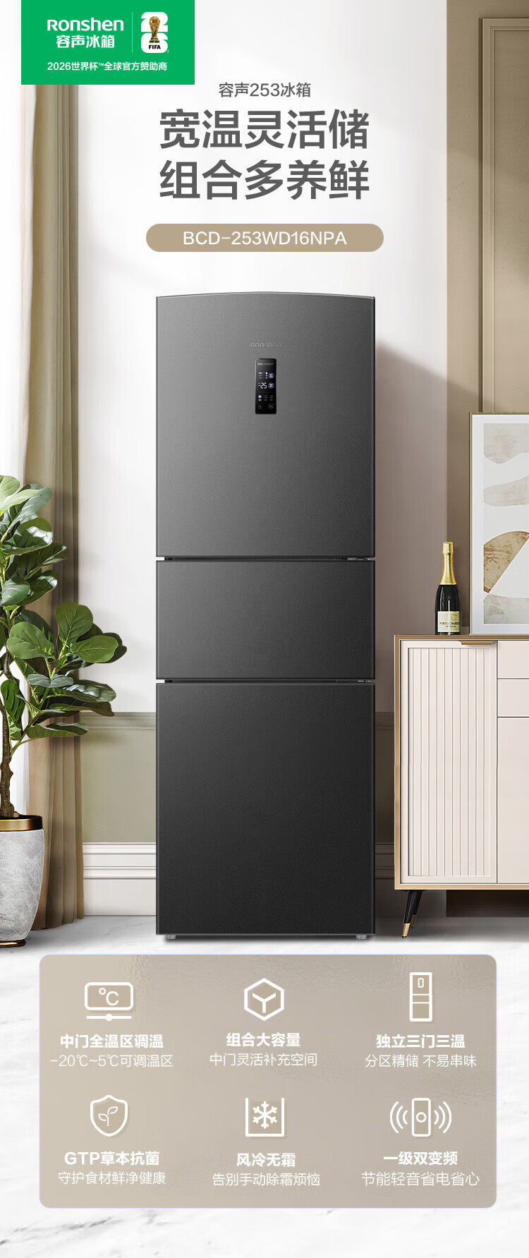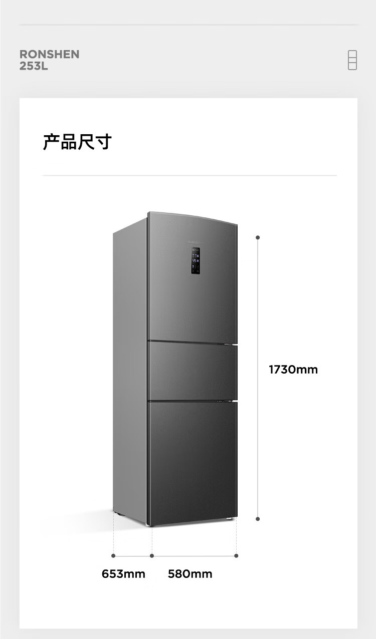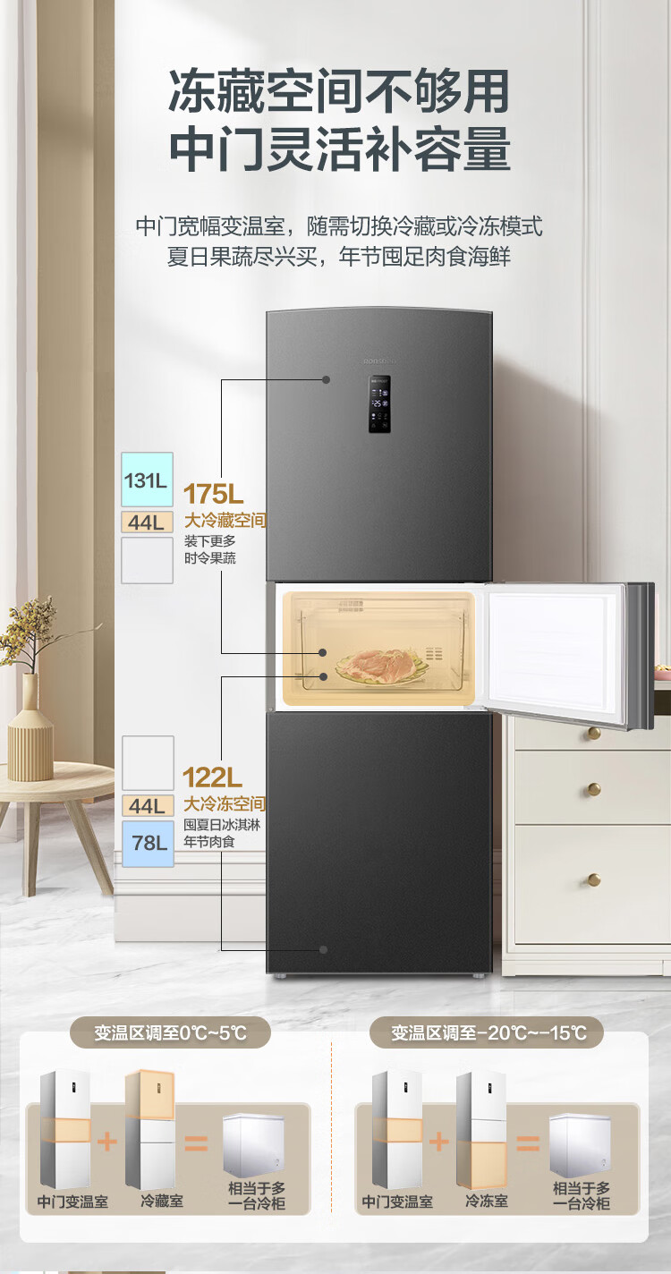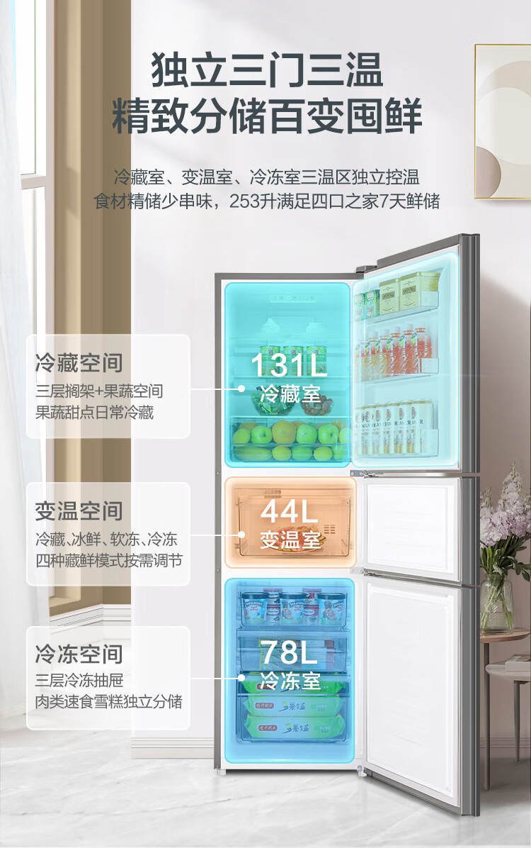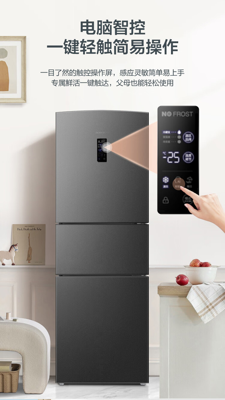 容声253L三开门小冰箱小型家用超薄一级能效风冷无霜变频小户型出租房换新星澜BCD-253WD16NPA国家补贴