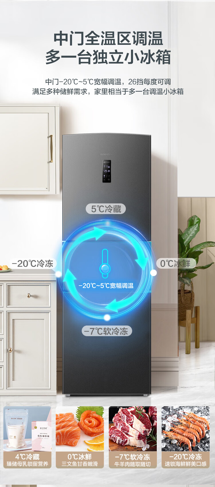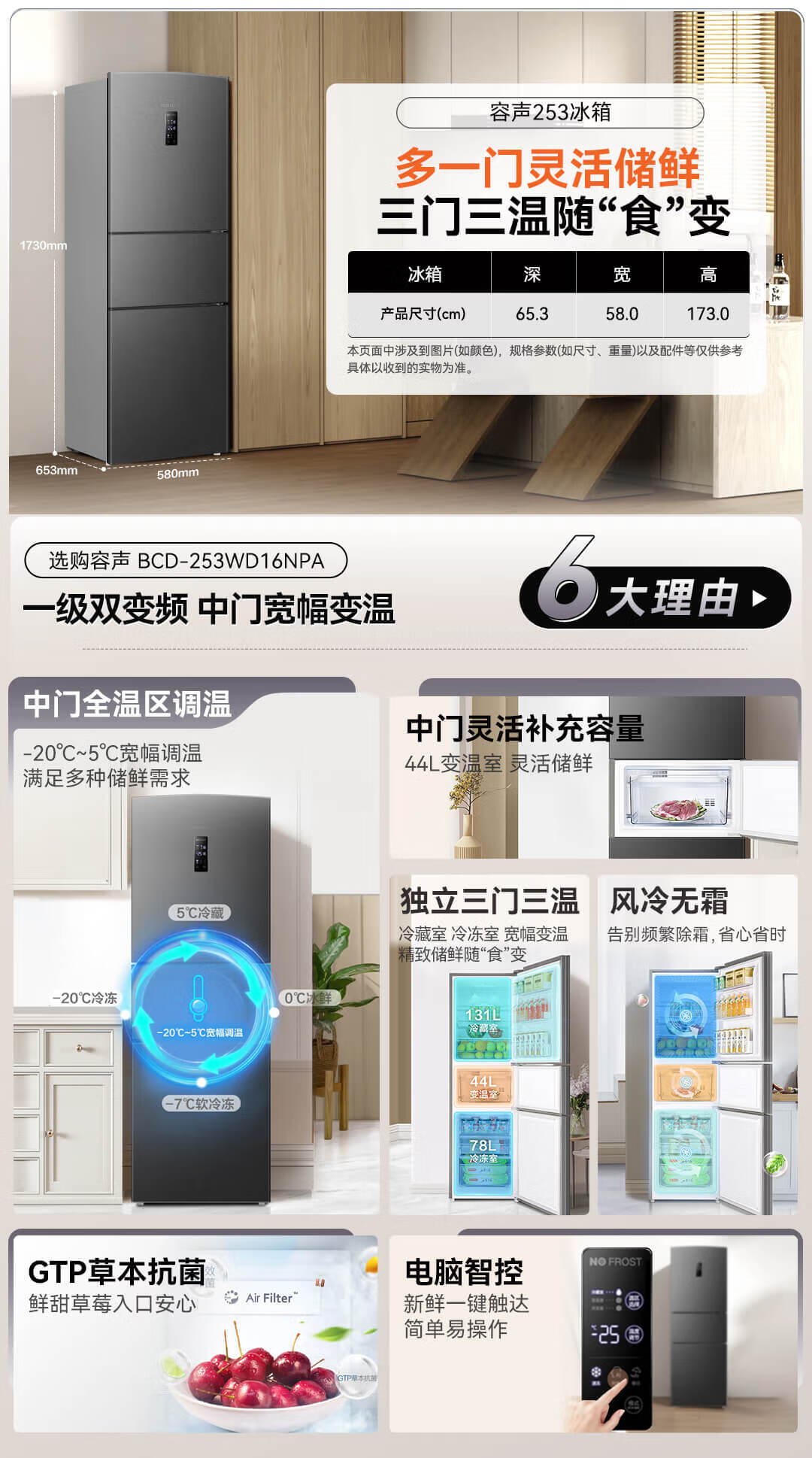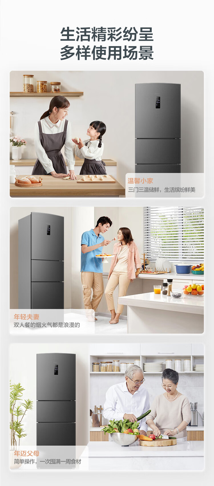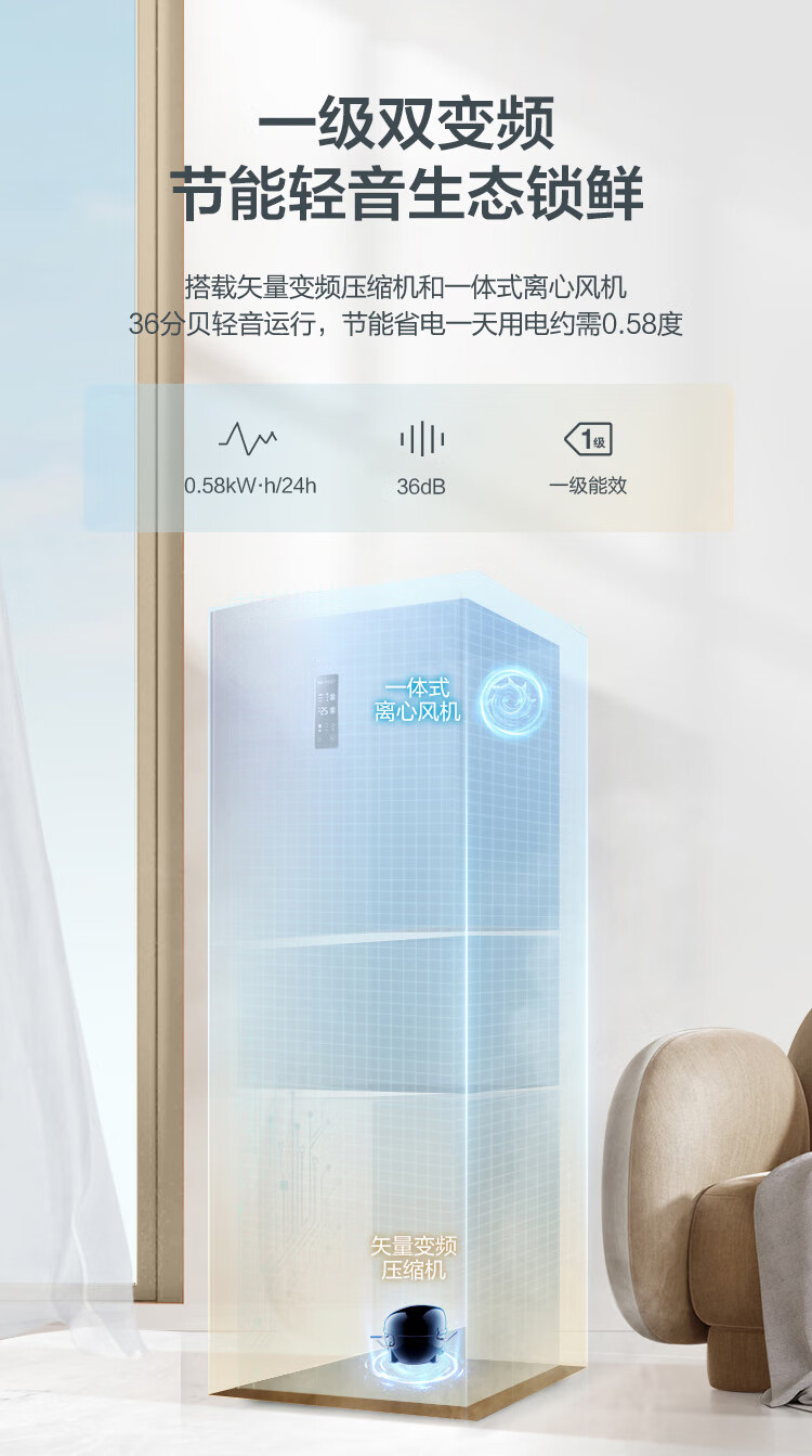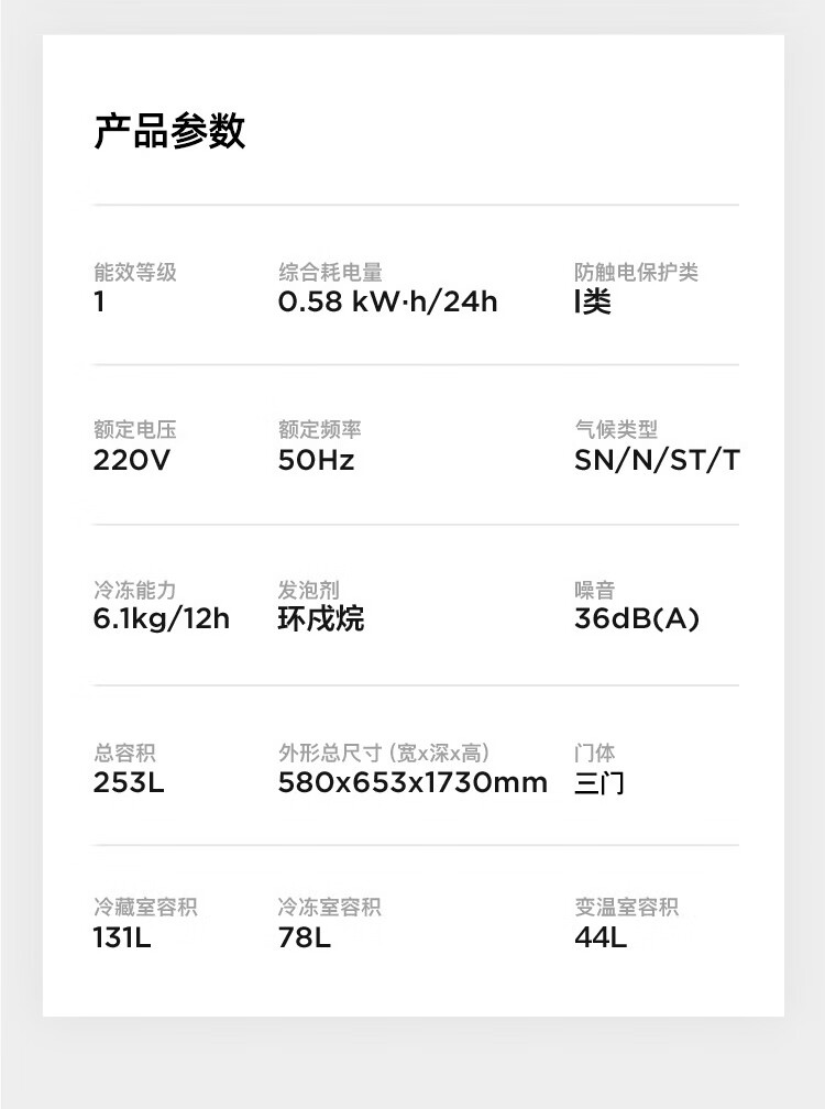 容声253L三开门小冰箱小型家用超薄一级能效风冷无霜变频小户型出租房换新星澜BCD-253WD16NPA国家补贴