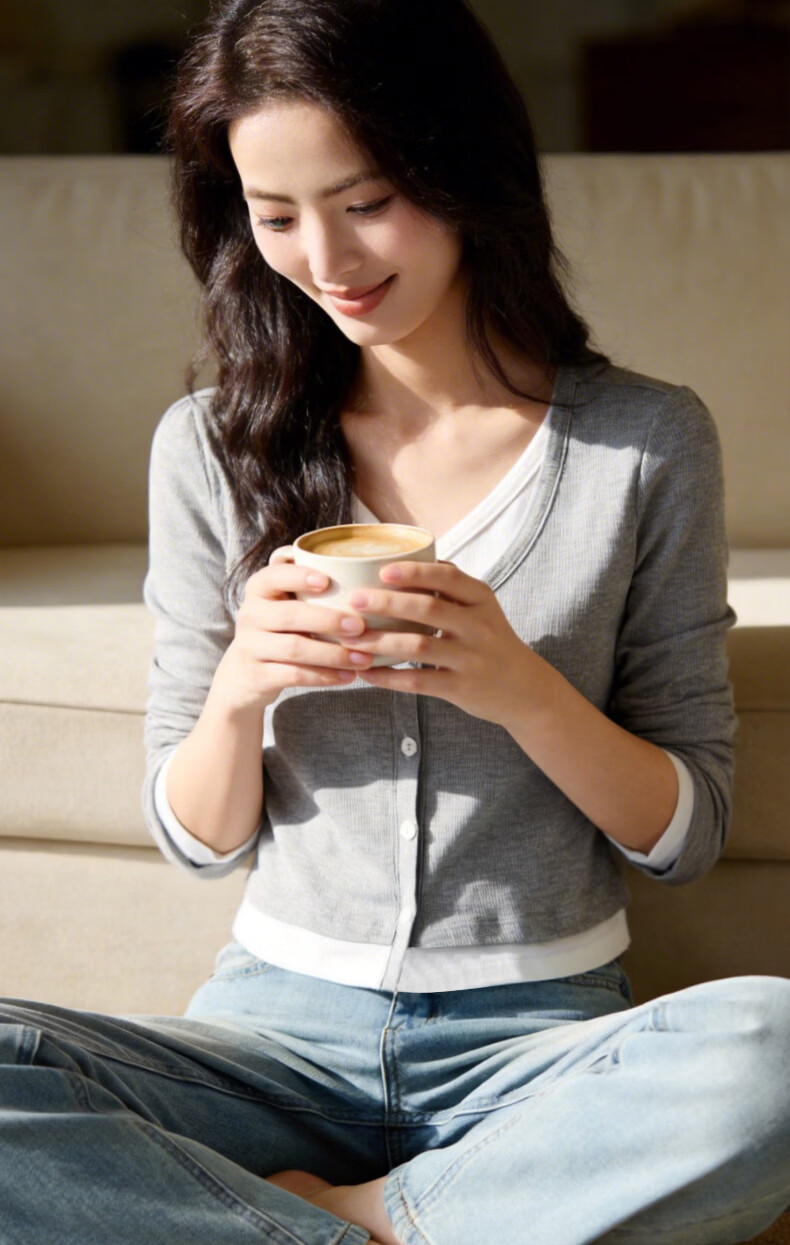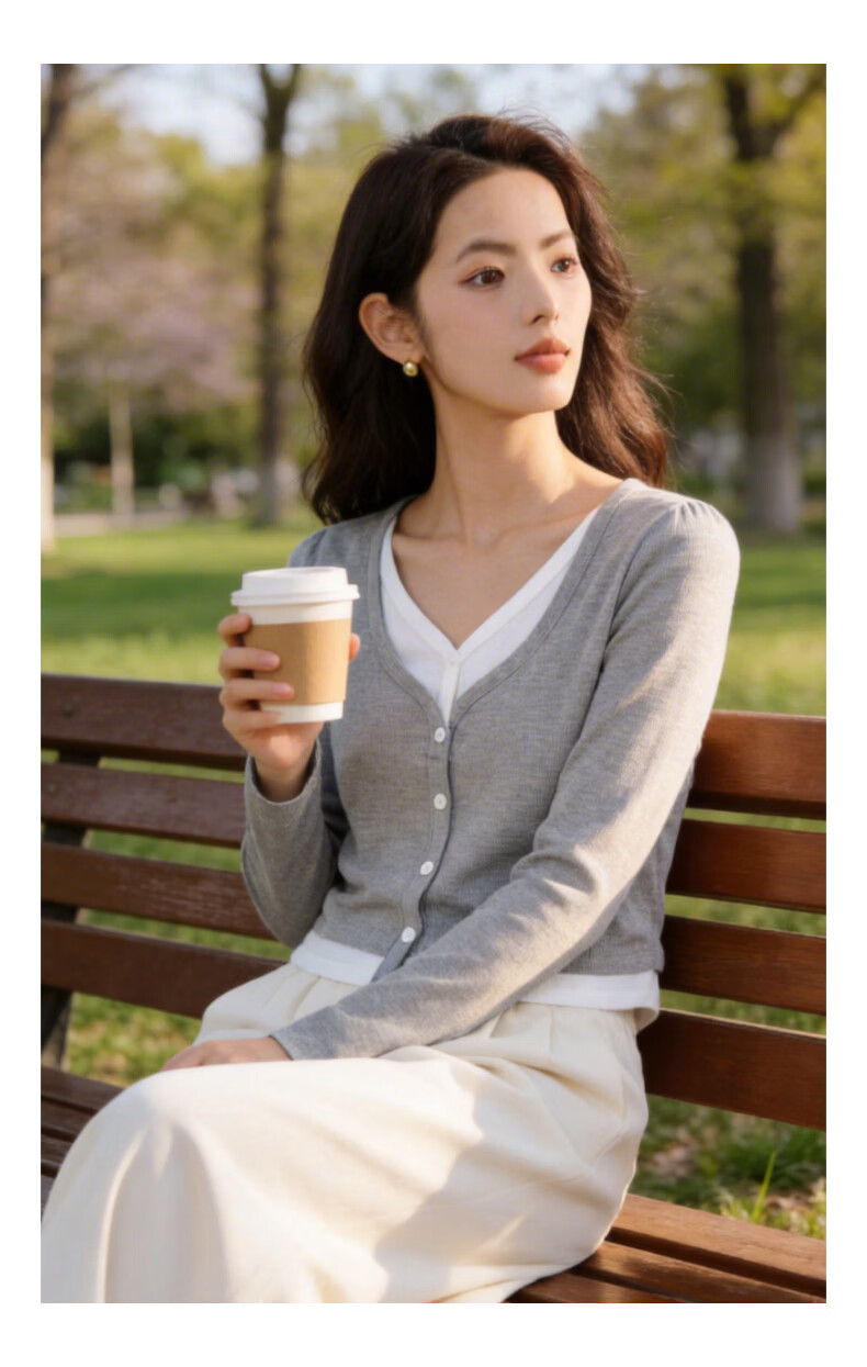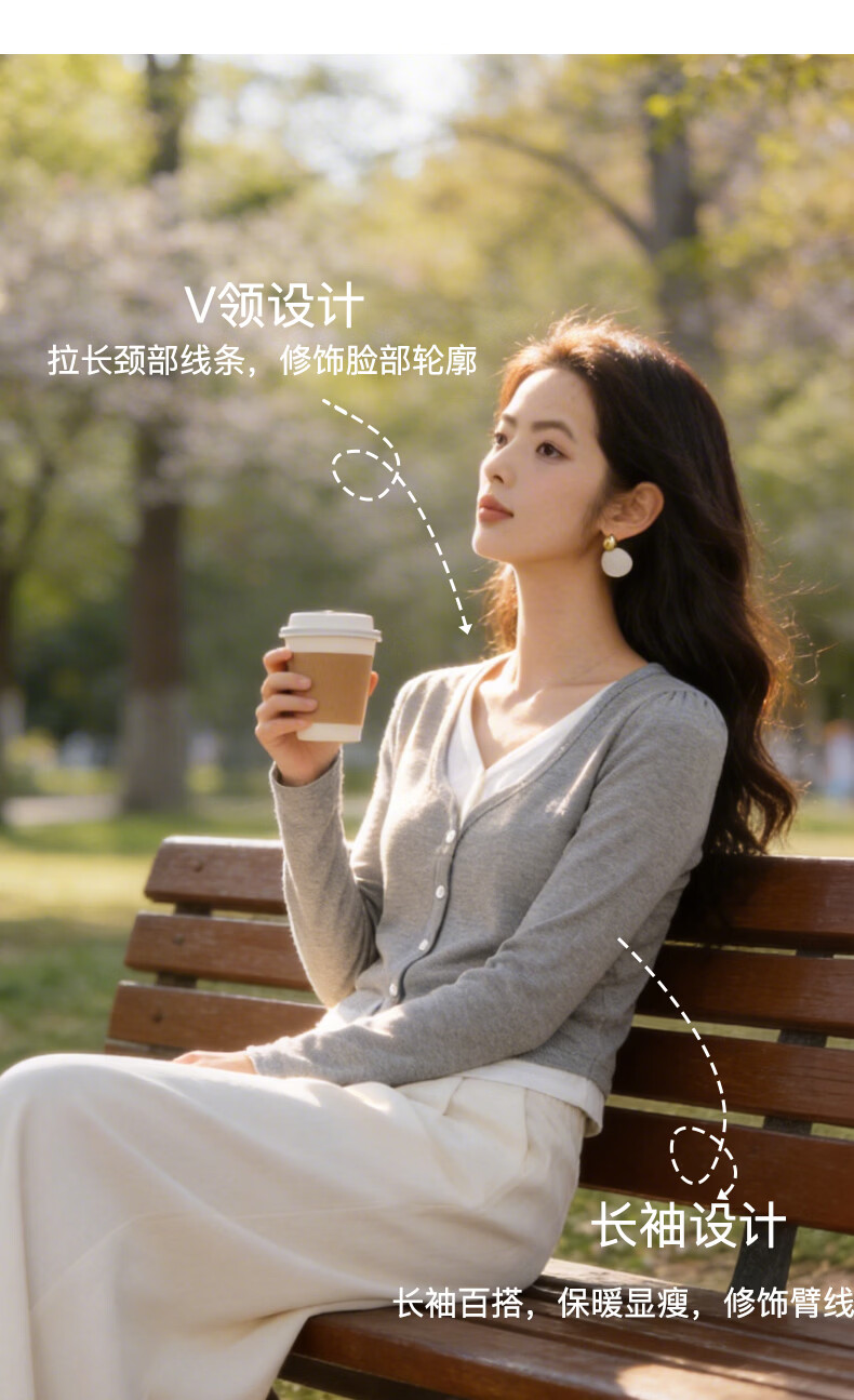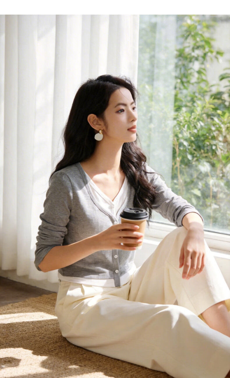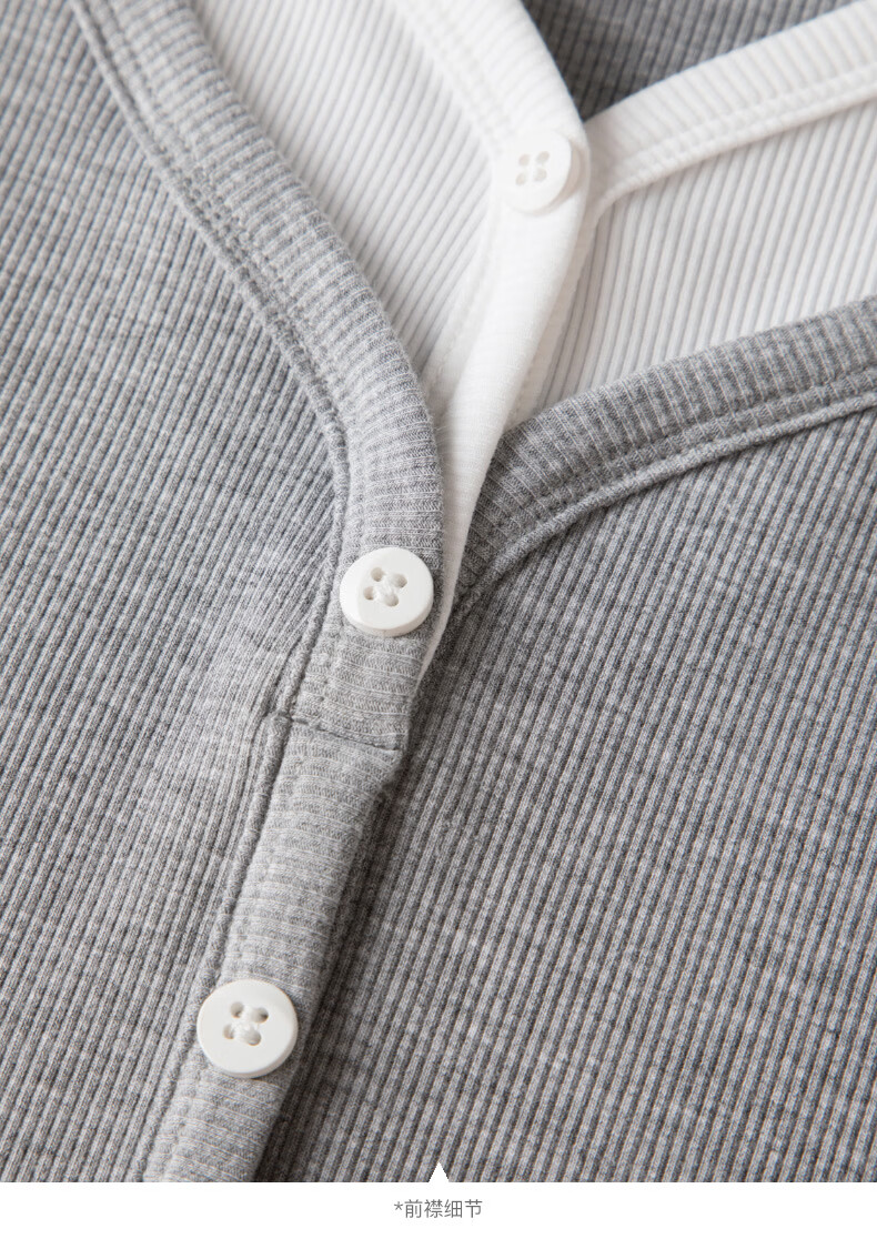 晚白【新品】2026春款经典撞色V领miu系穿搭棉料T恤百搭短款打底衫女 灰色 M