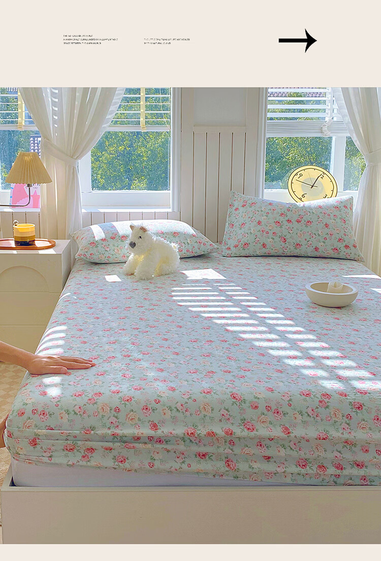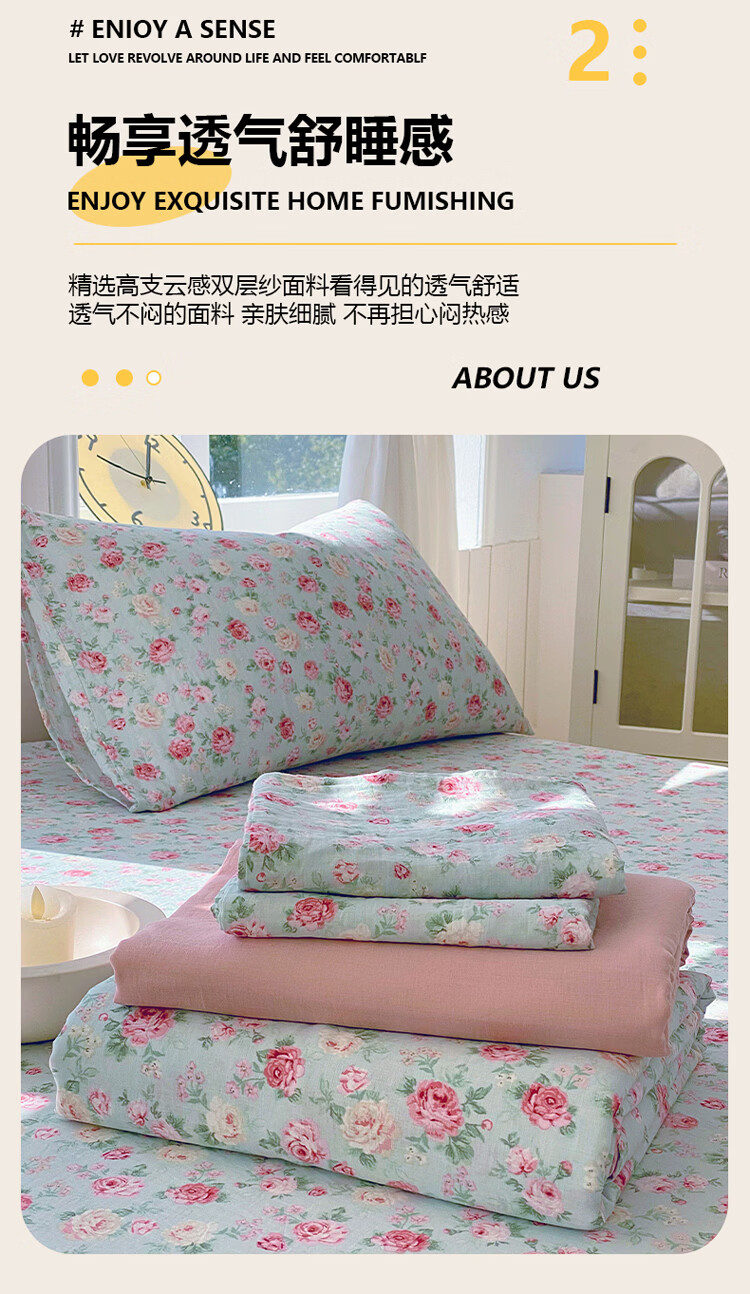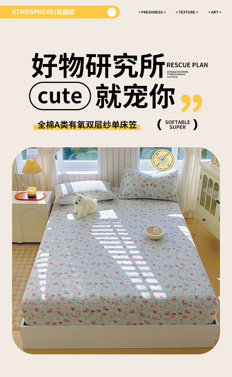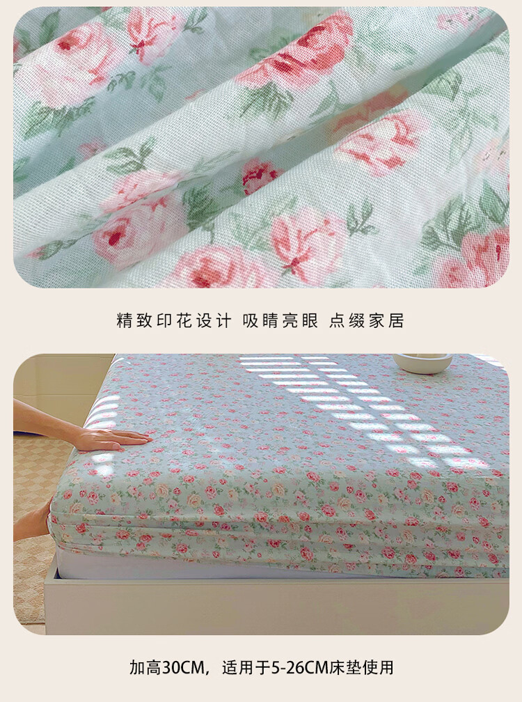 ROLAND LIVE全棉有氧双层纱印花单床笠A类小清新单双人床床笠单件宿舍床笠 CW 双层纱床笠-桂语兰庭 单床笠90*200cm+15cm