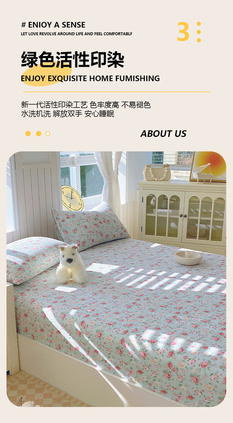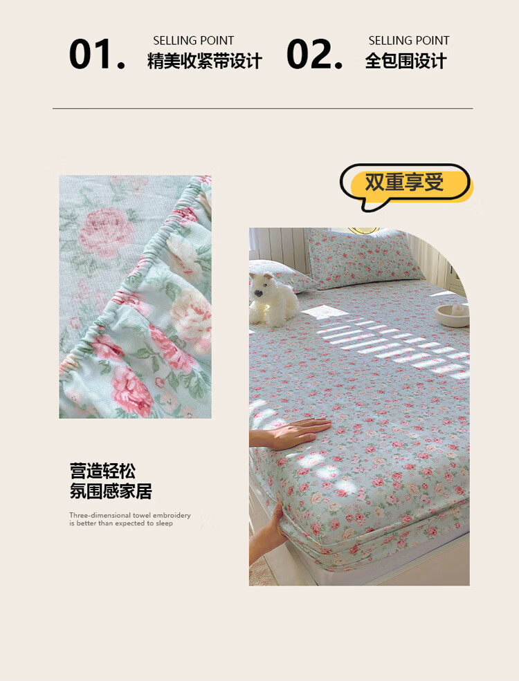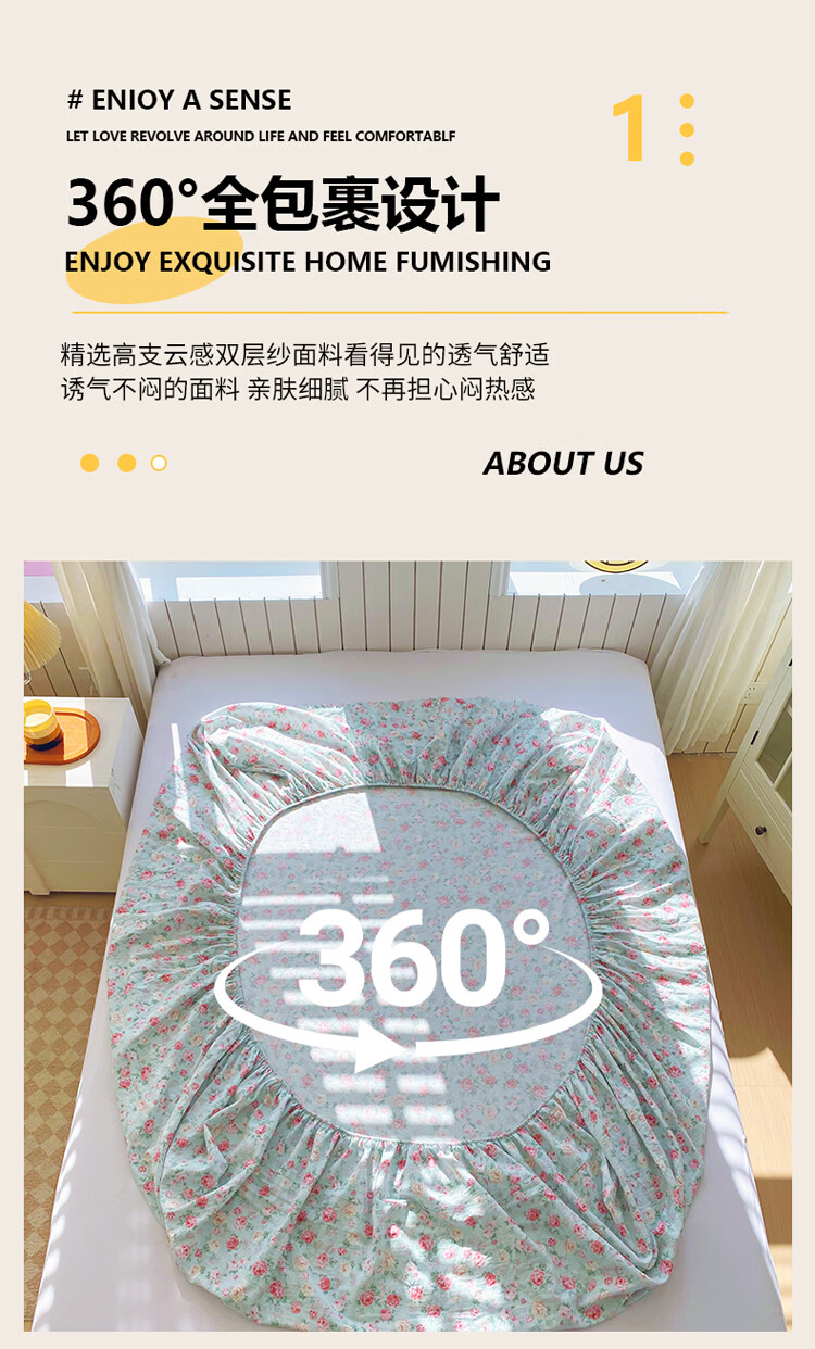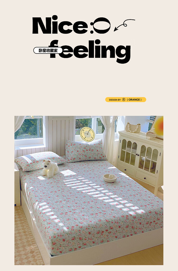 ROLAND LIVE全棉有氧双层纱印花单床笠A类小清新单双人床床笠单件宿舍床笠 CW 双层纱床笠-桂语兰庭 单床笠90*200cm+15cm