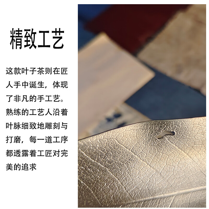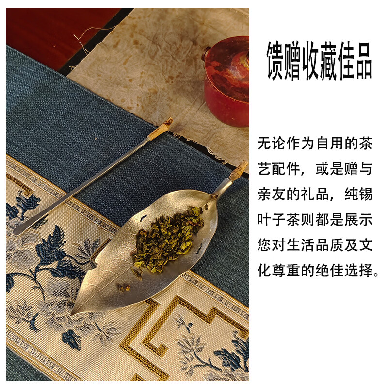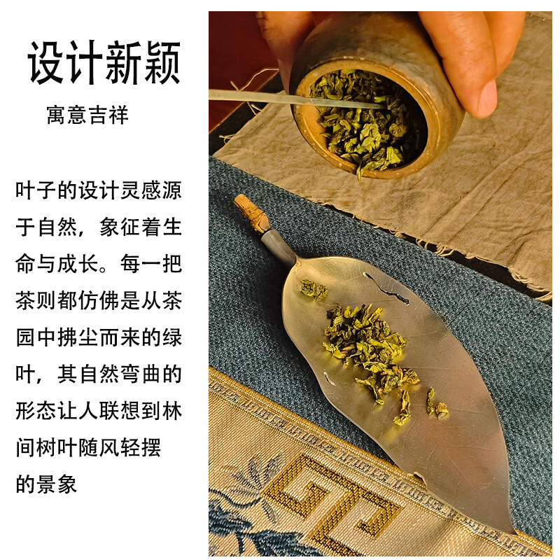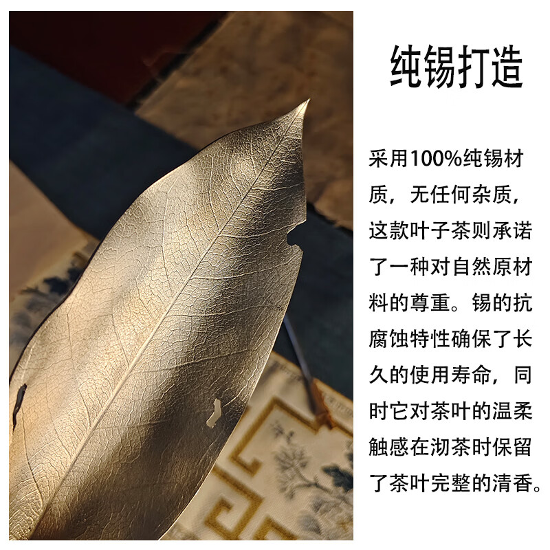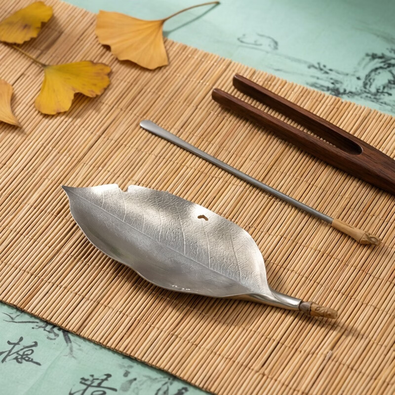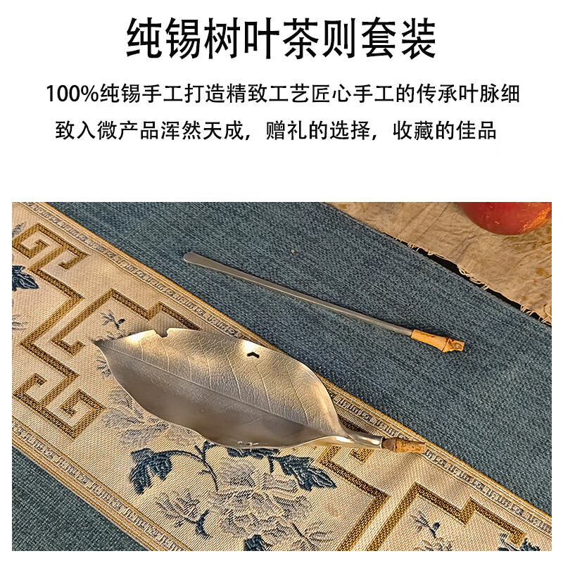 纯锡手工树叶造型锤纹茶则茶匙茶拨套组复古功夫茶具配件 纯锡叶子茶则茶拨套装