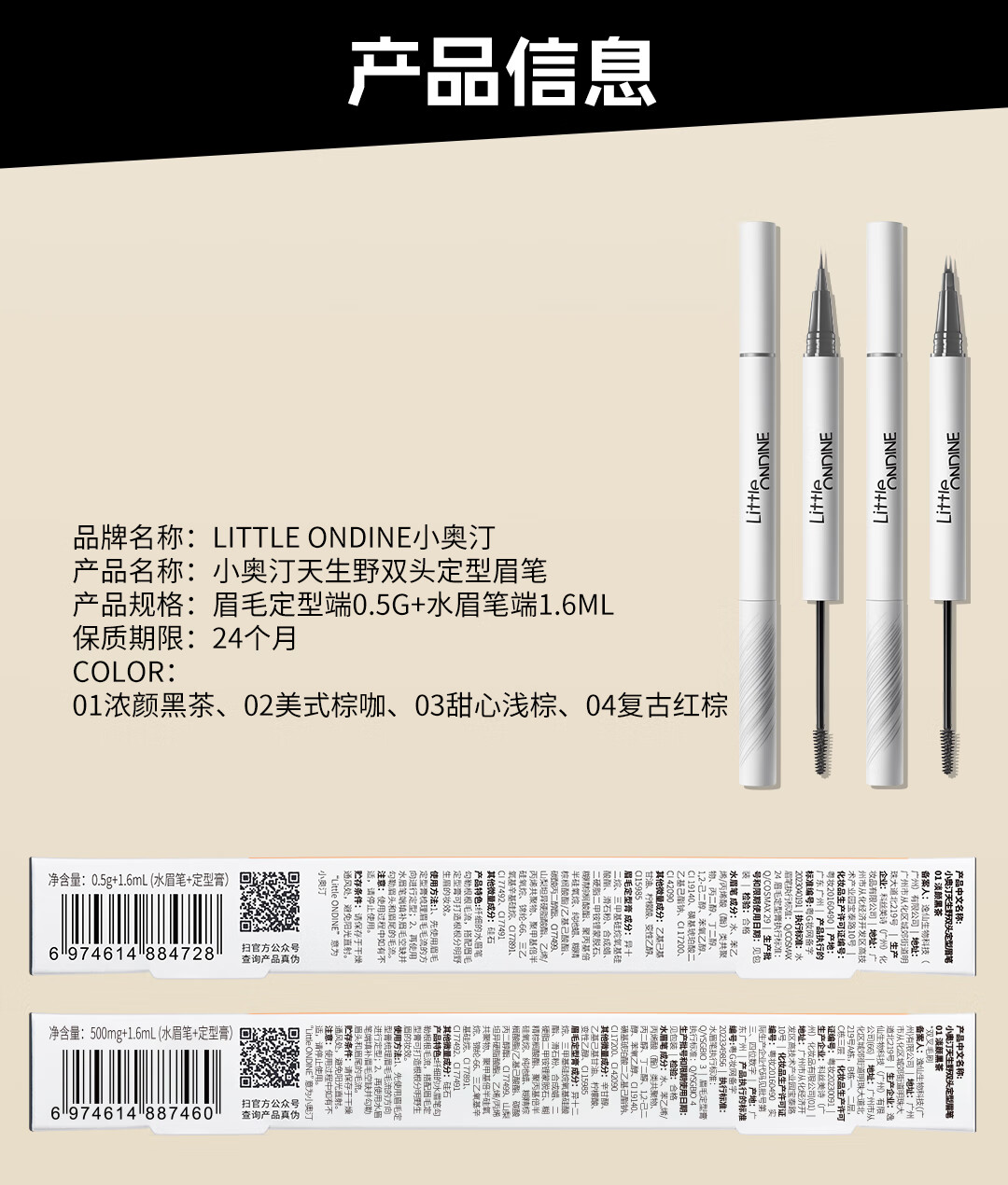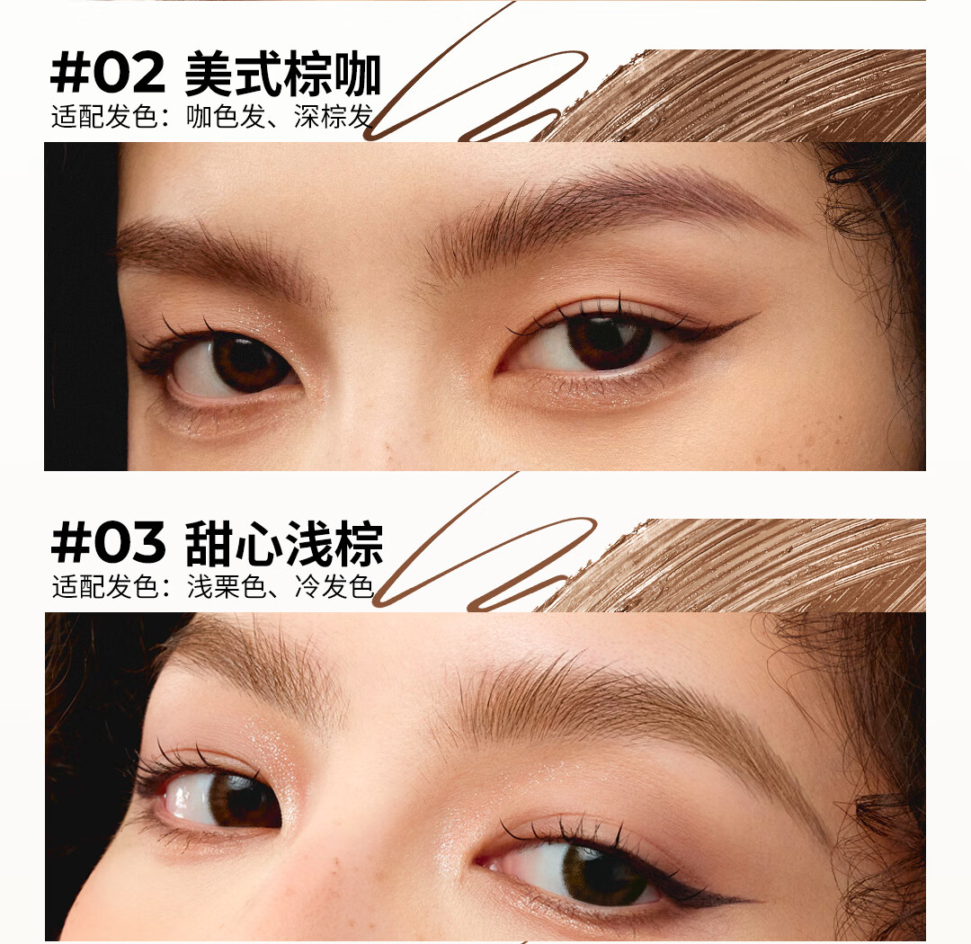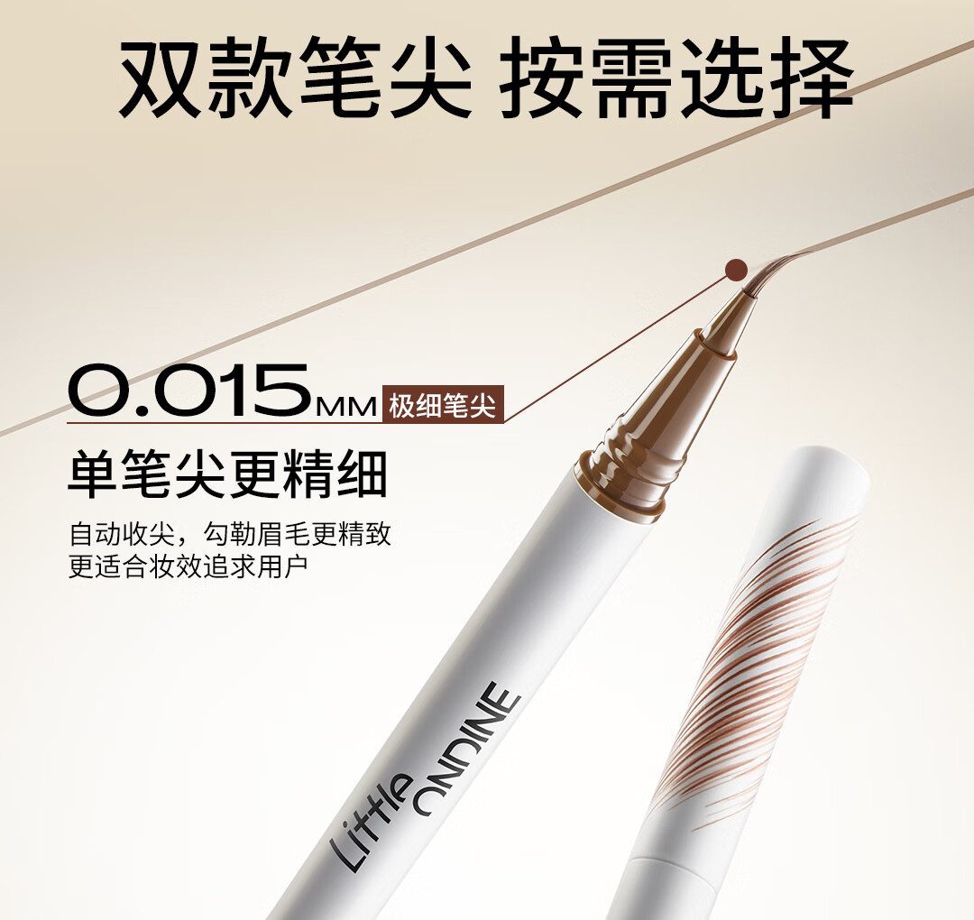 小奥汀(littleondine)天生野双头定型水眉笔 野生眉眼线胶笔持久防水防汗不晕 生日礼物 「02美式棕咖」极细双笔尖【赠湿巾】