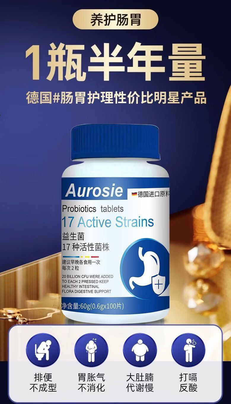 倍轻元德国进口原料益生菌500片肠胃胀气促消化便秘通便肠道腹泻口臭苦 100片*5瓶 【活动畅享中】