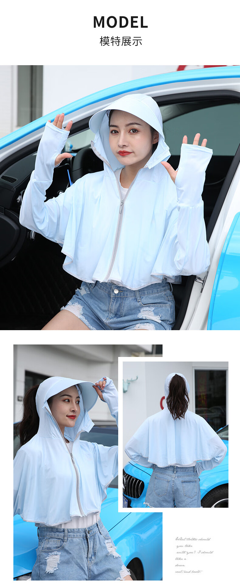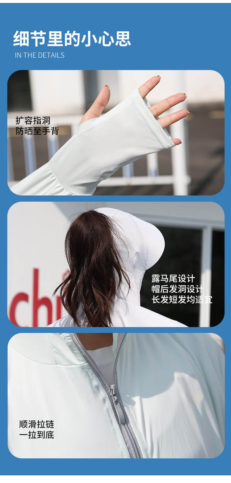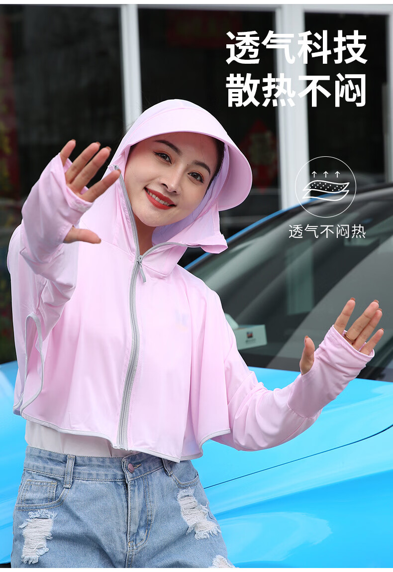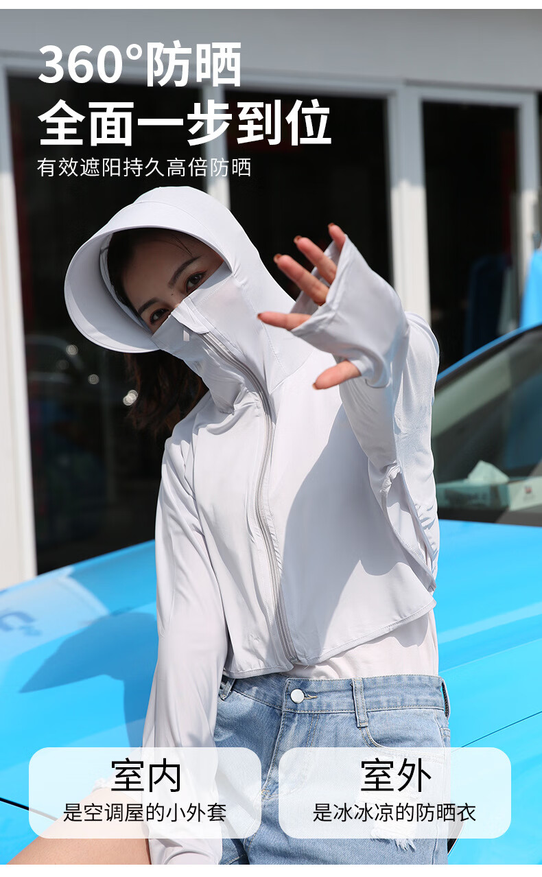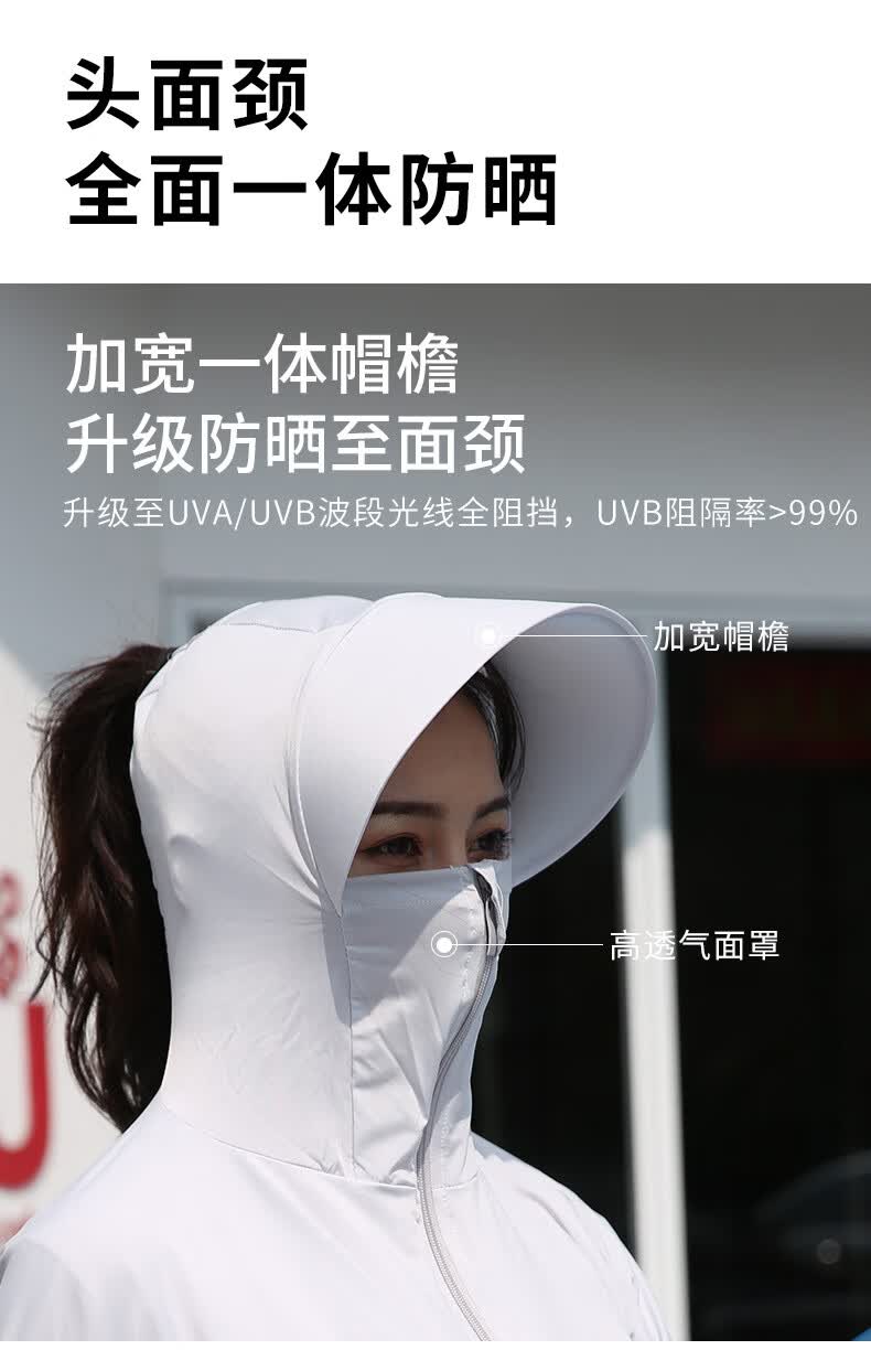 思织沁【精选】冰丝防晒衣户外出行防晒上衣夏天薄款透气凉感骑行遮阳衫 大帽檐天蓝色 均码 (70-155斤)