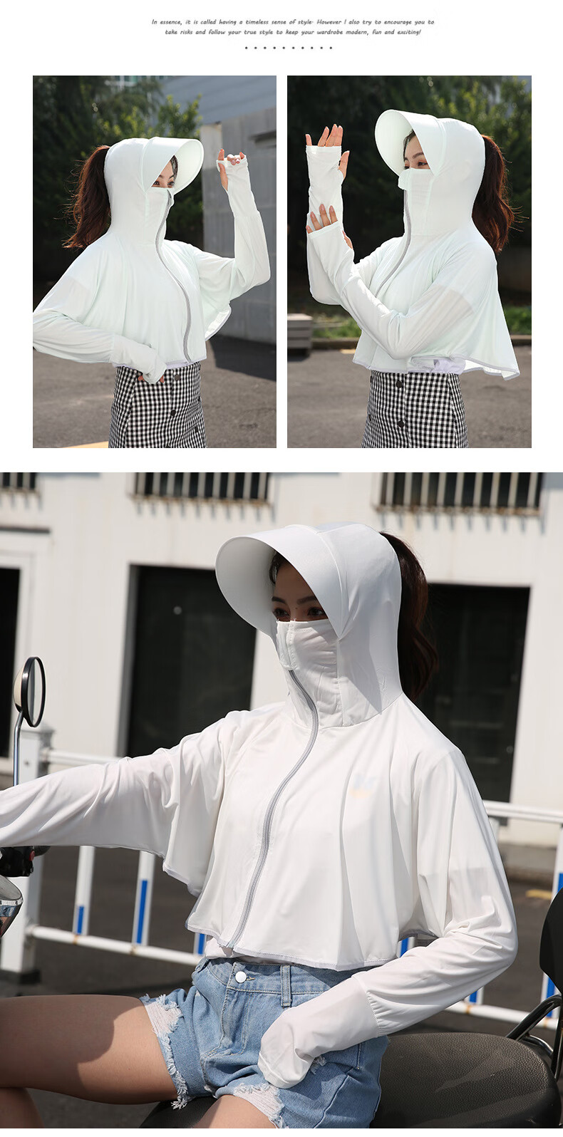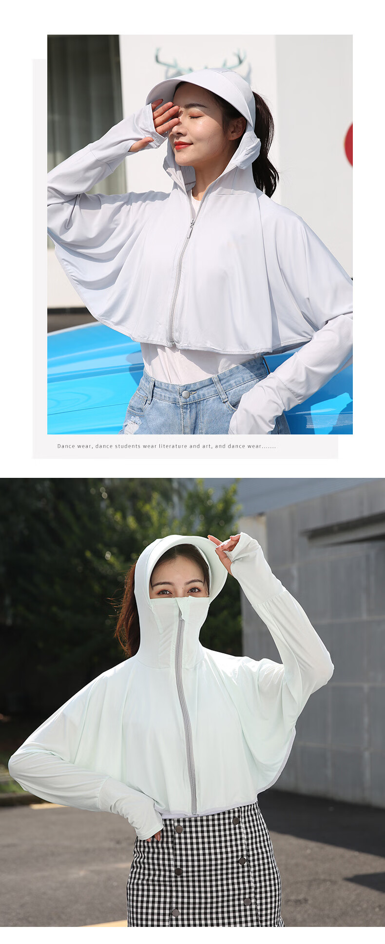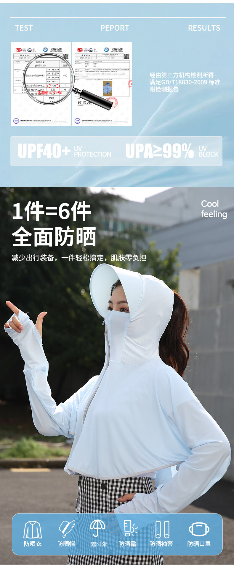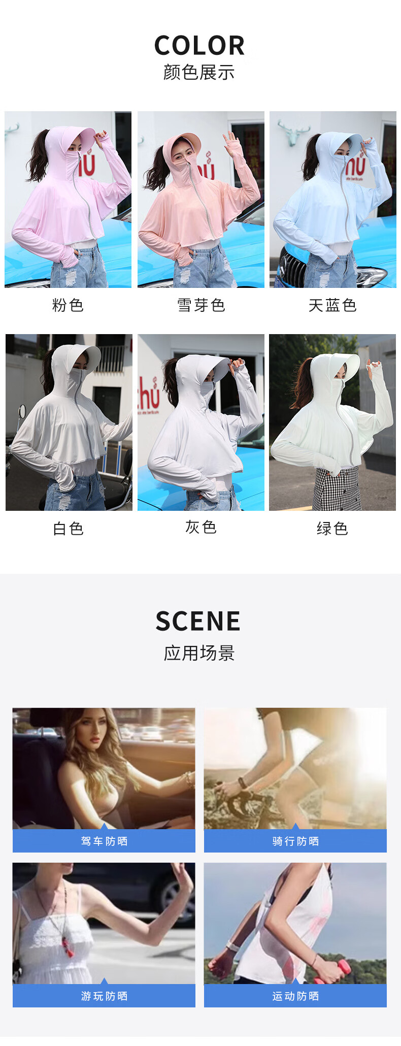 思织沁【精选】冰丝防晒衣户外出行防晒上衣夏天薄款透气凉感骑行遮阳衫 大帽檐天蓝色 均码 (70-155斤)
