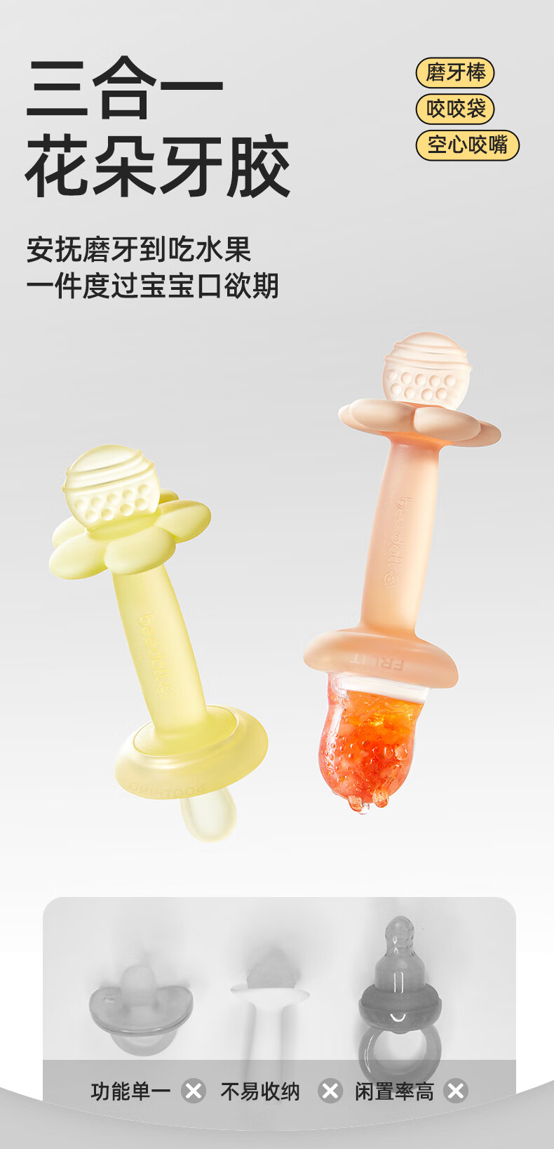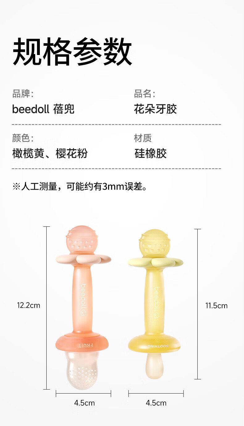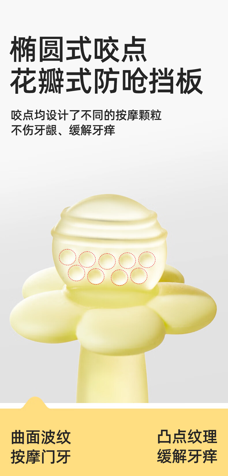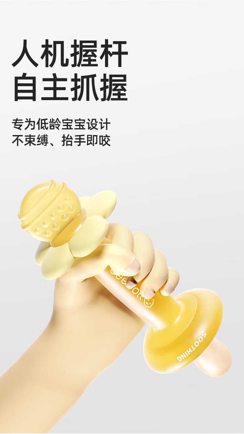 beedoll花朵牙胶婴儿磨牙棒0-1岁小月龄宝宝防吃手口欲期咬胶乐 橄榄黄