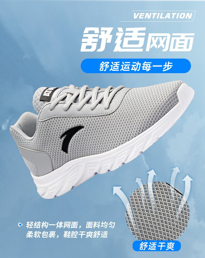 安踏男鞋运动鞋男2026春夏季新款网面父亲跑步鞋男士休闲学生旅游鞋子 【网面透气】基础黑 42
