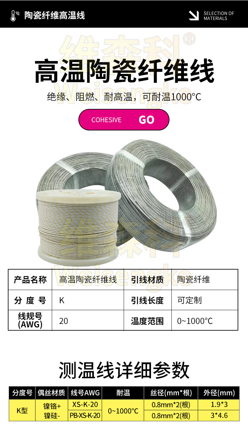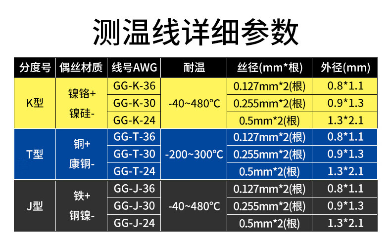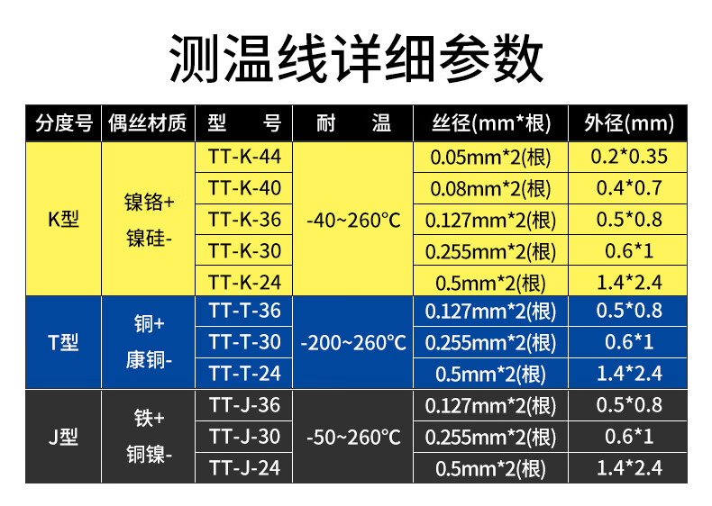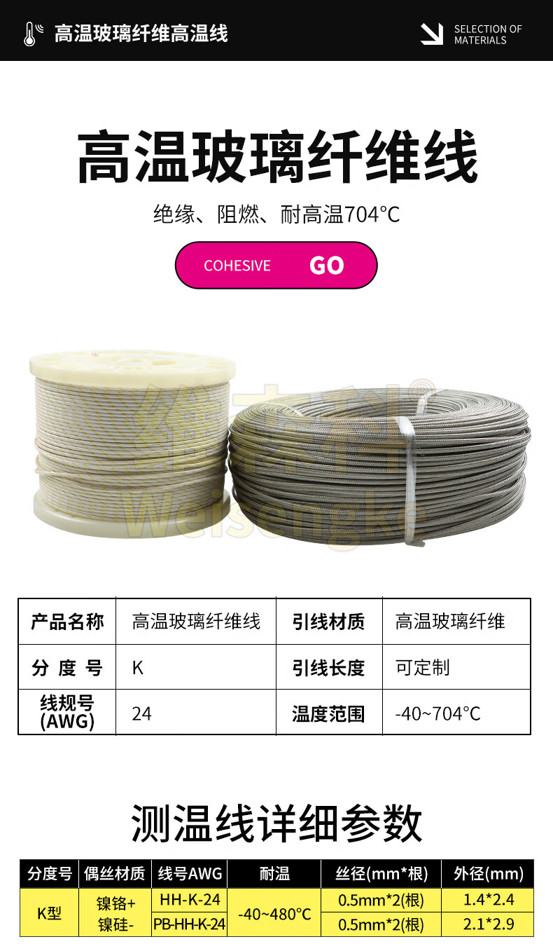 维森科高精度K型热电偶测温线温度传感器补偿导线焊点贴片TT-K-30回流焊 【工业级】TT-K-36/100米