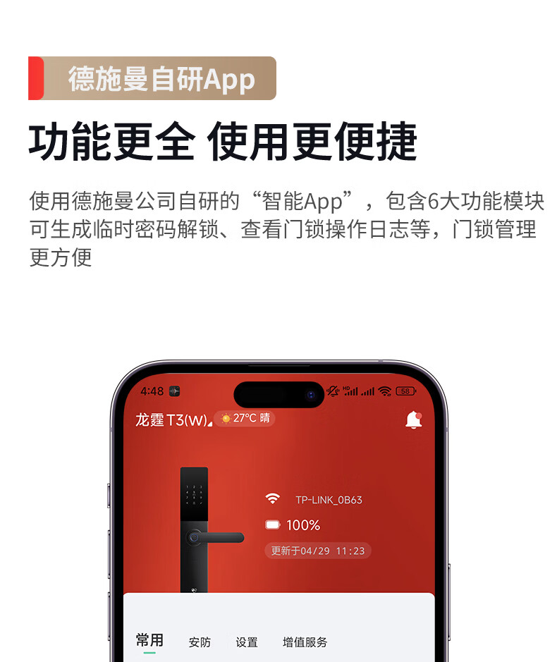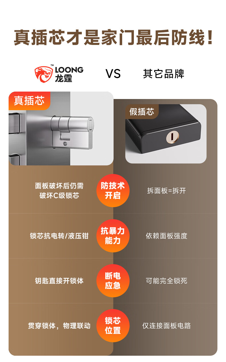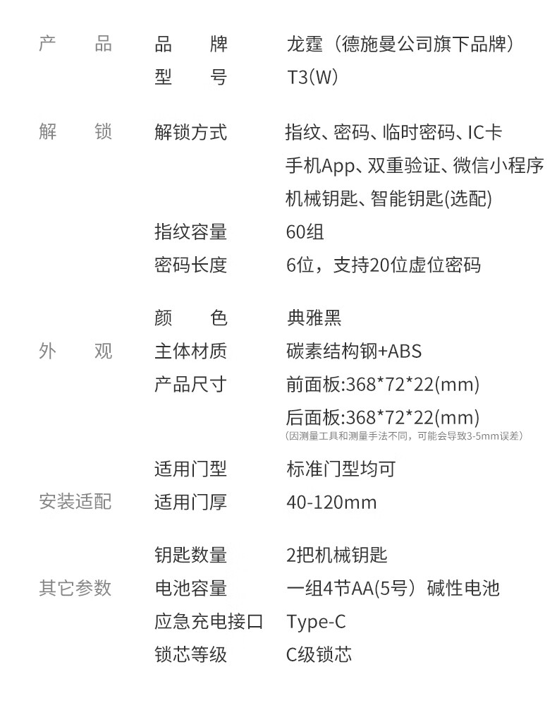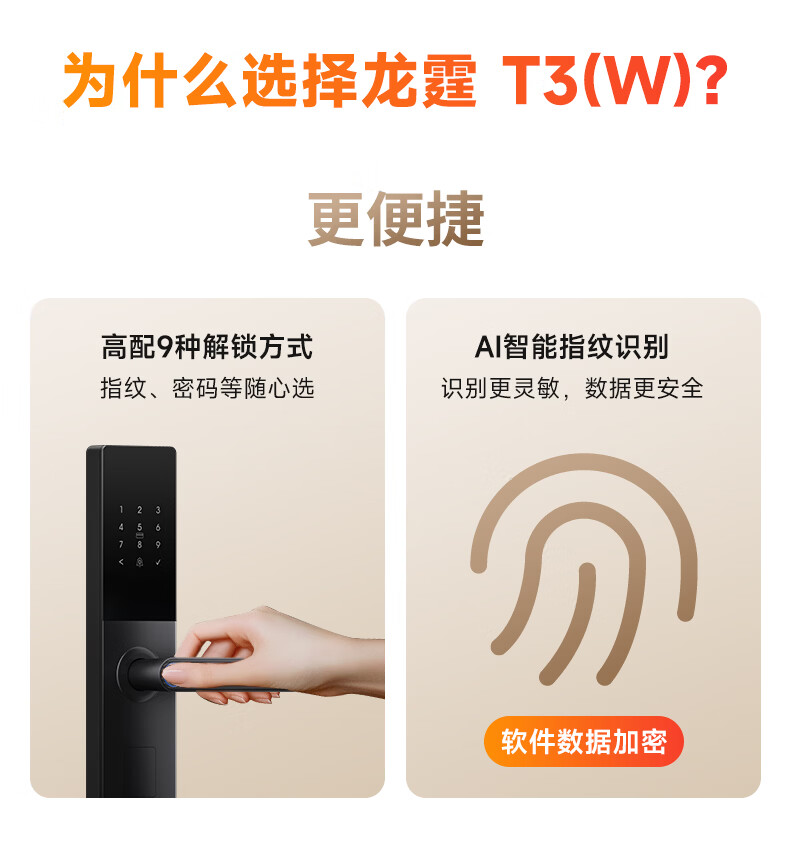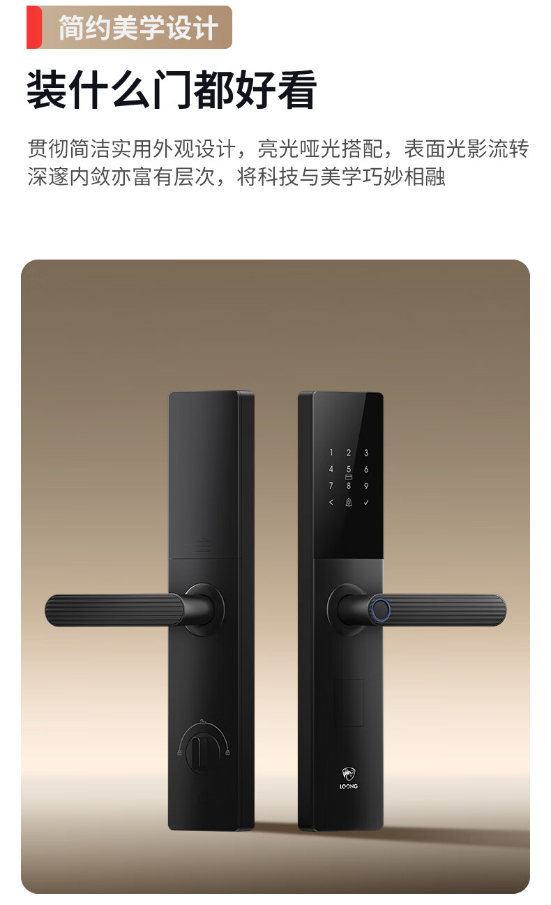 龙霆智能门锁电子锁指纹锁密码锁执手款防盗把手门锁T3/T3W T3