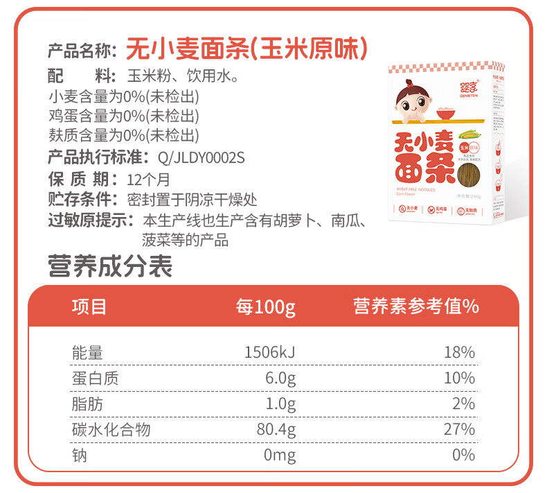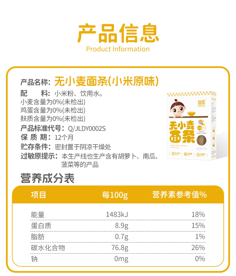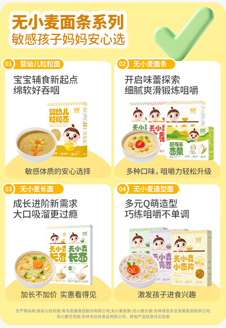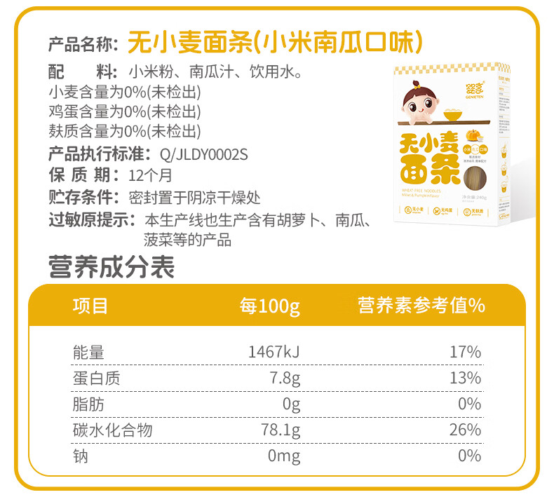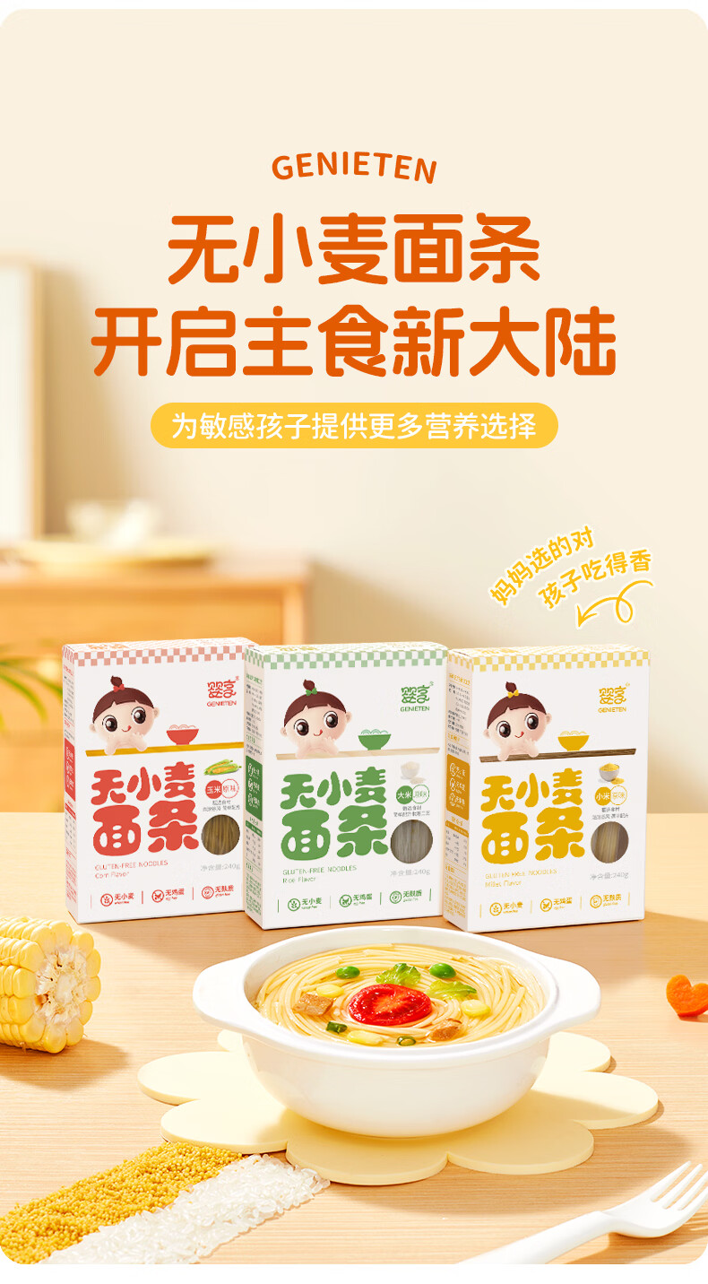 婴享儿童面条无小麦无麸质挂面速食早餐敏宝食品送婴幼儿宝宝辅食食谱