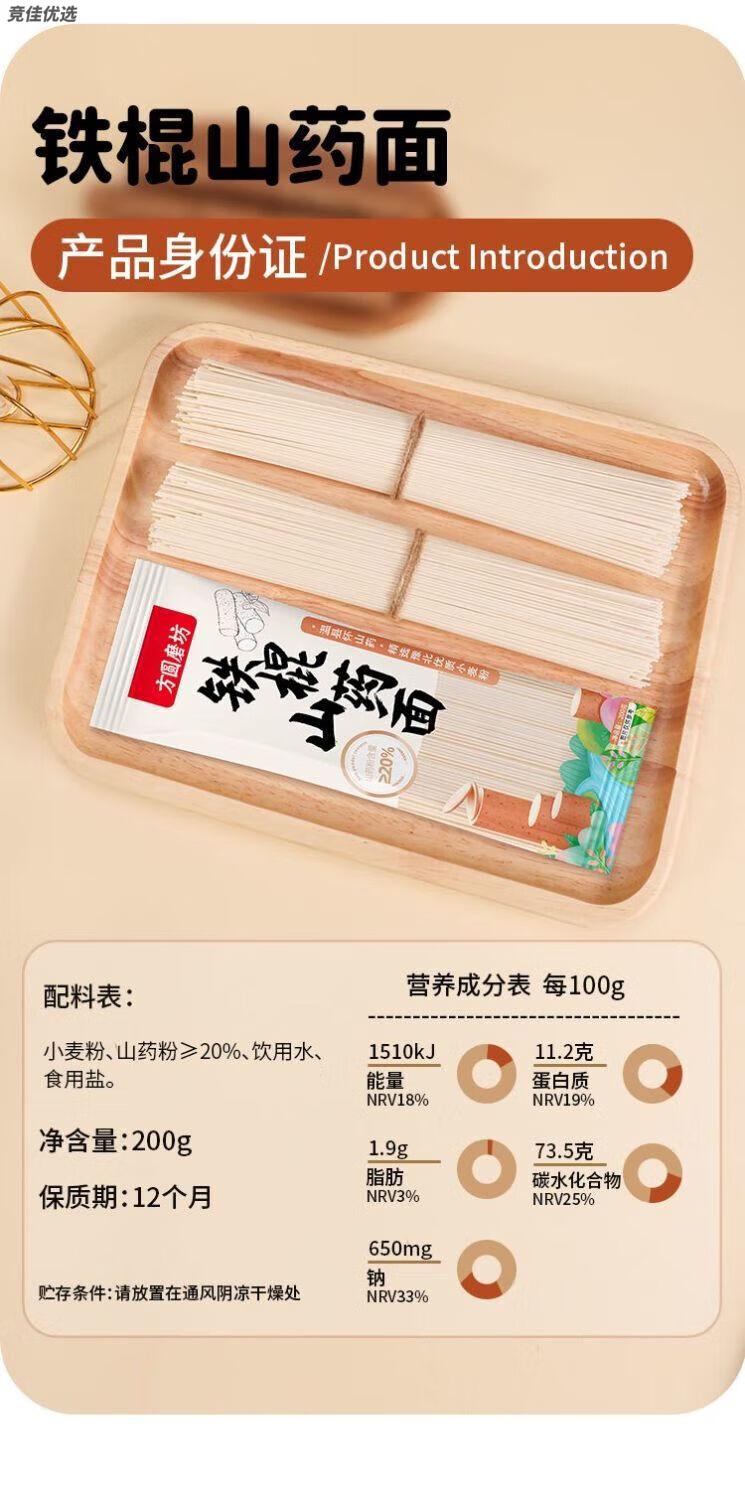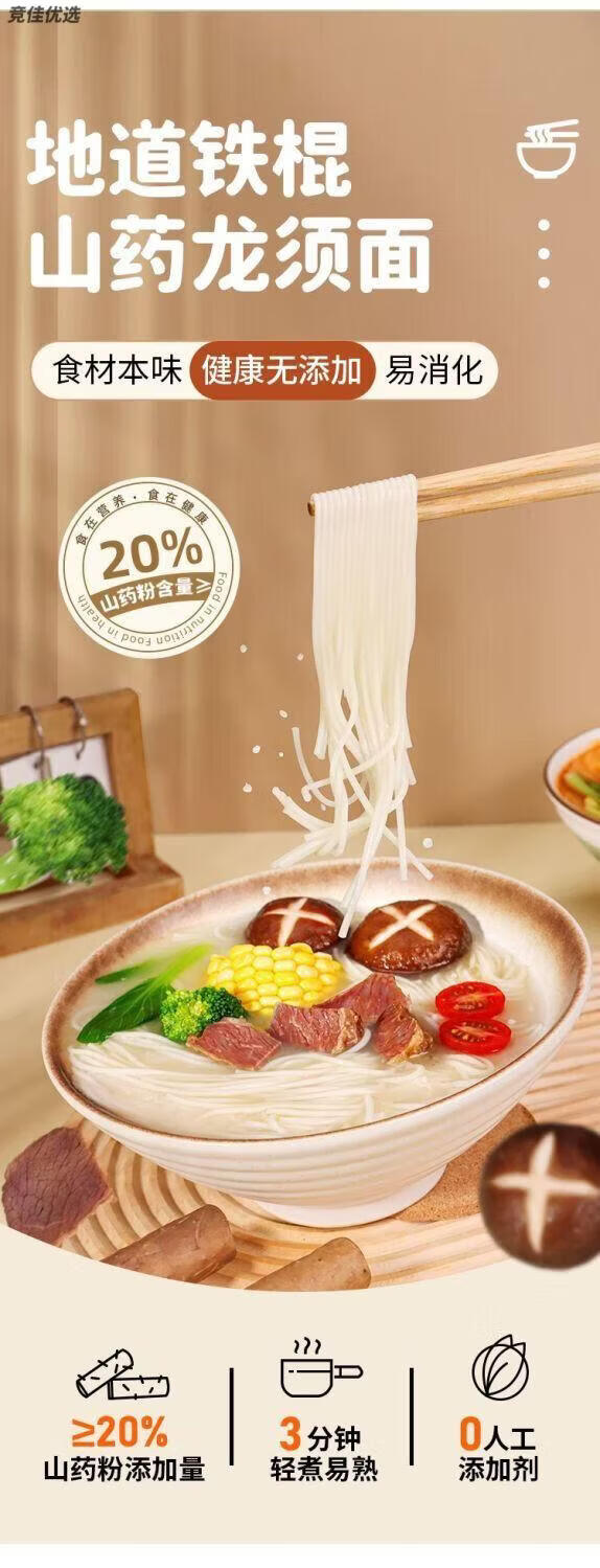 山药面条铁棍山药面剂实惠挂面拉面条代餐拌面老人营养 铁棍山药龙须面200g*1袋