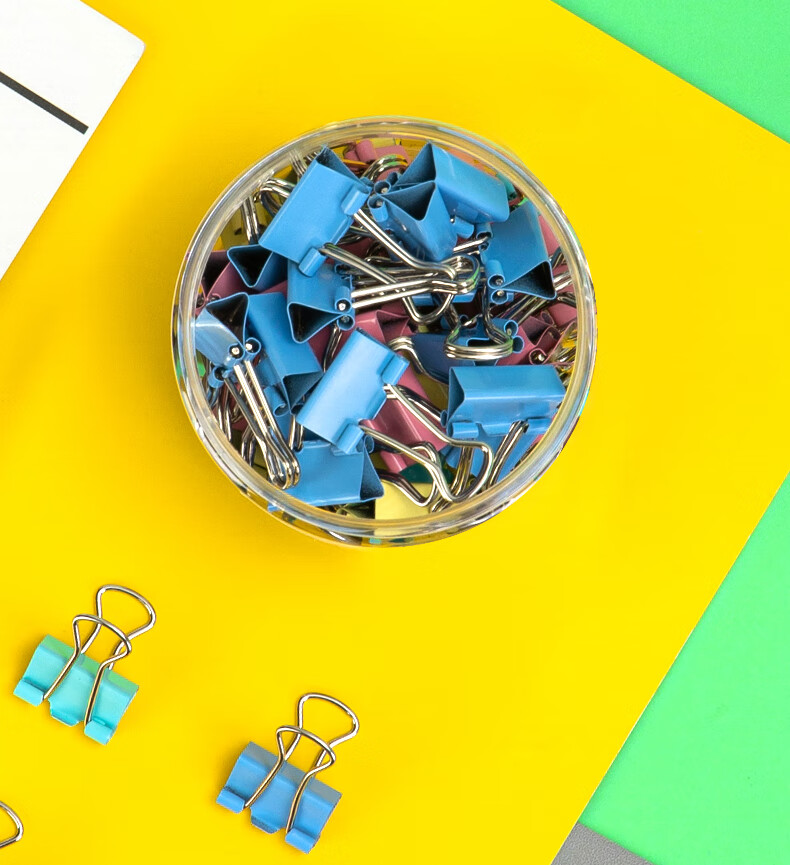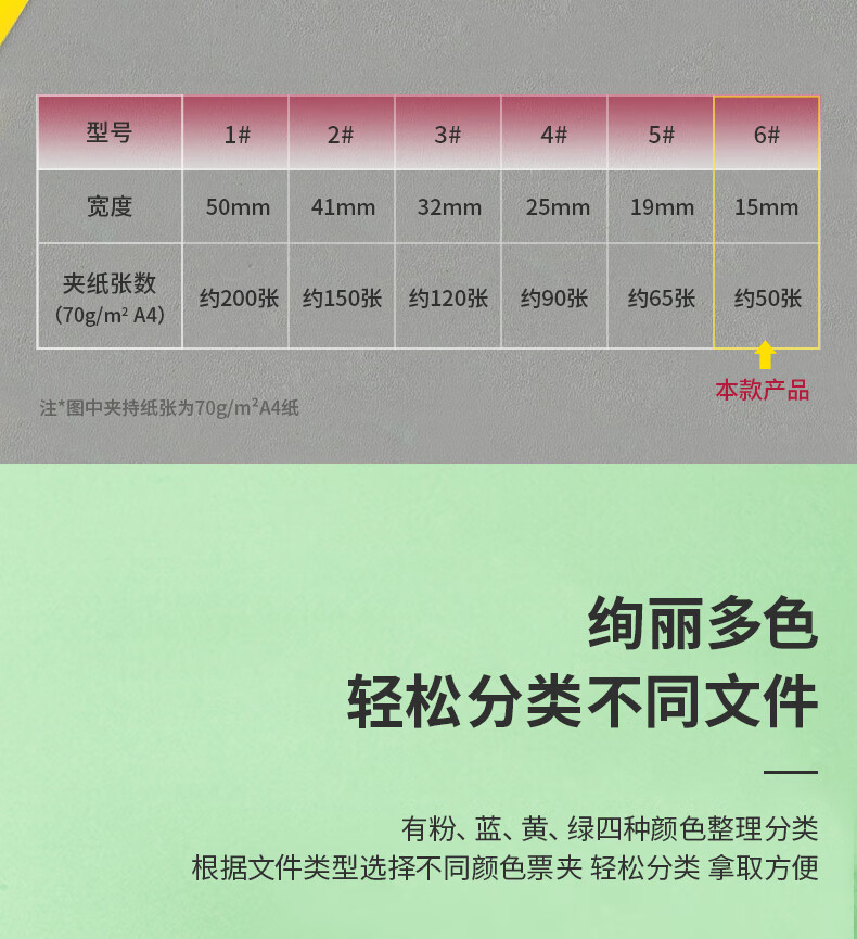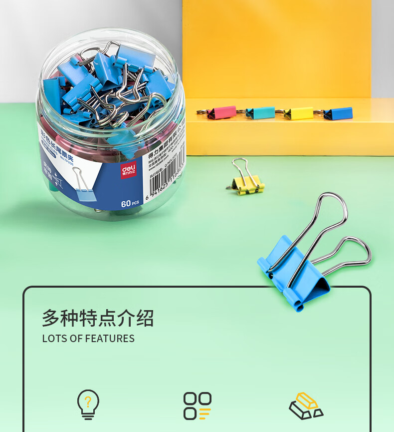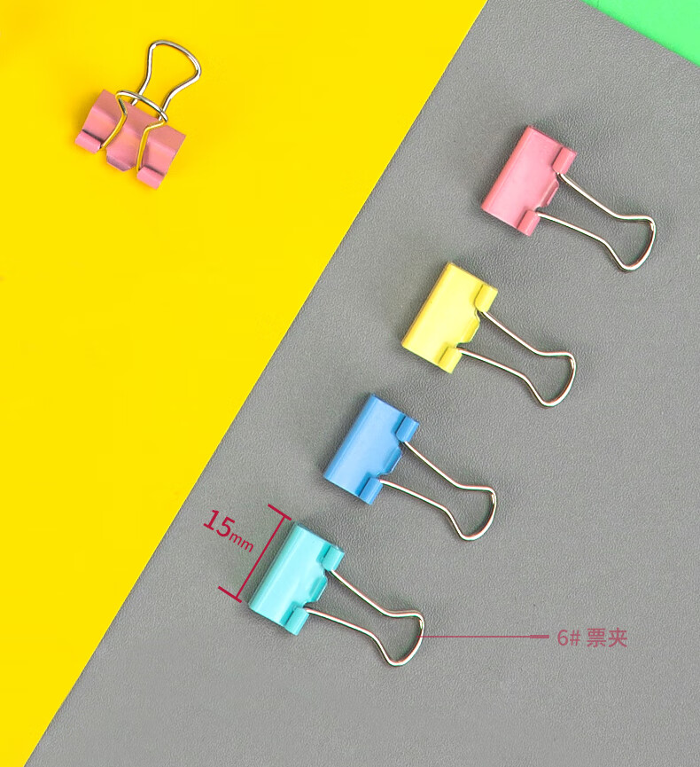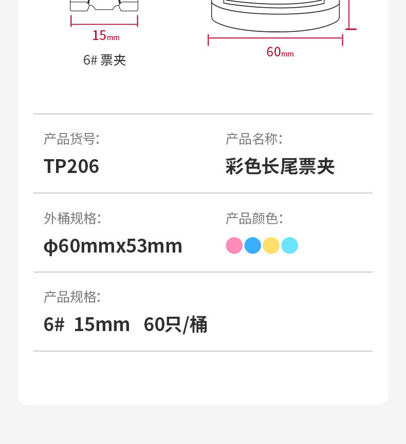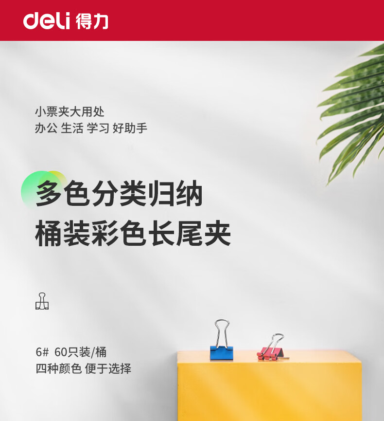 得力(deli)60只15mm彩色长尾夹票夹 6#小号金属燕尾夹票据文件夹子 办公用品 60只/筒 TP206