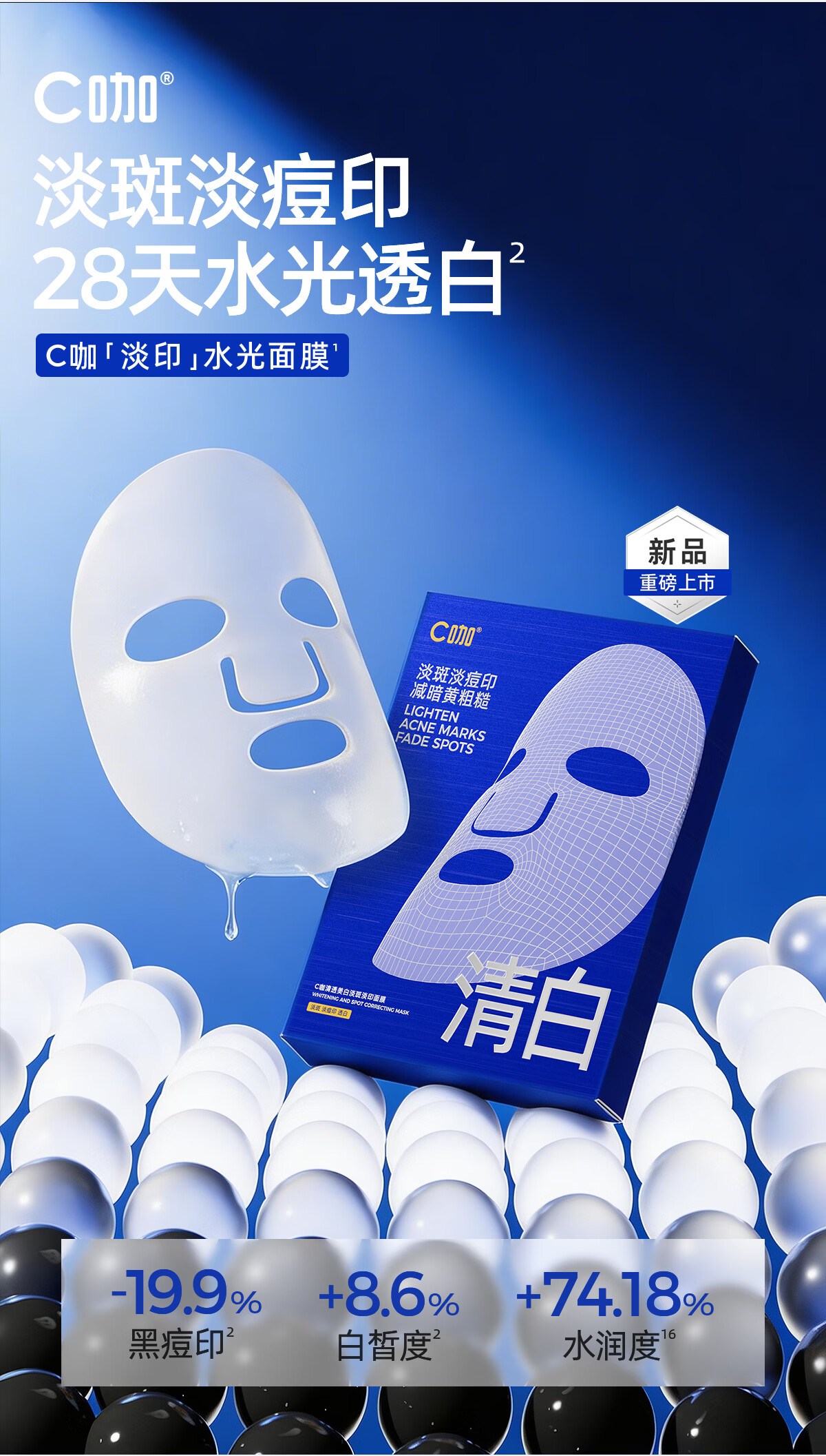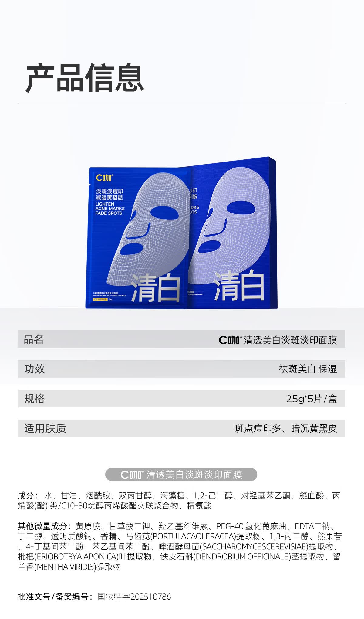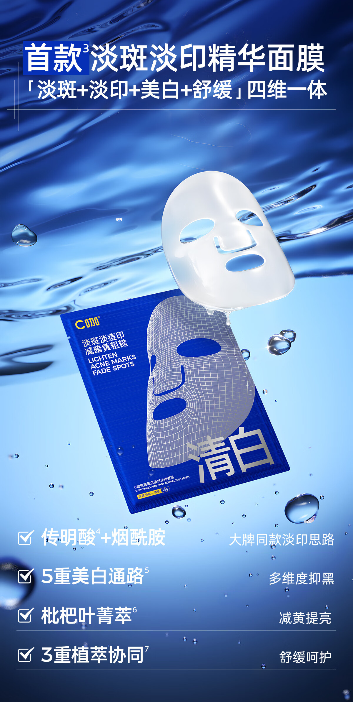 C咖【王一博同款】C咖清透面膜美白淡斑淡印精华去黄提亮水光面膜 【尝鲜体验】拍5片到手10片