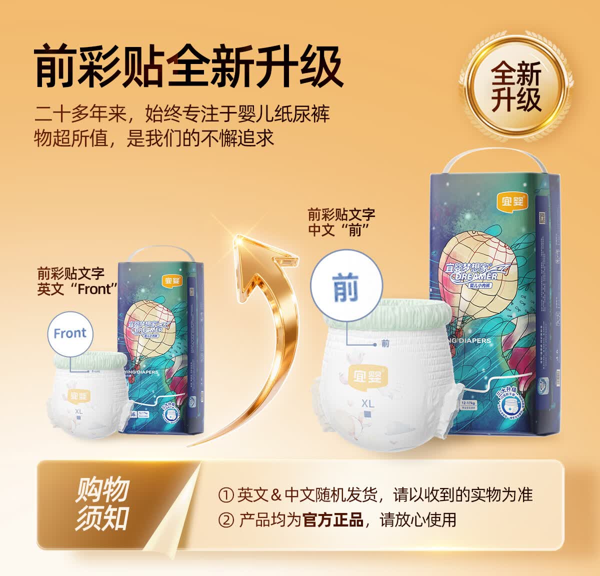 盛夏光年哇趣系列婴儿纸尿裤尿不湿超薄透气尿裤舒爽升级安睡裤5D立体导流 【L码】纸尿裤试用装4片(9-14kg)
