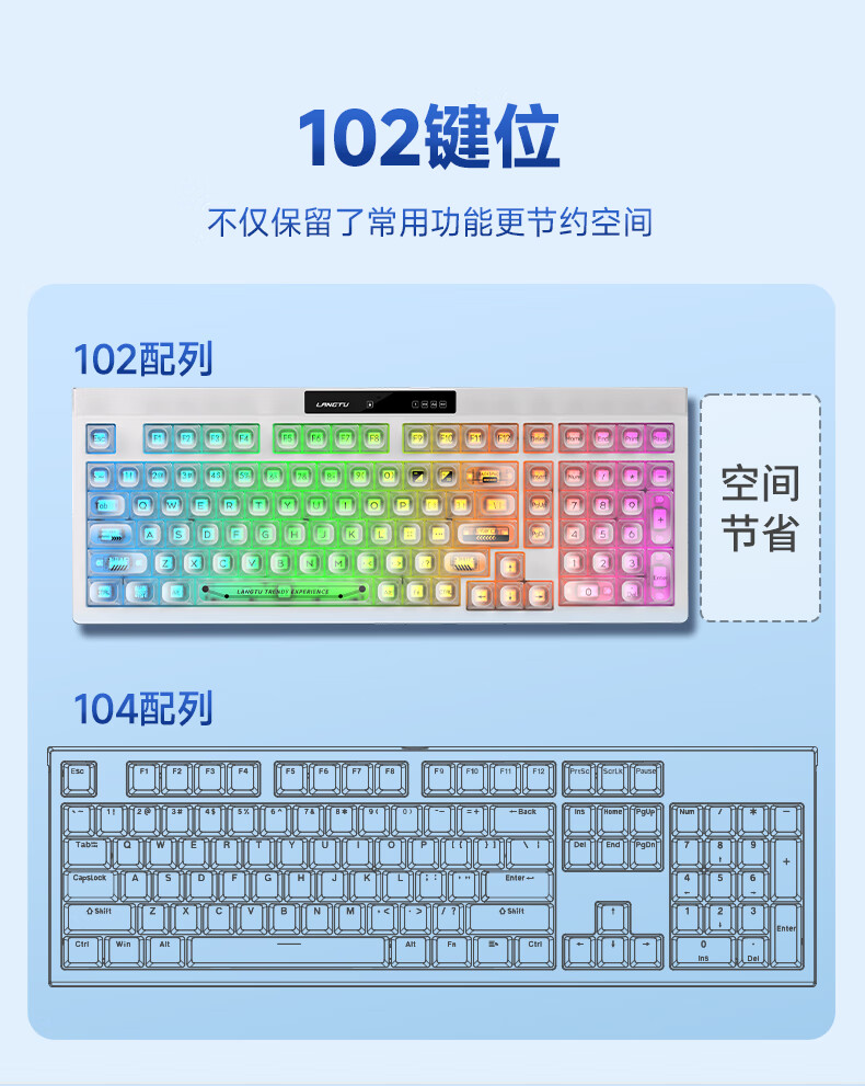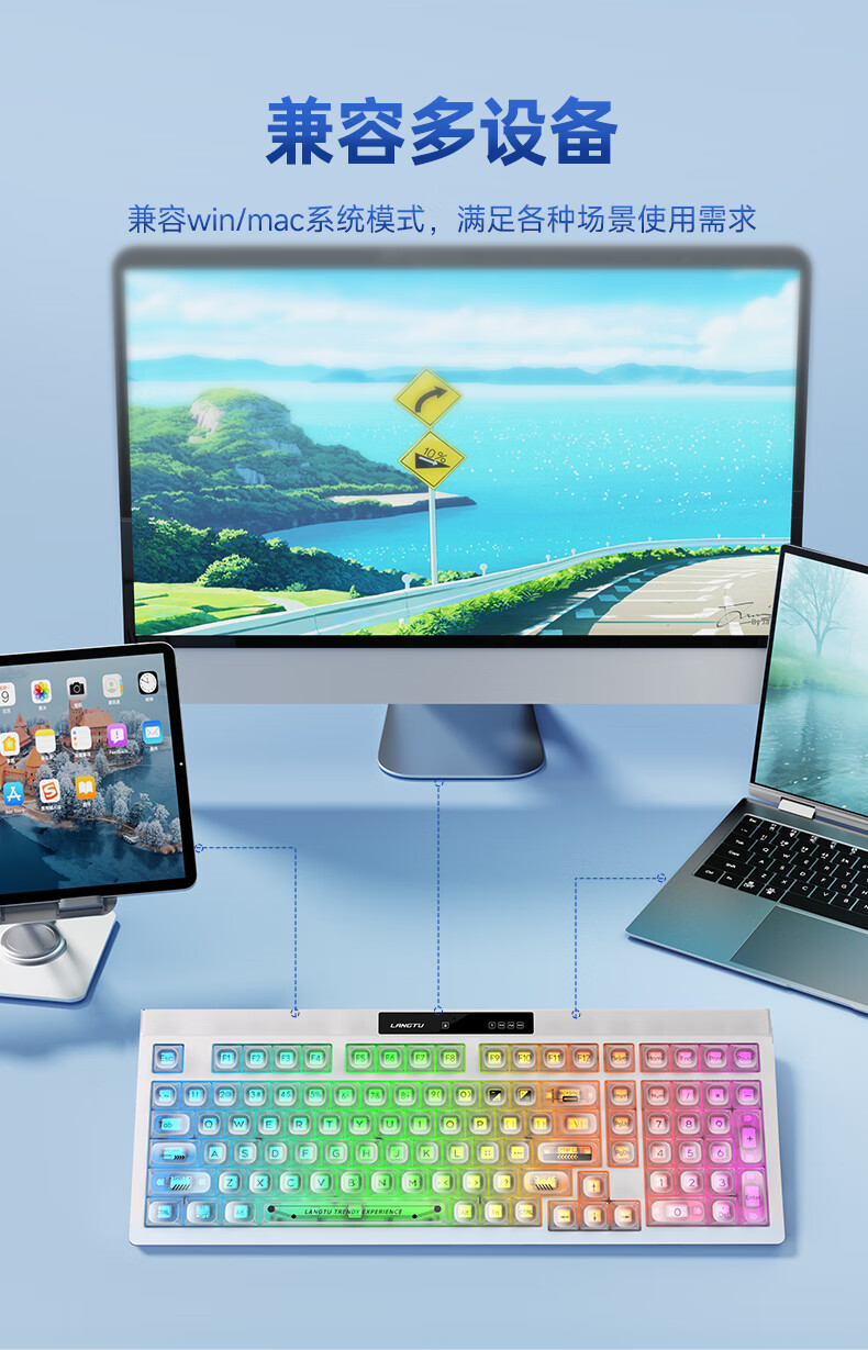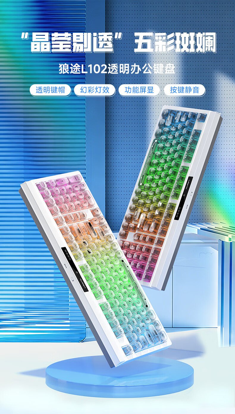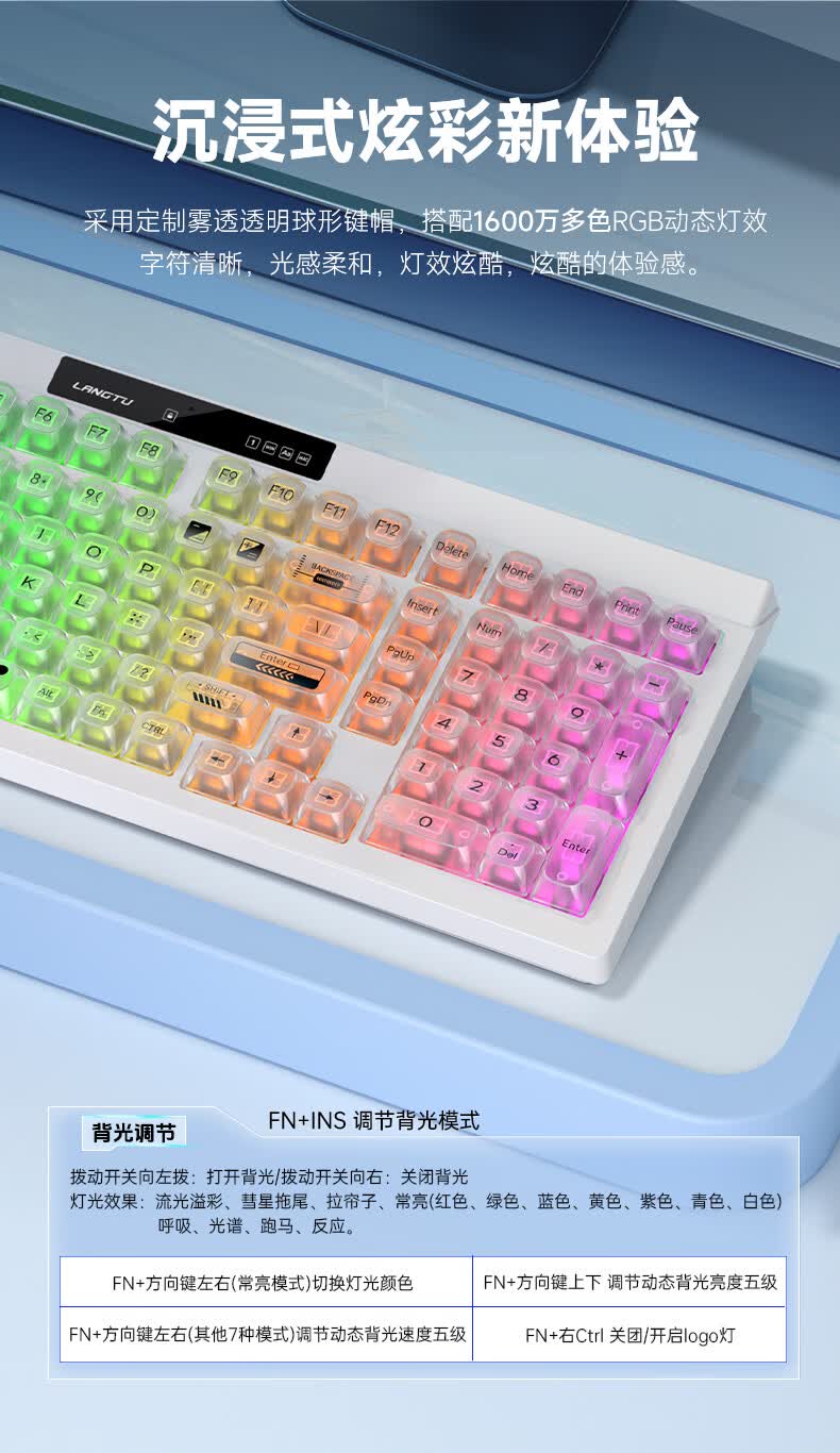狼途L102机械手感键盘蓝牙无线有线三模薄膜静音键盘鼠标RGB办公游戏防尘防溅水102键盘支持Mac L102云璃【有线版】