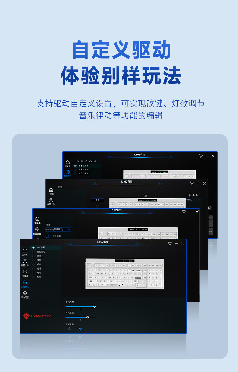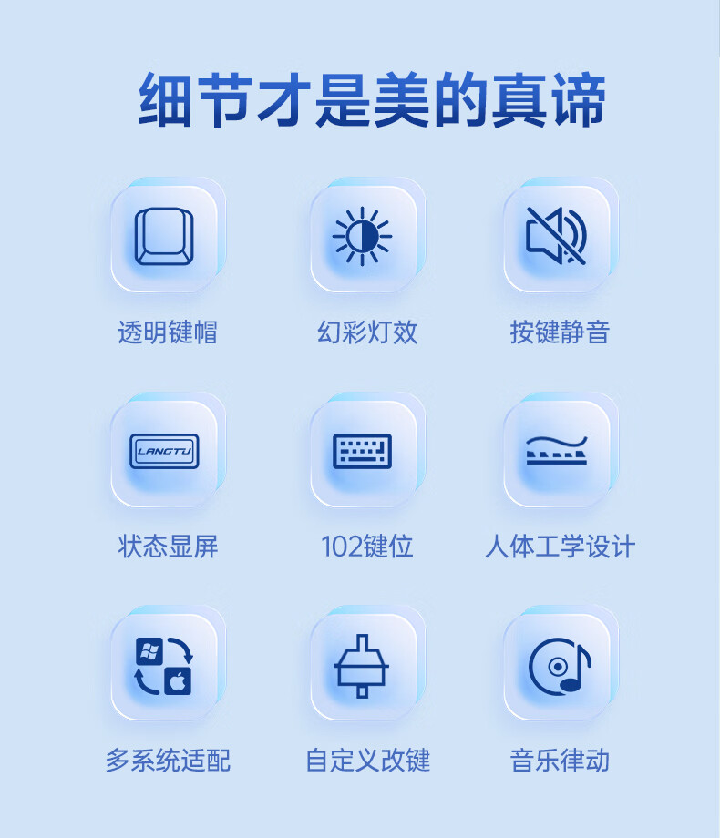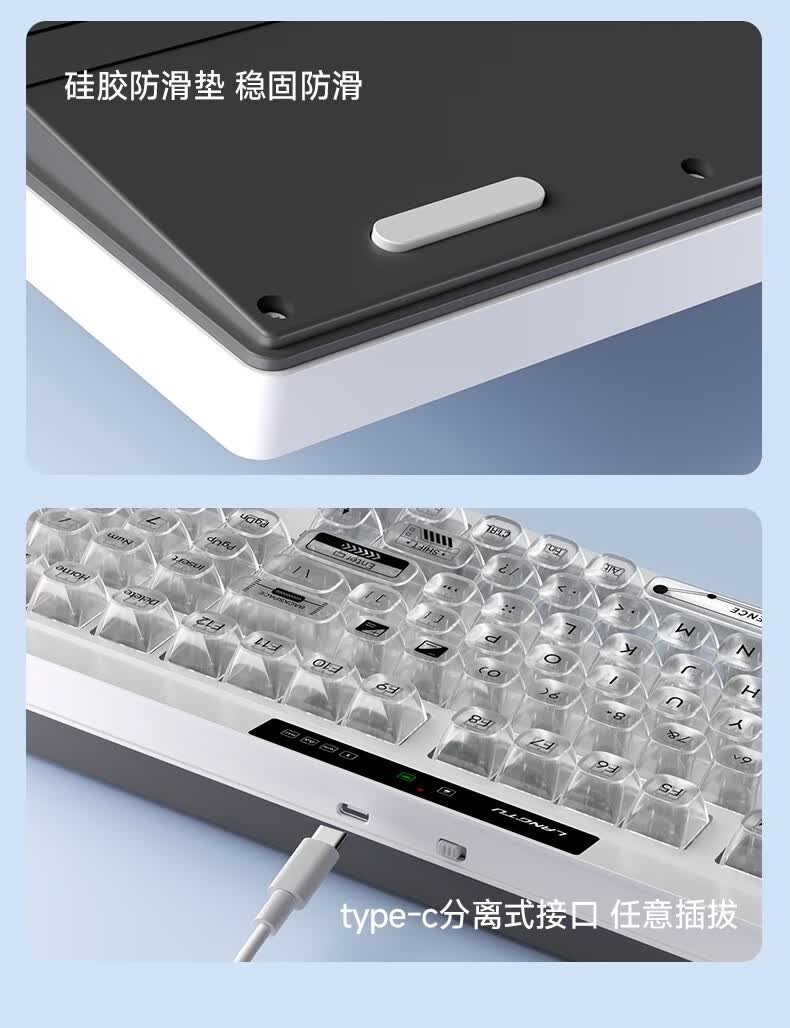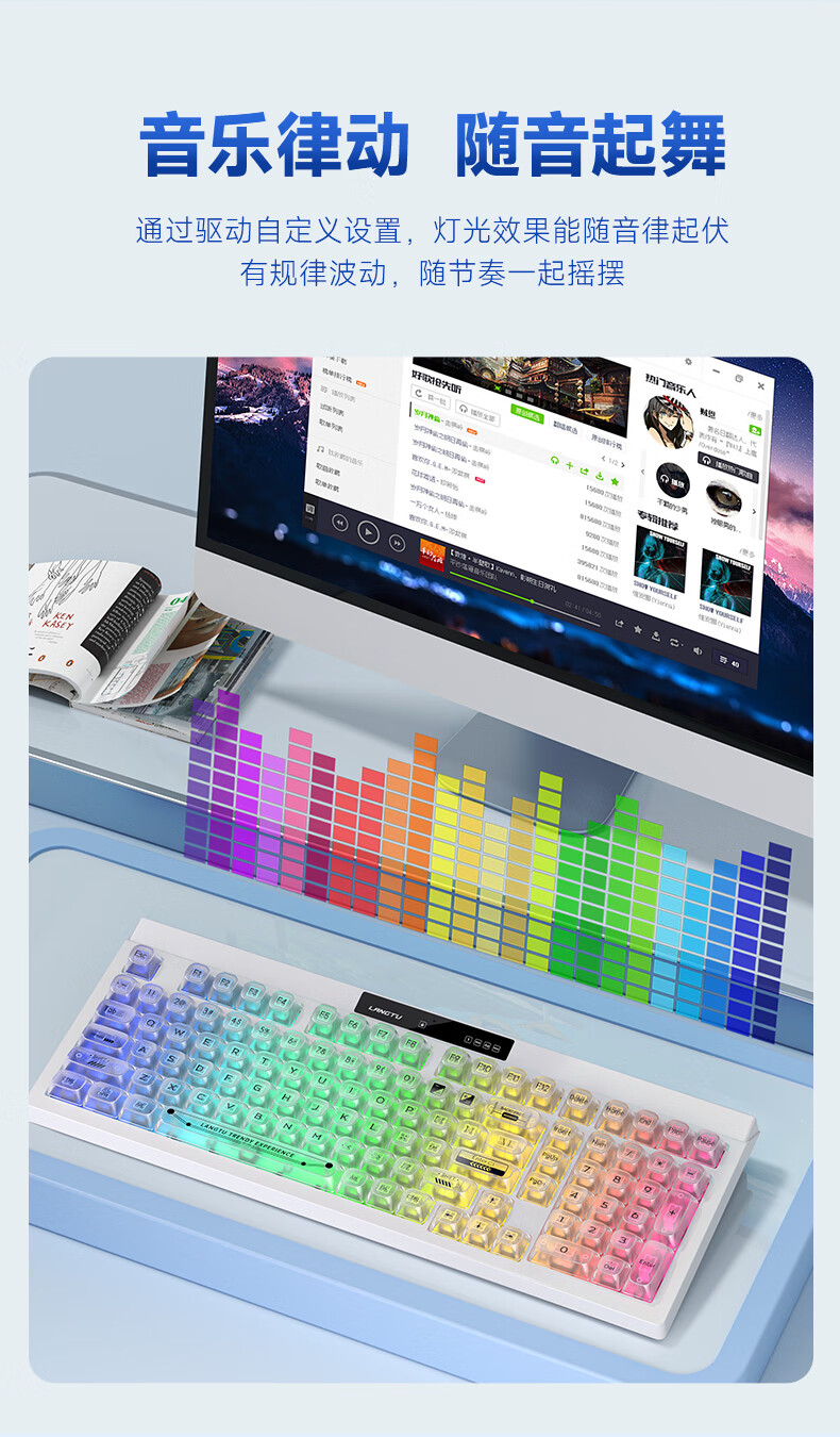 狼途L102机械手感键盘蓝牙无线有线三模薄膜静音键盘鼠标RGB办公游戏防尘防溅水102键盘支持Mac L102云璃【有线版】