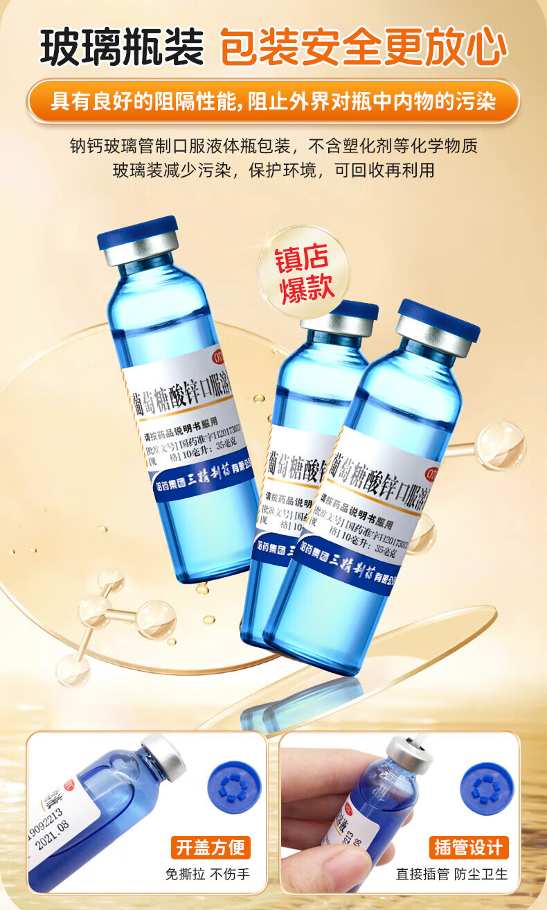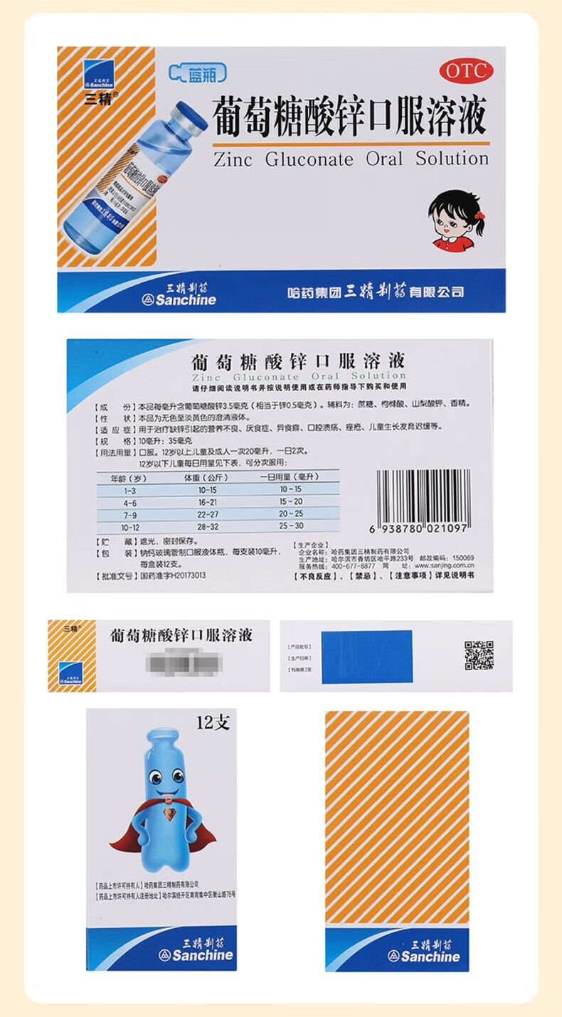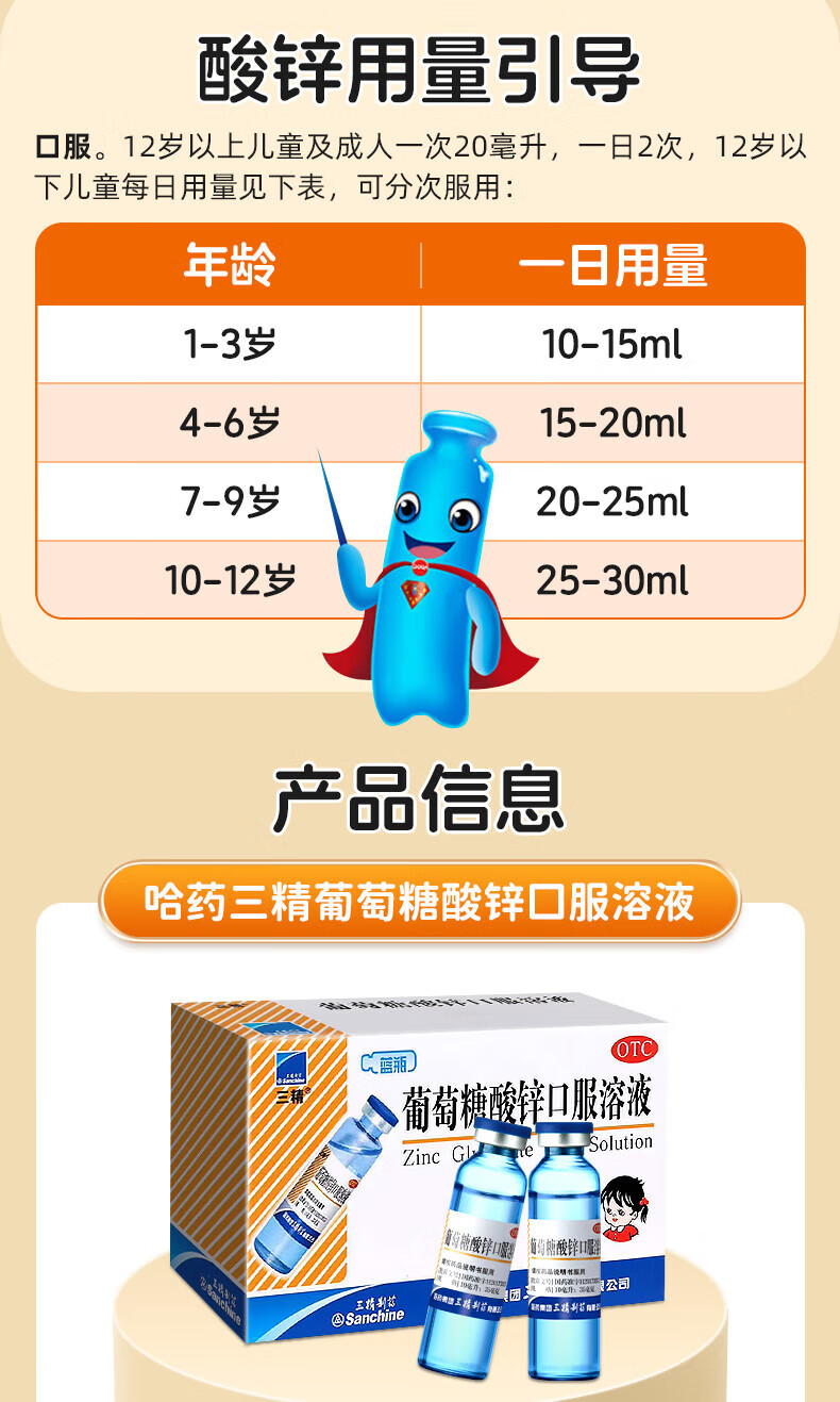 [三精]葡萄糖酸锌口服溶液 10ml 1盒装 10ml*12支儿童蓝瓶锌口服液孕妇小儿成人厌食营养不良生长发育迟缓 好效期 尝鲜装