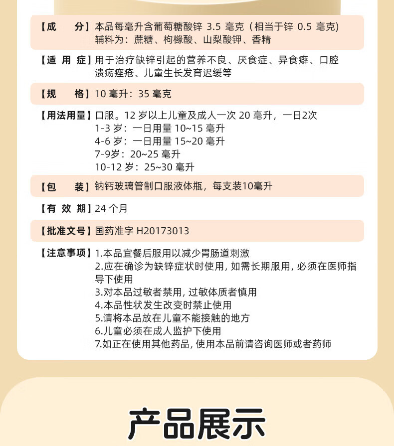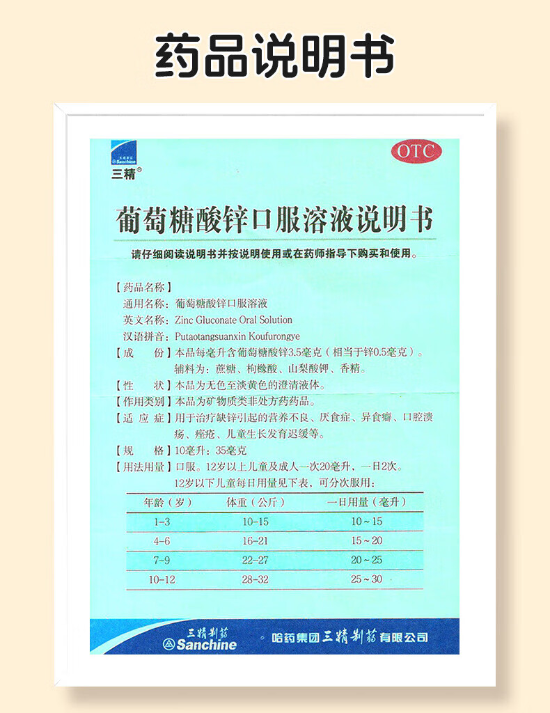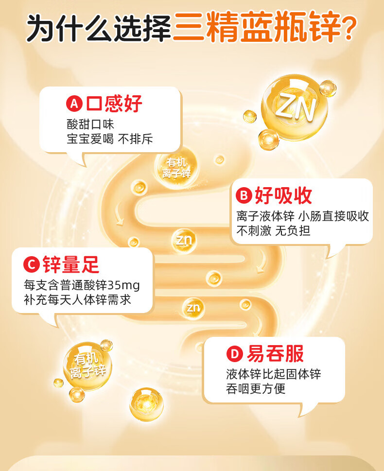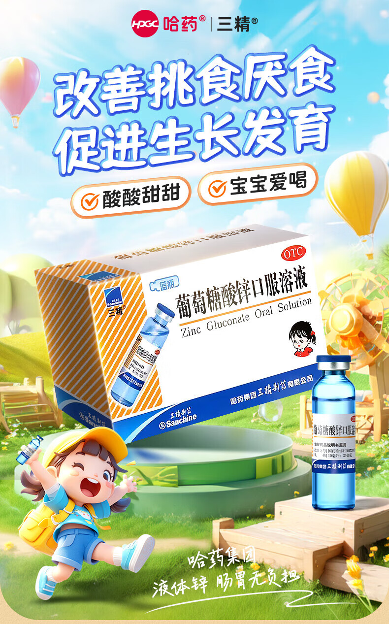 [三精]葡萄糖酸锌口服溶液 10ml 1盒装 10ml*12支儿童蓝瓶锌口服液孕妇小儿成人厌食营养不良生长发育迟缓 好效期 尝鲜装