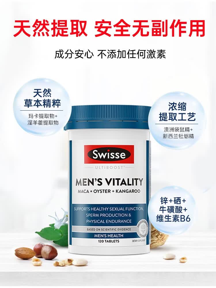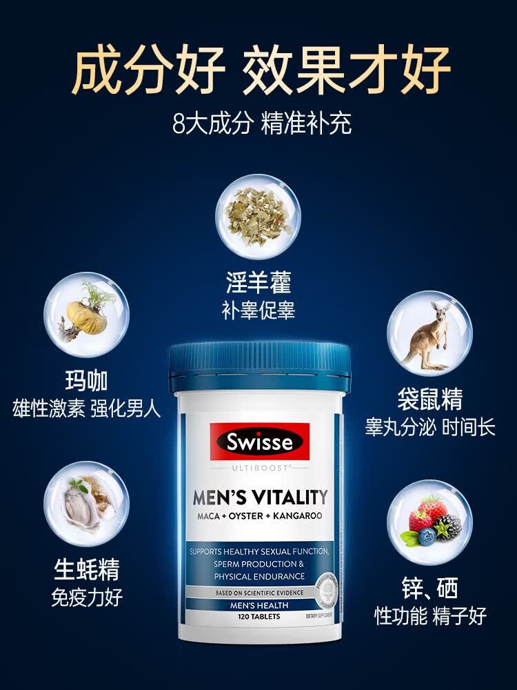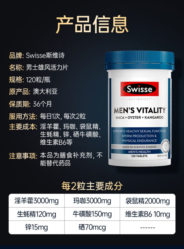 Swisse男士雄风片牡蛎精补肾壮阳延时持久男人房事特硬药金枪持久不倒 【加硬延时】雄风片120粒*1瓶