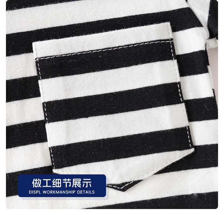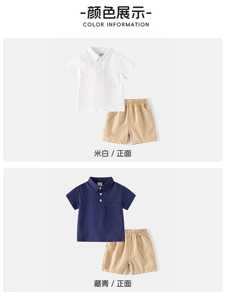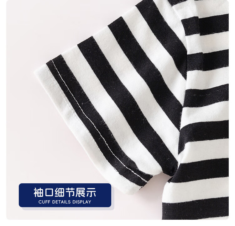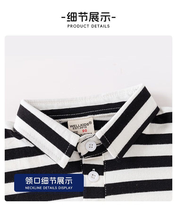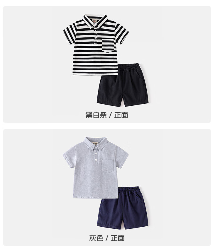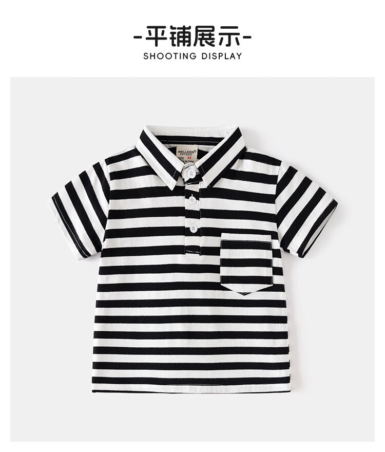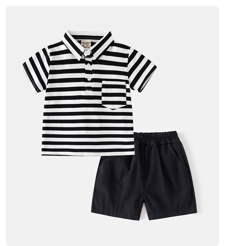 WELLKIDS儿童夏季套装新款男童短袖中裤两件套装宝宝POLO套装童装 黑白条POLO套装 130